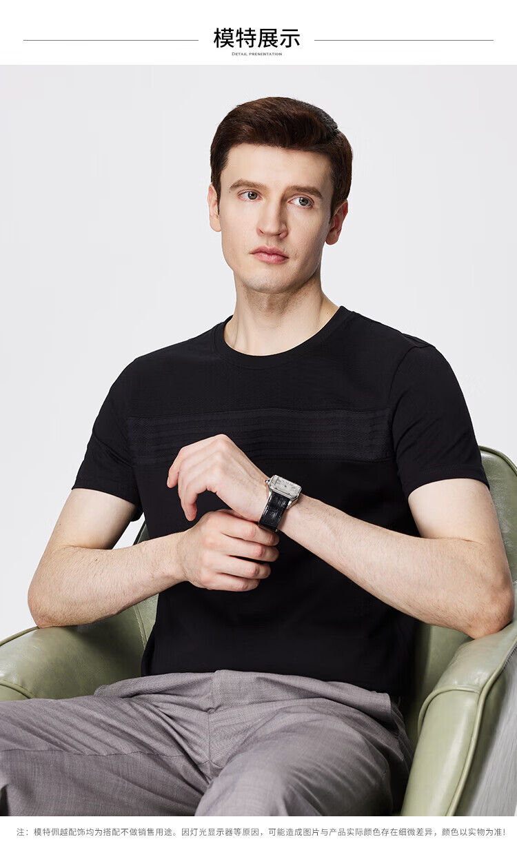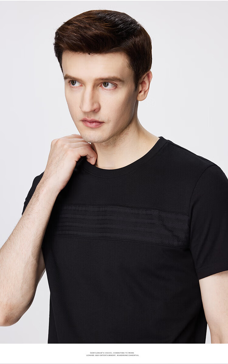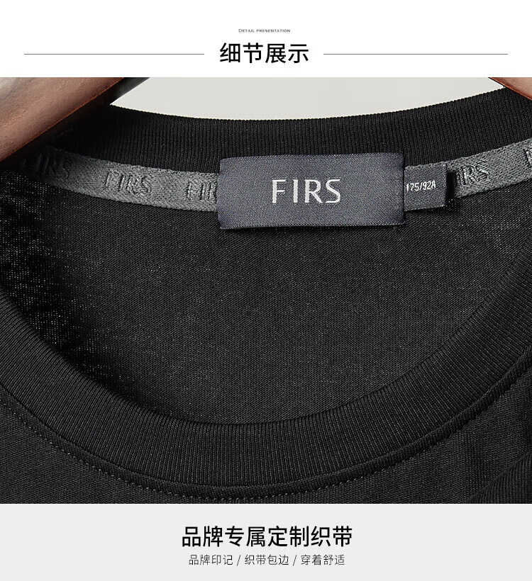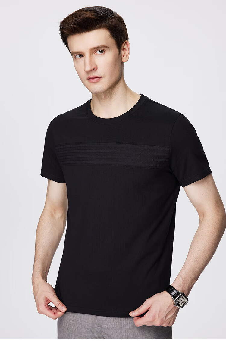 杉杉(FIRS)【亲肤纯棉】短袖T恤男装夏季圆领休闲百搭轻薄透气舒适弹力上衣 黑色 M 170/88A