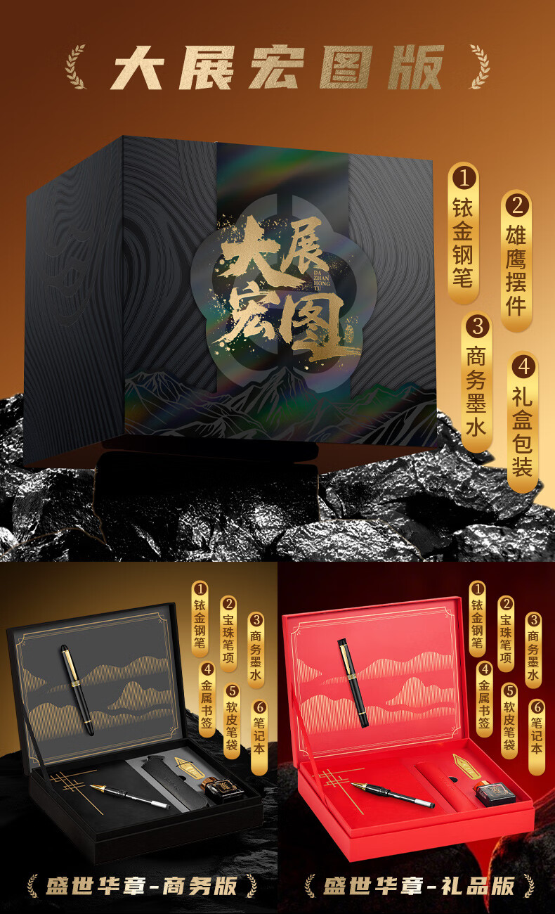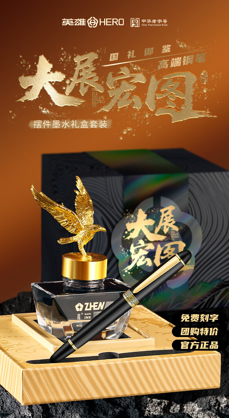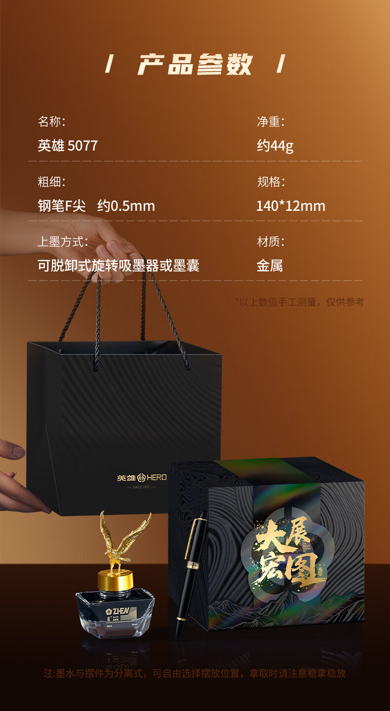 英雄(HERO)钢笔礼盒套装【盛世华章】系列高端商务办公礼品男女书写节日礼品生日礼物5077 华章-三合一【钢笔+宝珠+美工+墨水】