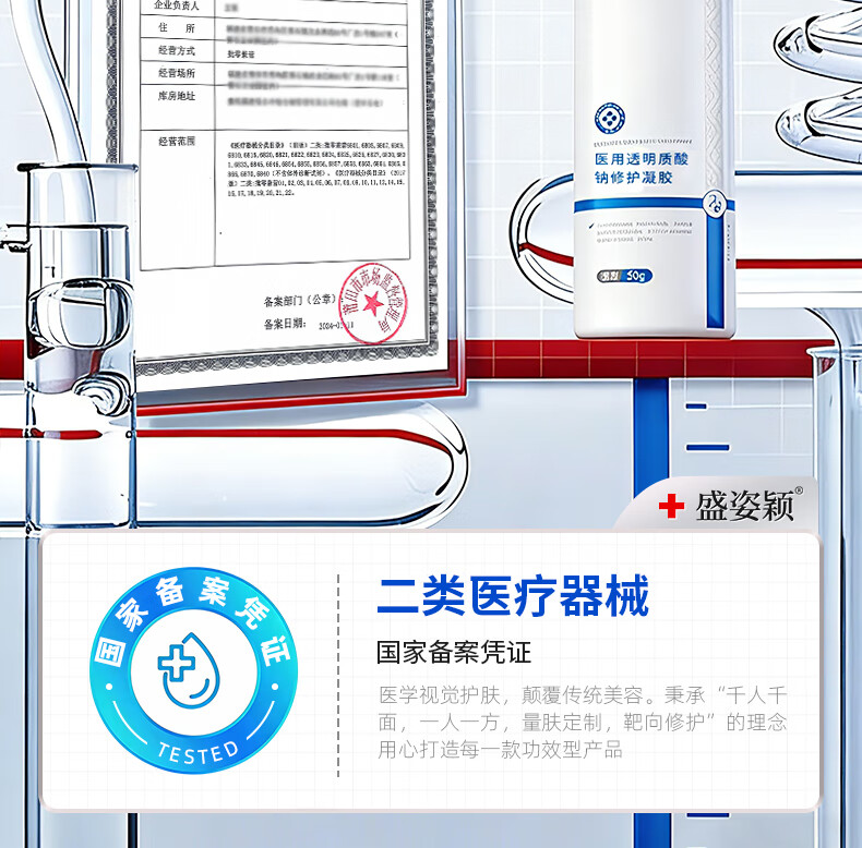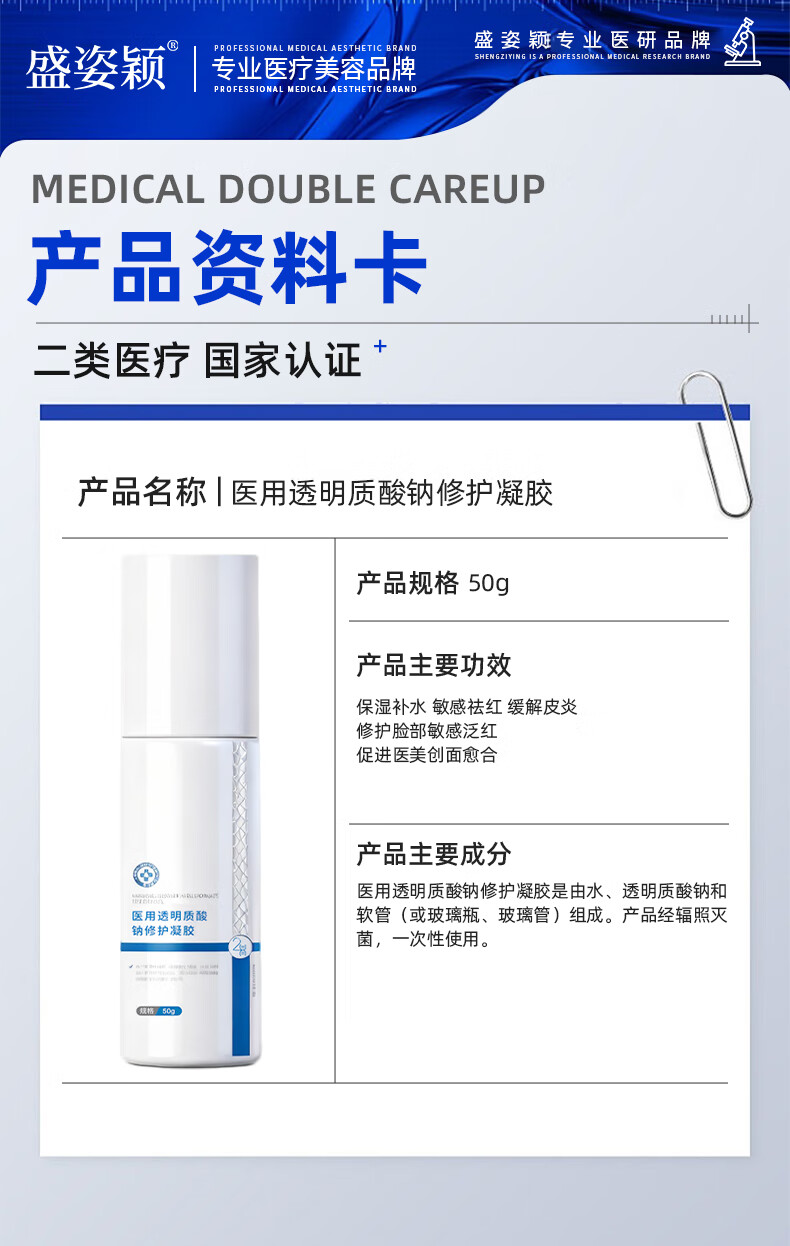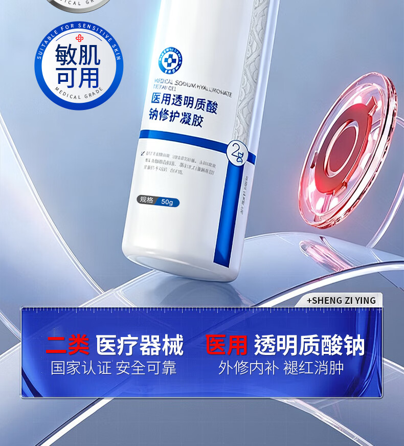 盛姿颖敏感肌创面保护愈合修护乳液状医用级透明质酸钠修护凝胶敷料 透明质酸钠修护凝胶50g/瓶