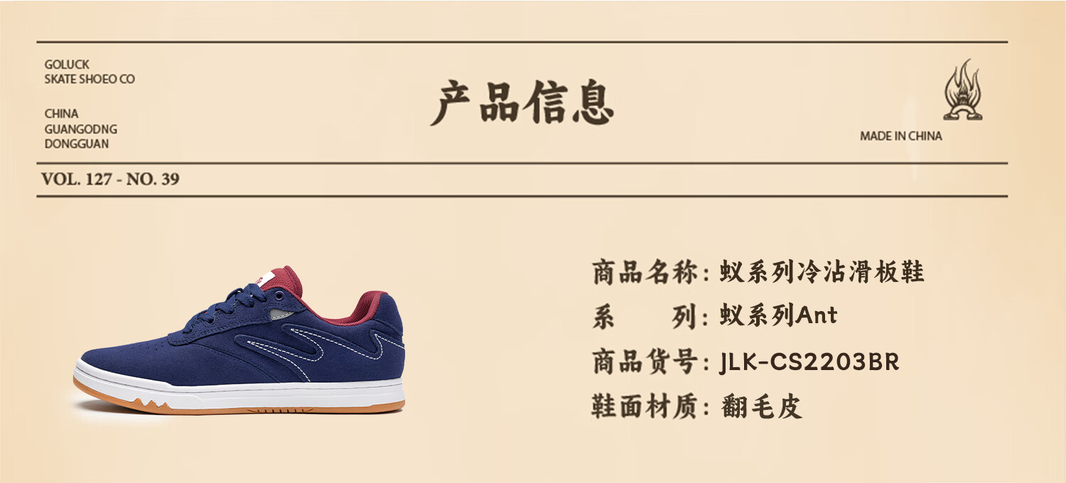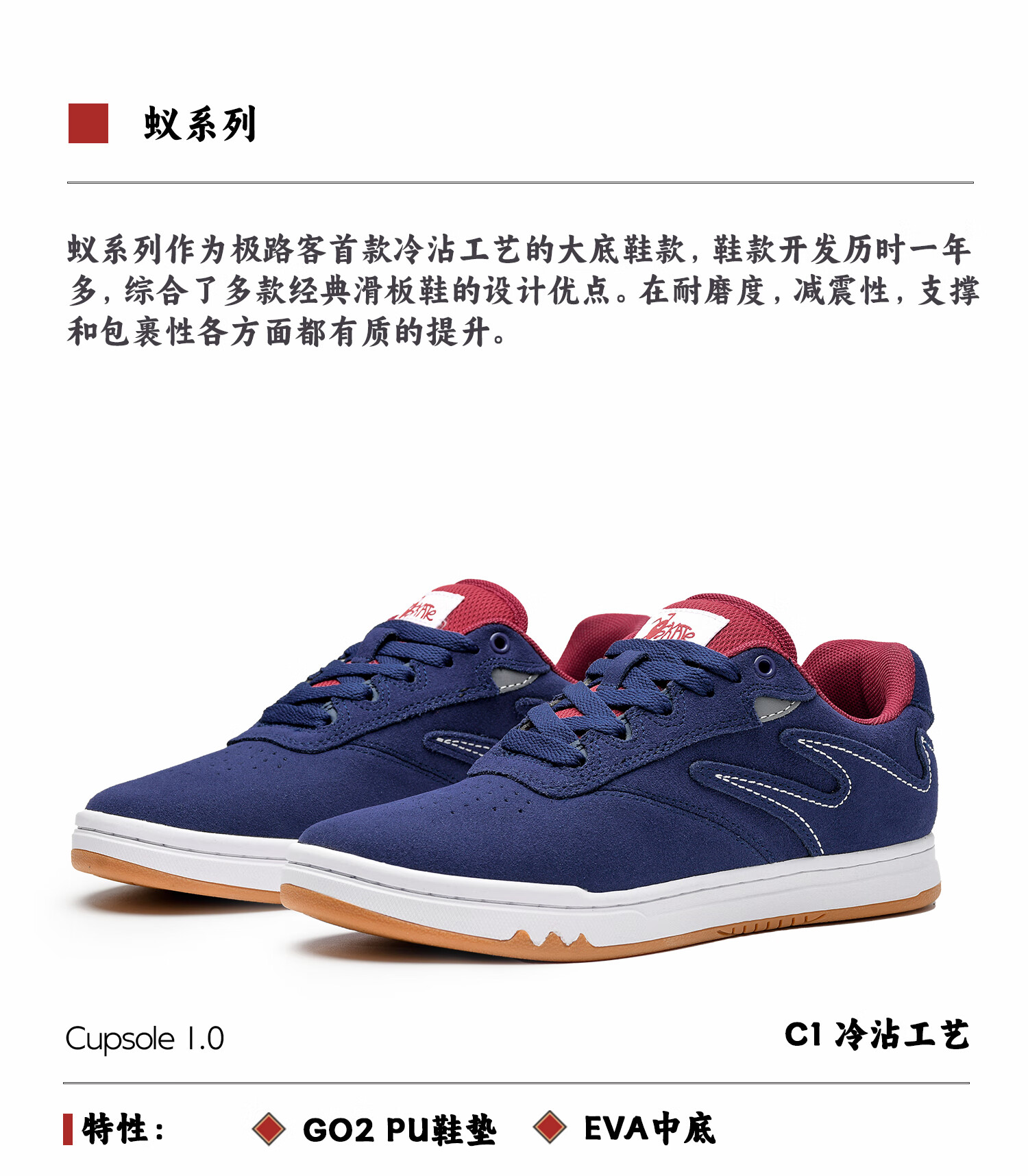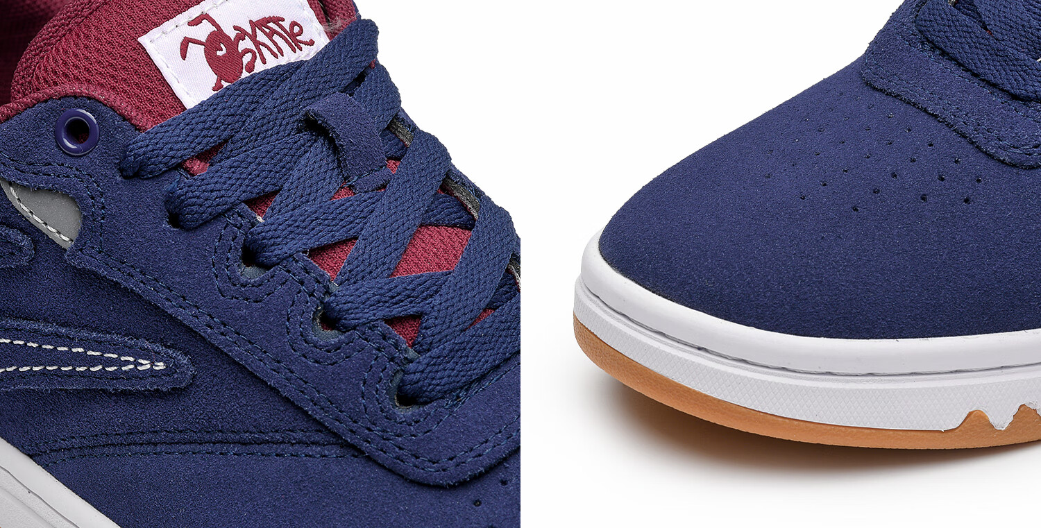 极路客蚁系列蓝红色冷沾大底面包鞋牛反毛皮男女低帮耐磨减震专业滑板鞋 蓝红色 42