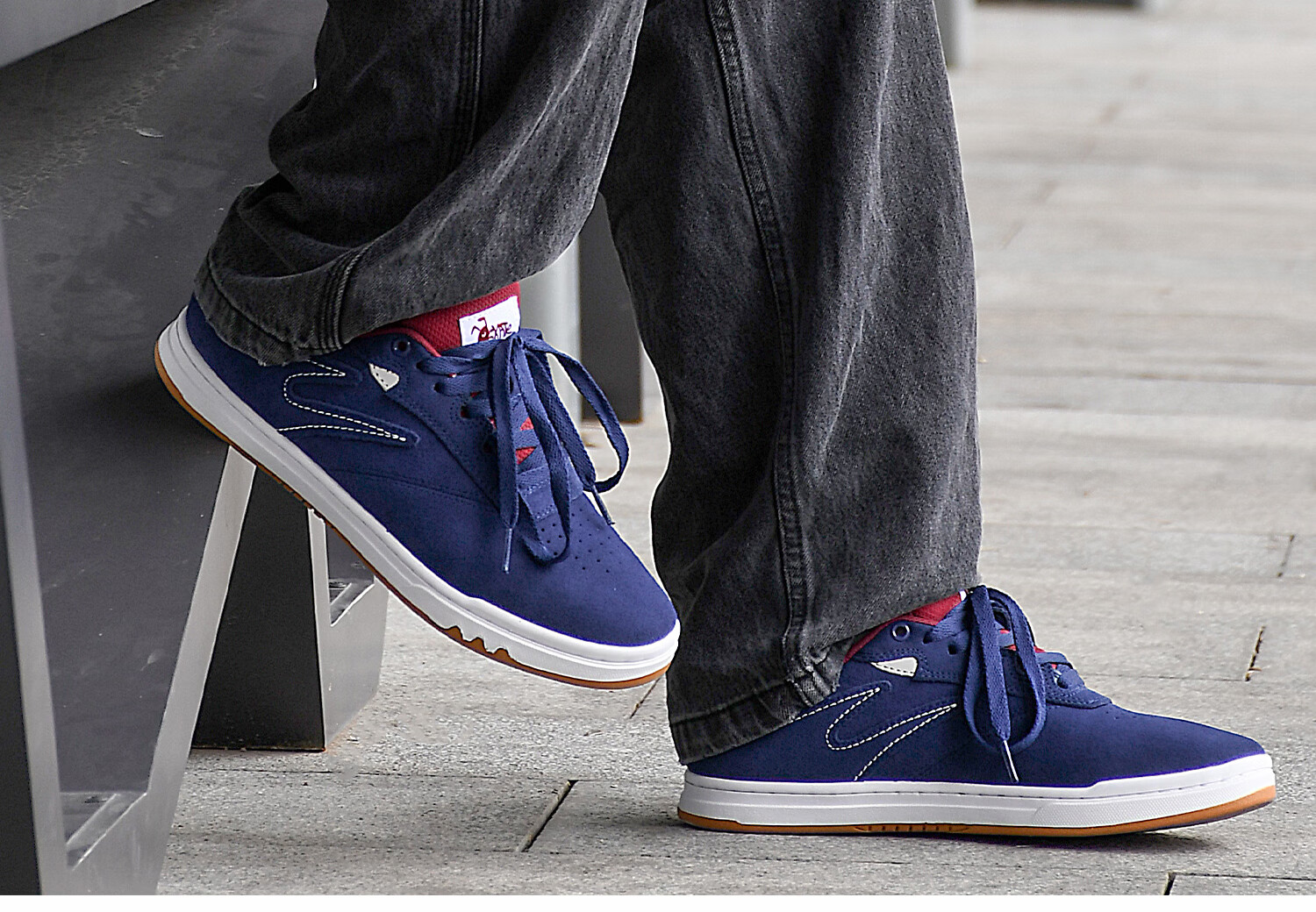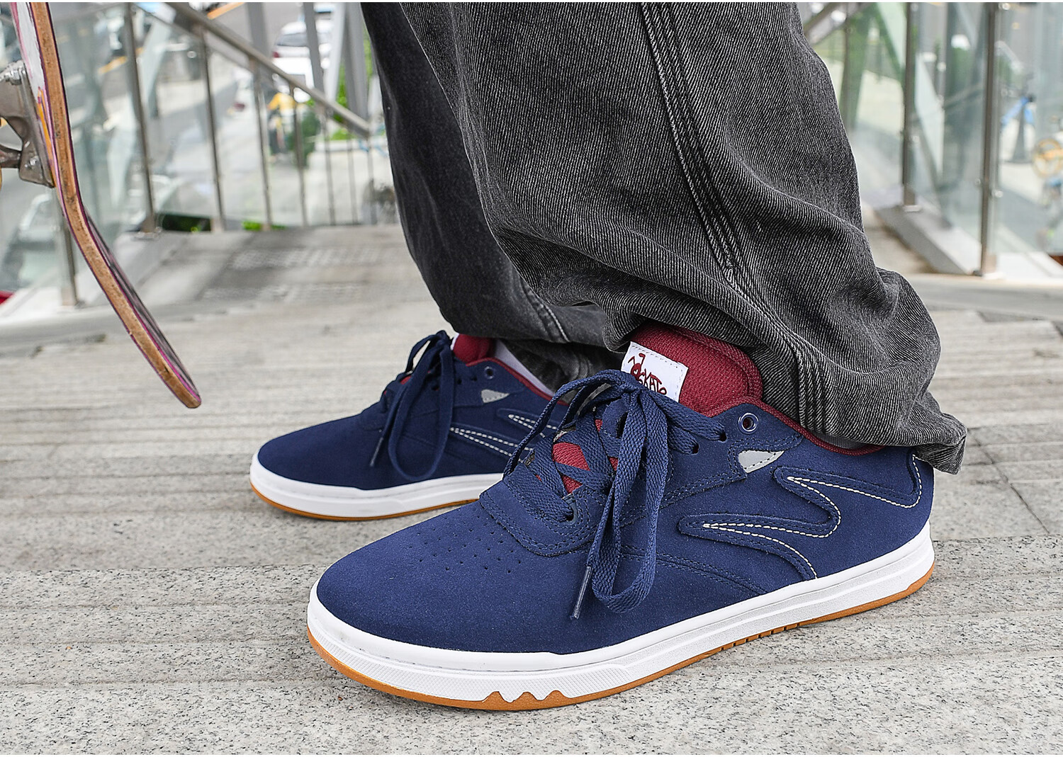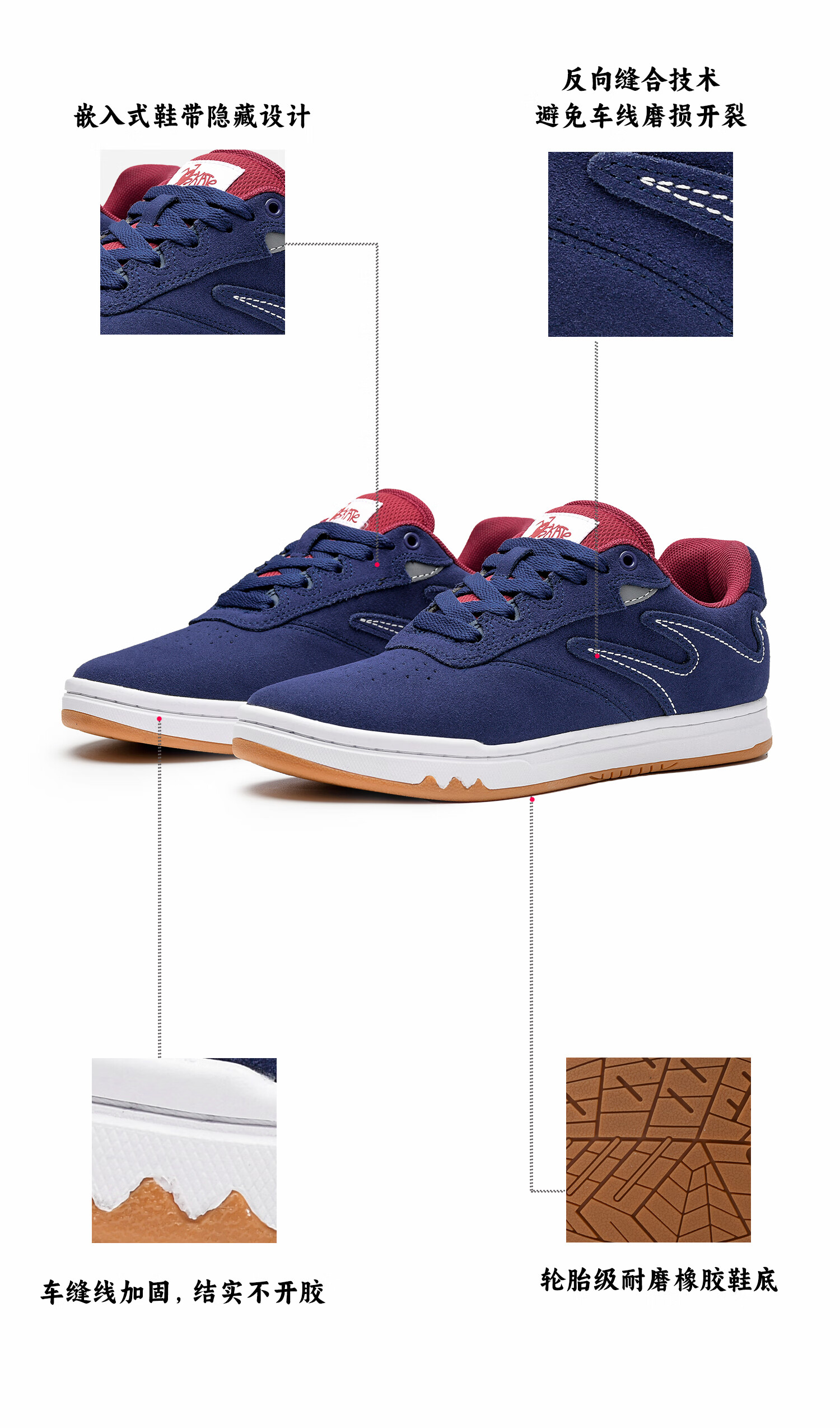 极路客蚁系列蓝红色冷沾大底面包鞋牛反毛皮男女低帮耐磨减震专业滑板鞋 蓝红色 42
