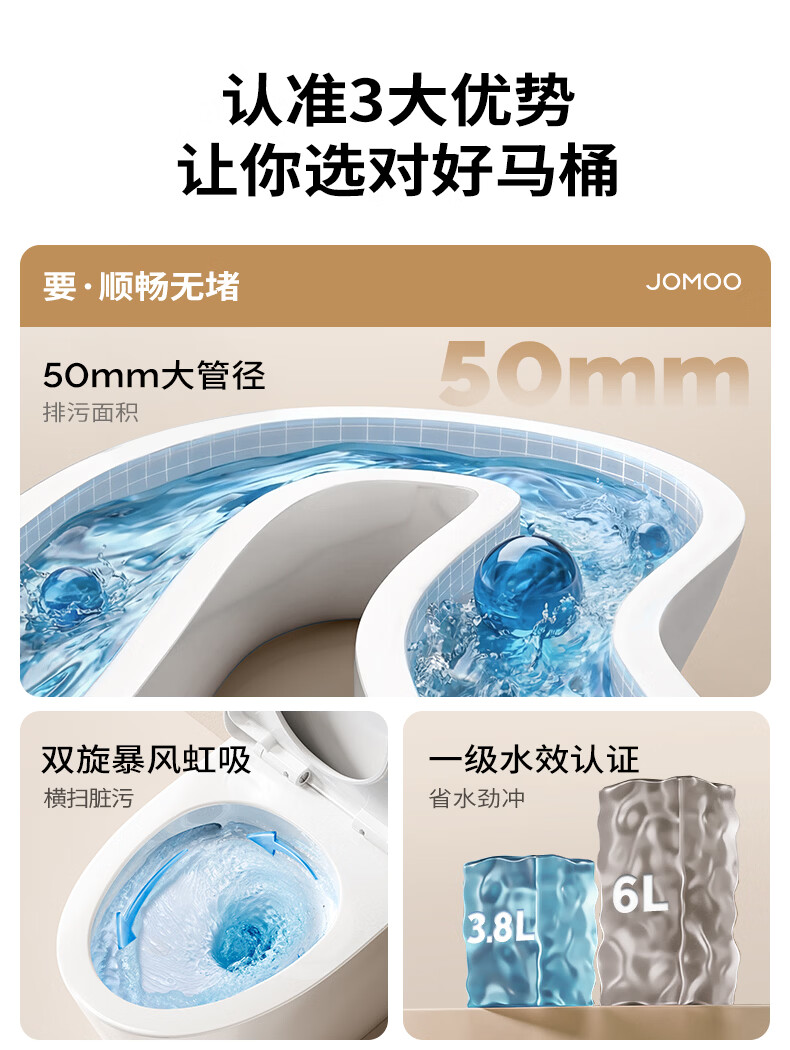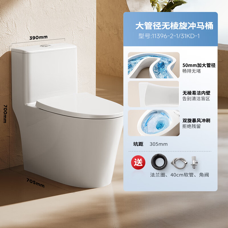 九牧(JOMOO)11396-2-1/31KD-1 大管径暴风虹吸式家用马桶 节水坐便器 305坑距