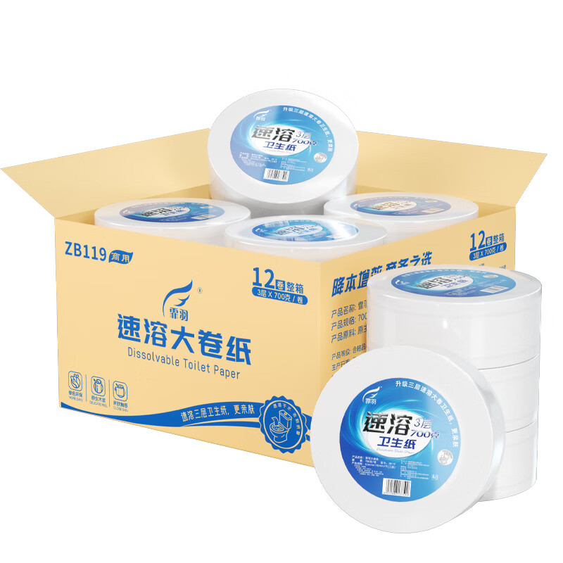 霏羽商用大卷纸3层700克*12卷加厚大盘纸卫生纸厕纸卷纸大卷整箱ZB119