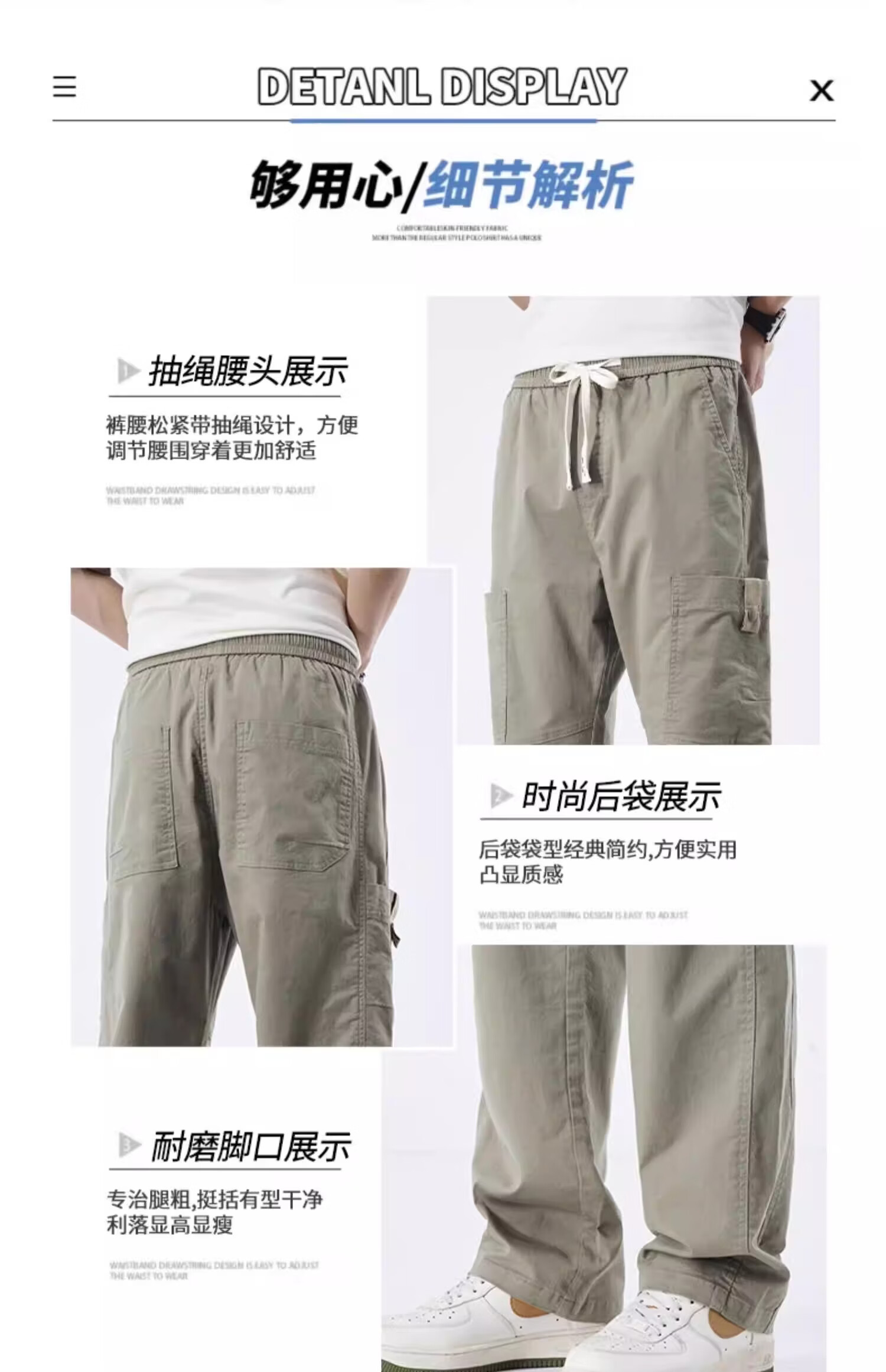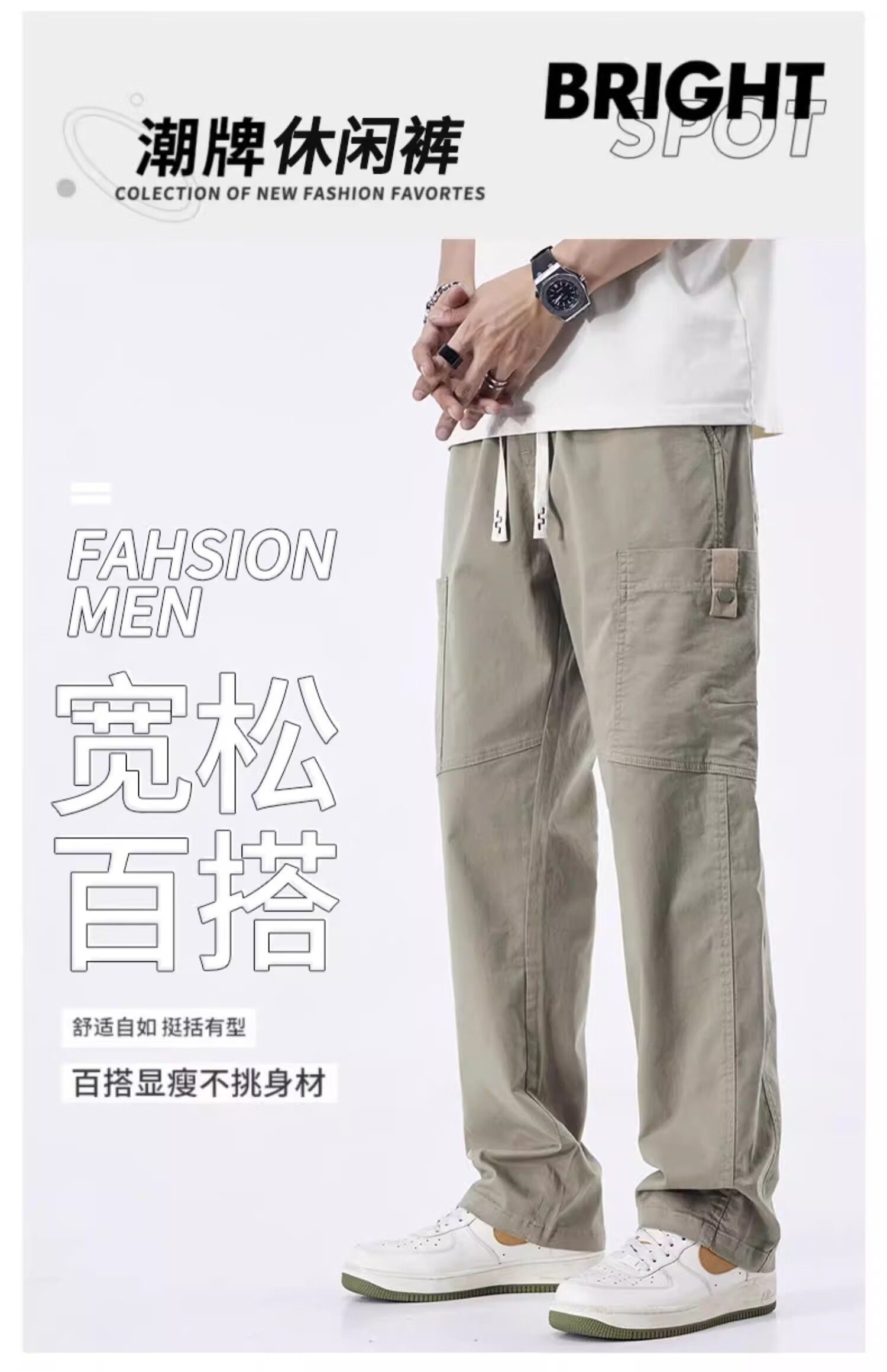 真维斯2026新款春夏季男士休闲裤美式潮牌宽松直筒裤子百搭纯棉工装长裤 浅绿 M