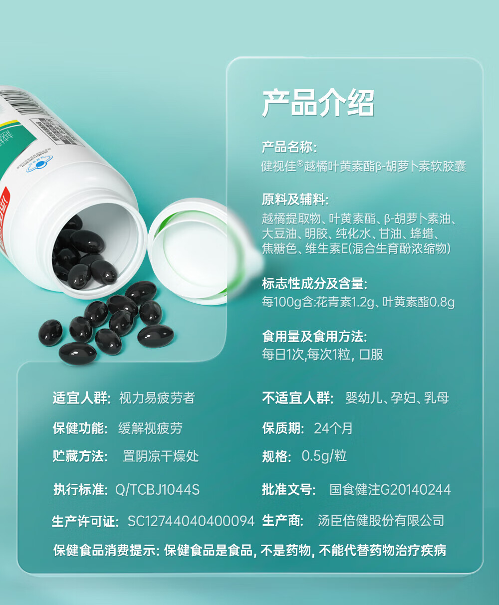 健视佳越橘叶黄素酯胡萝卜素软胶囊90粒儿童青少年成人缓解视疲劳