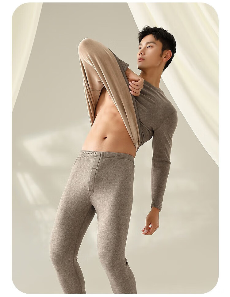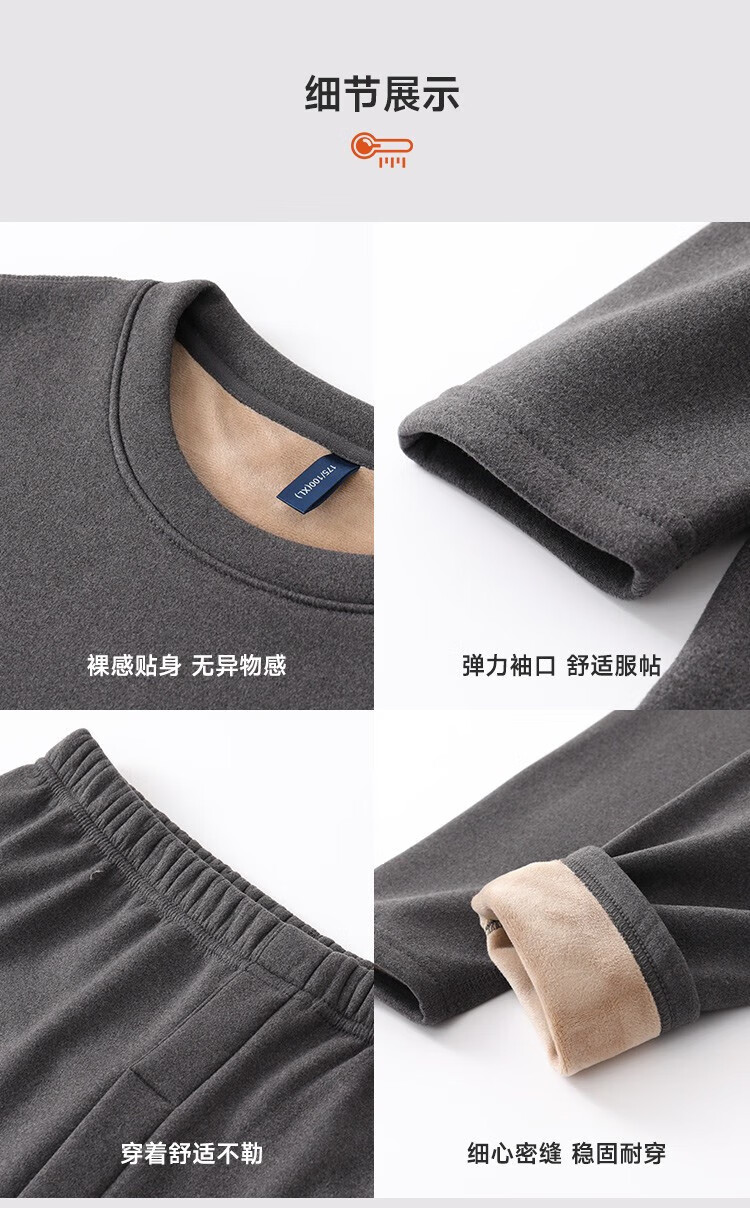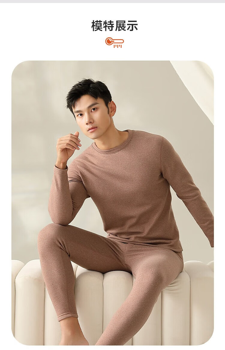 香蜜闺秀GOSO【保暖内衣】纯色加厚秋冬季长袖秋衣秋裤保暖内衣套装 W3405004奶咖(加绒)(女款) L