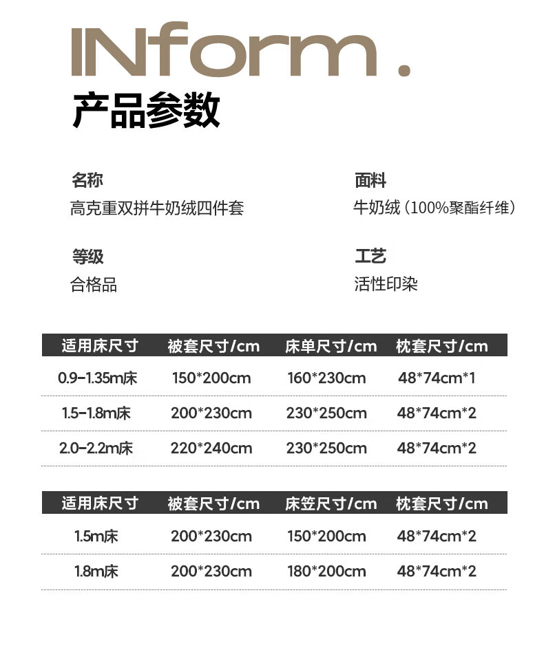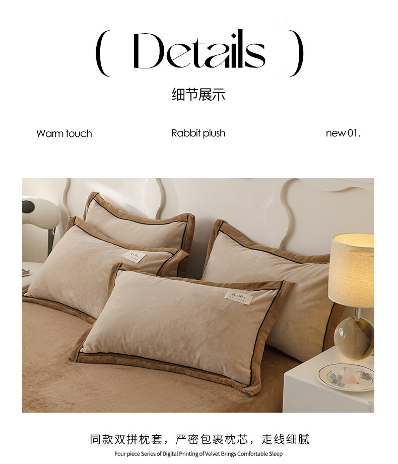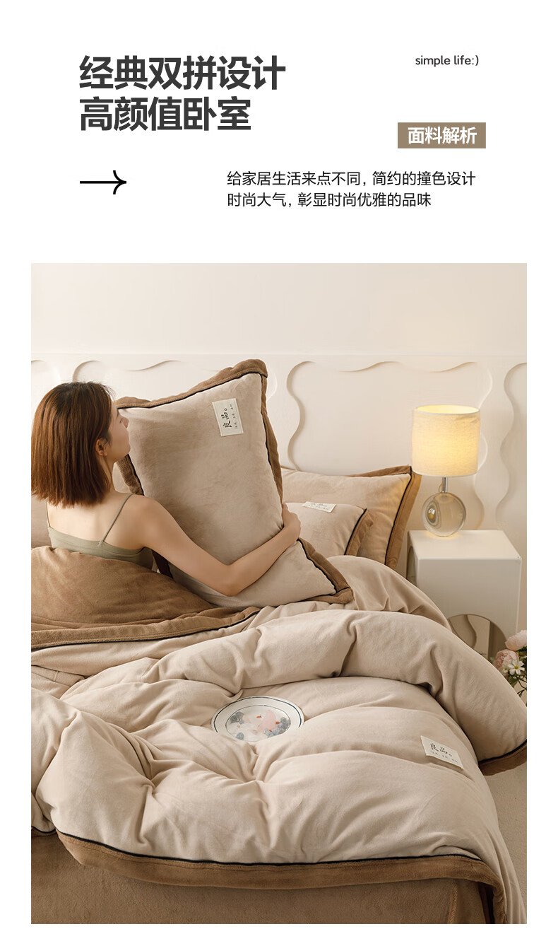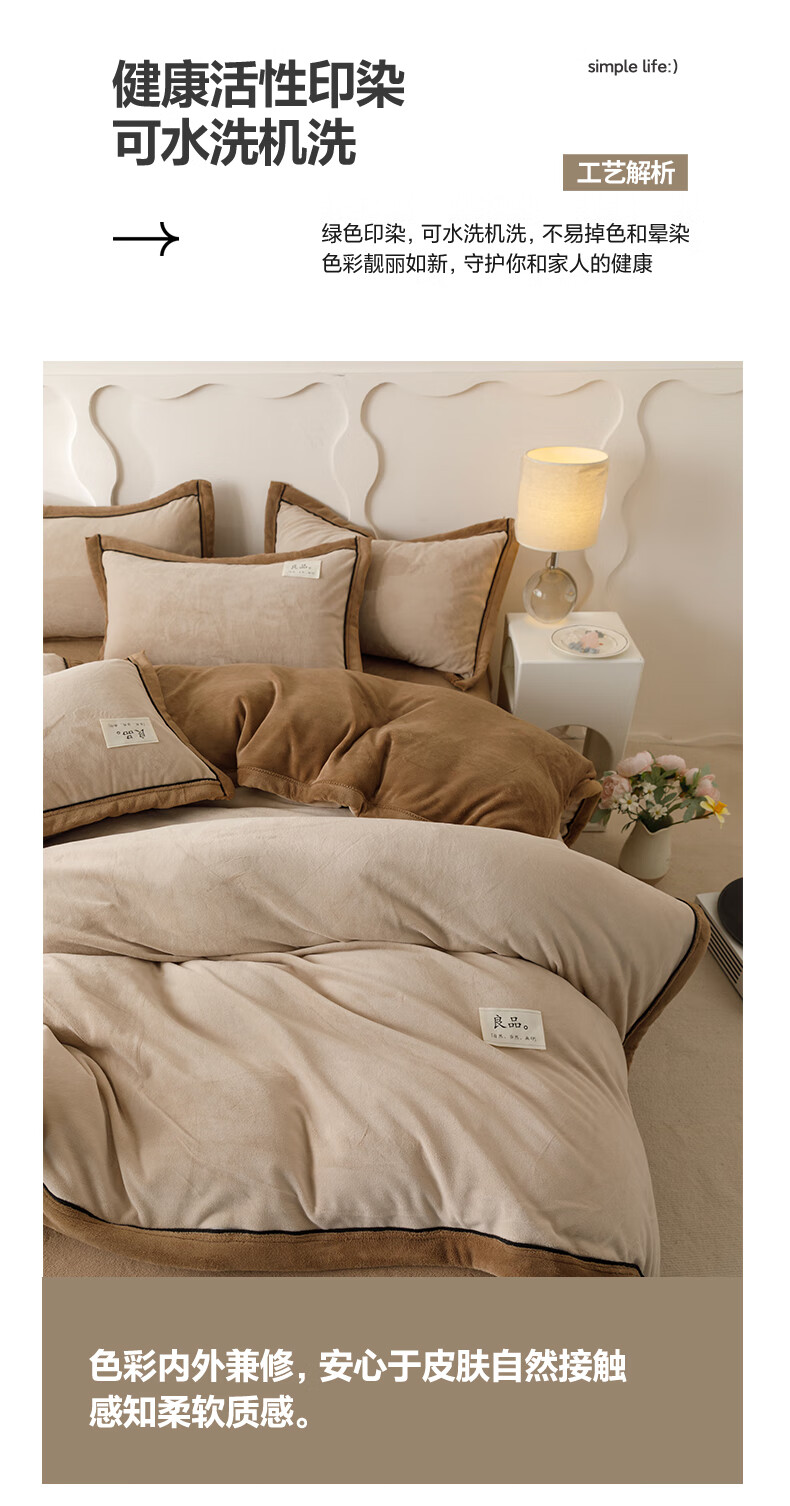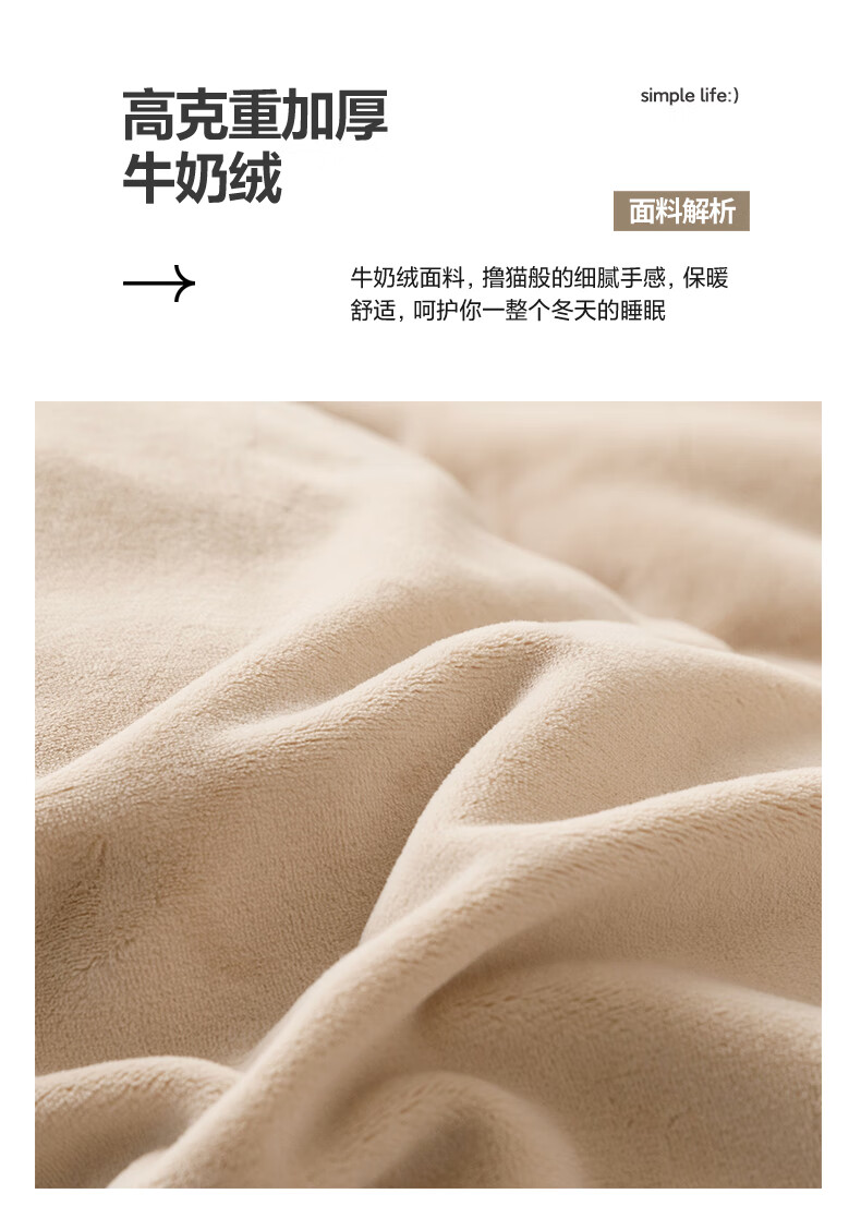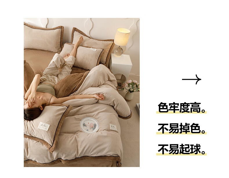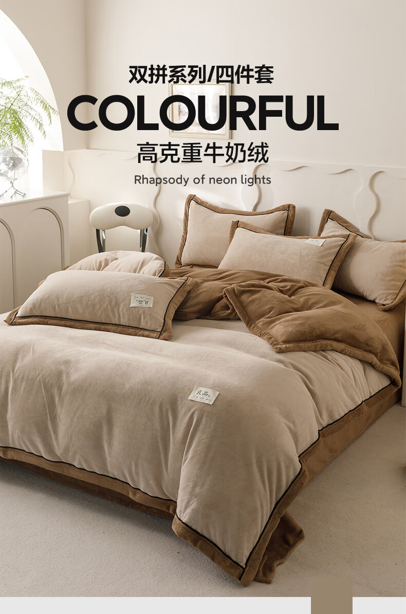 猫人(MiiOW)冬季牛奶绒床上四件套 加厚双面绒被套罩床单床笠单双人床品 米驼+奶茶咖 1.5/1.8 床单款 四件套(被套200*230)