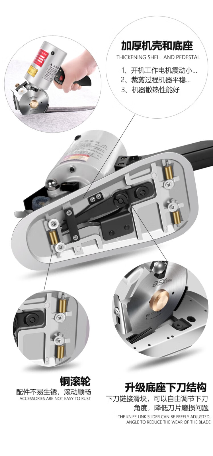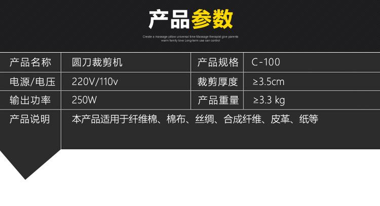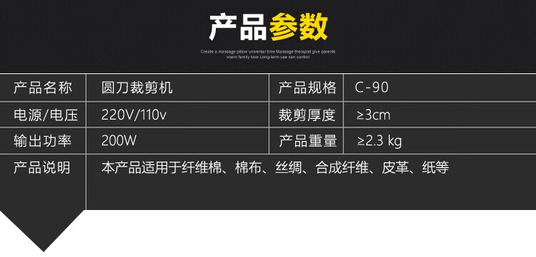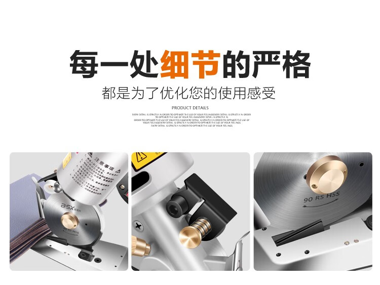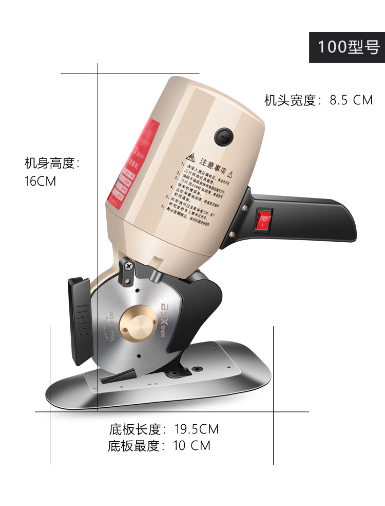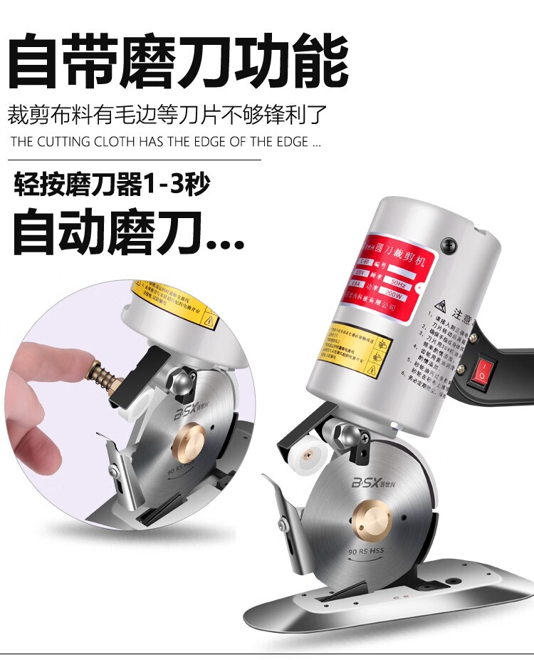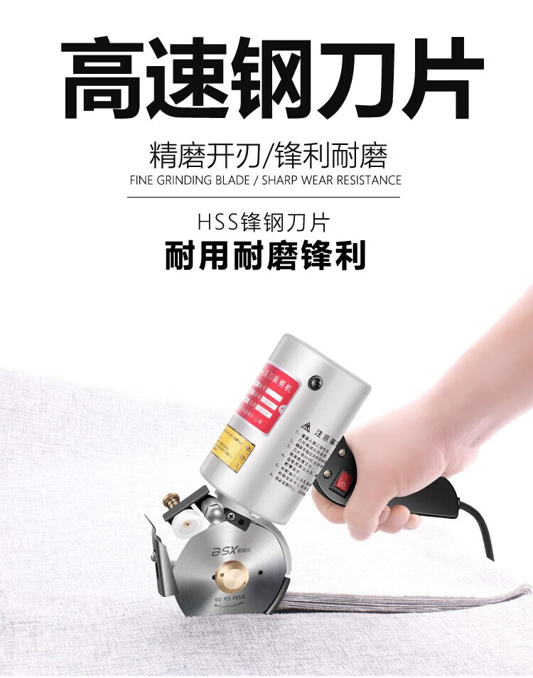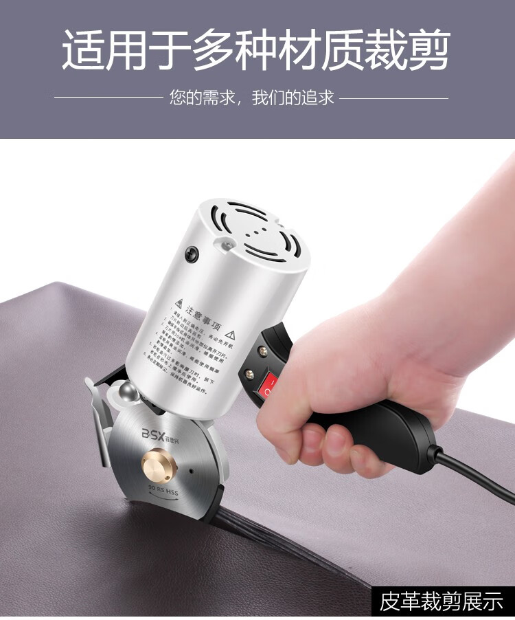 澳颜莱百世兴电动圆刀裁剪机 服装电剪刀 90/100型皮革布料纸张手持式裁 90配1.8米线+锋钢刀片