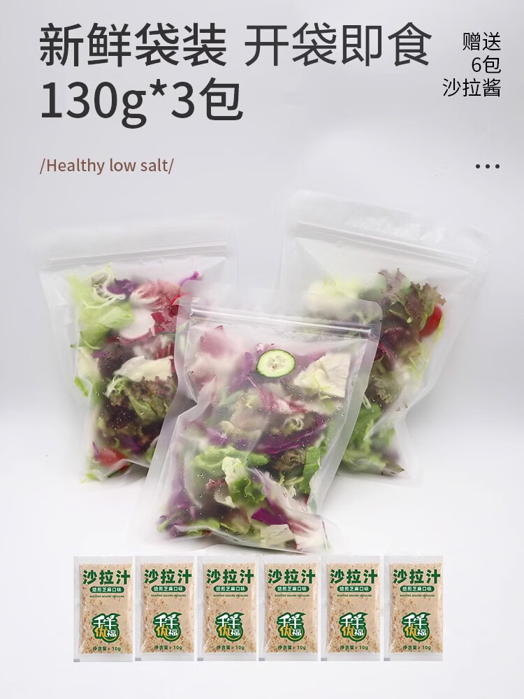 千牛优福【开袋即食】免洗 1餐1包 新鲜蔬菜沙拉混合生菜轻食健身色拉套餐 低脂即食鸡胸肉【3包】