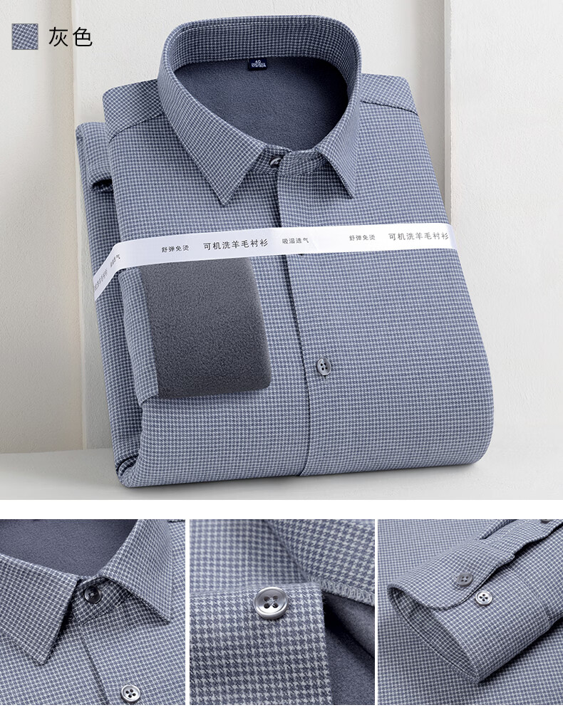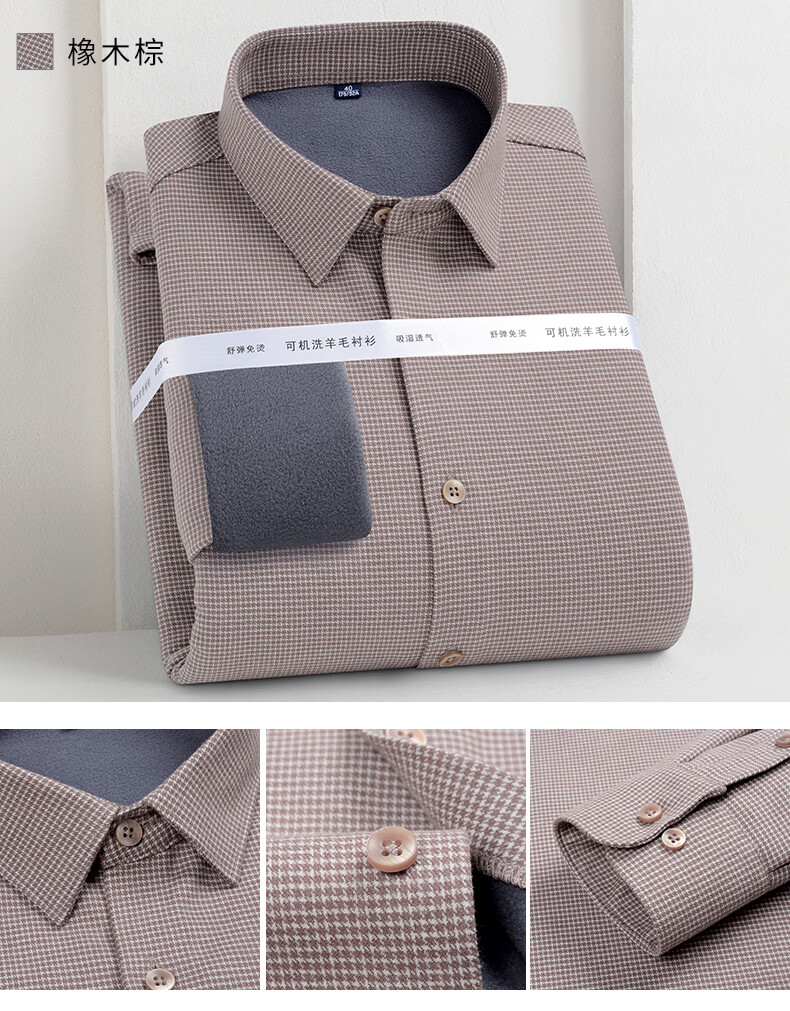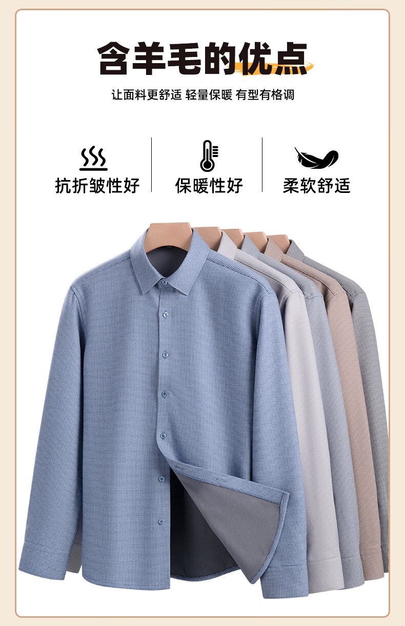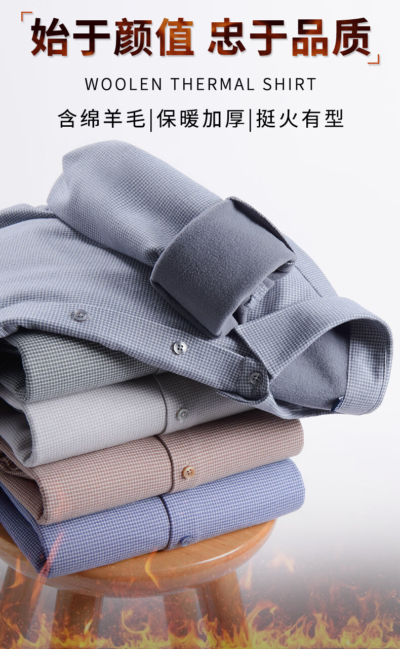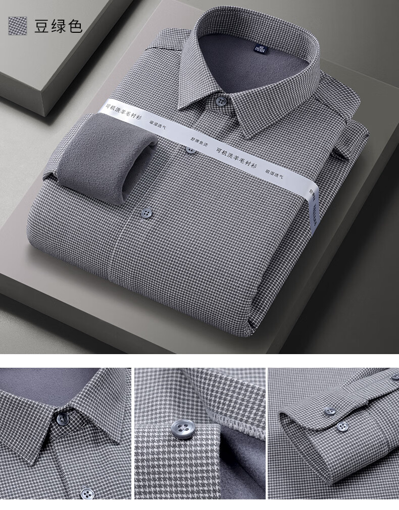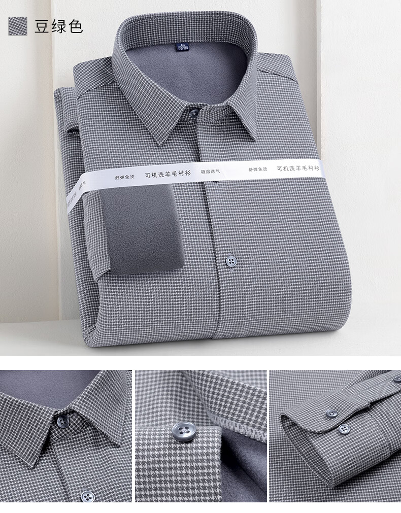 火翎鸟加绒衬衫男士含羊毛一体绒新款长袖格子冬季休闲商务加绒加厚衬衣 豆绿色 45