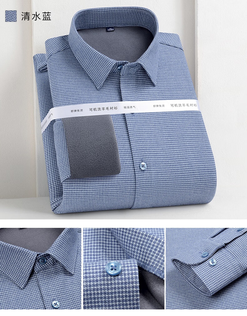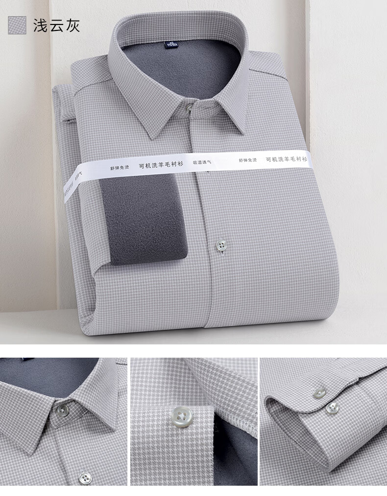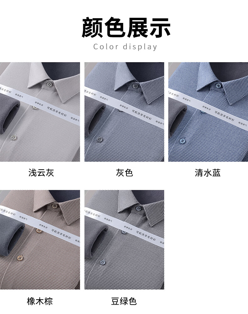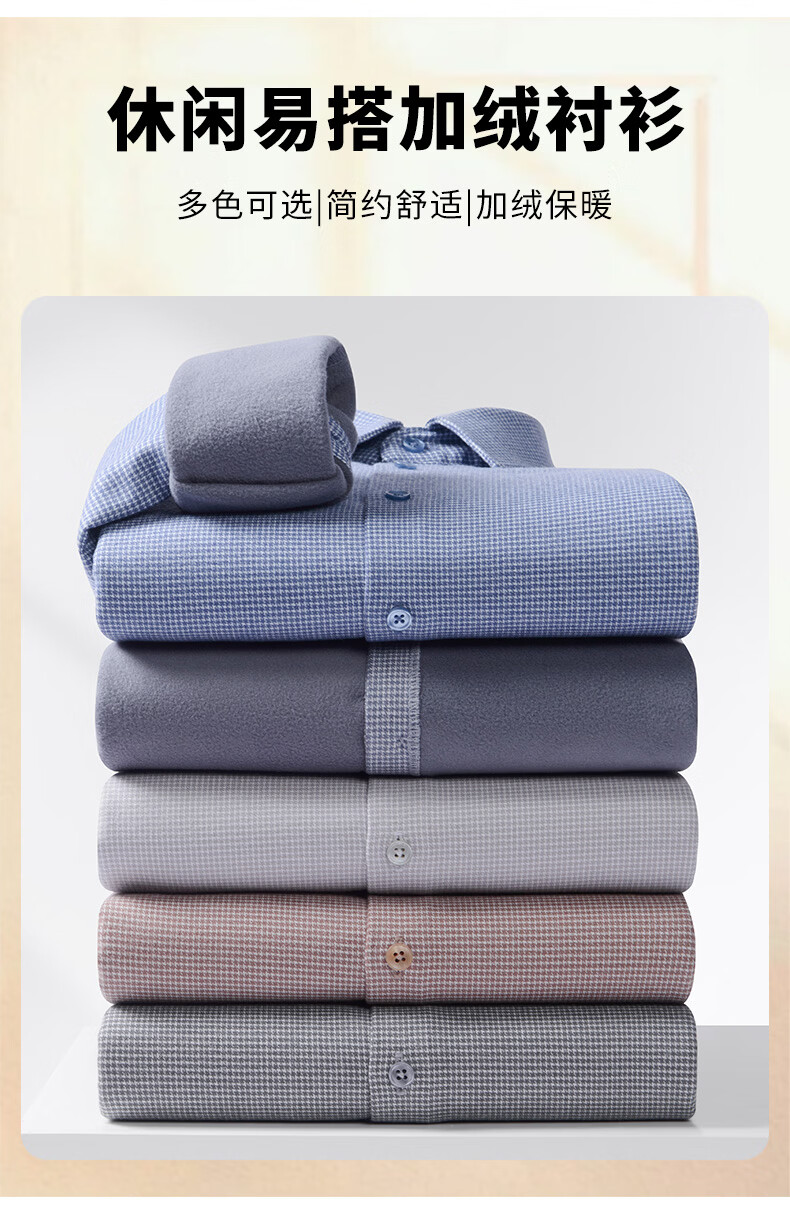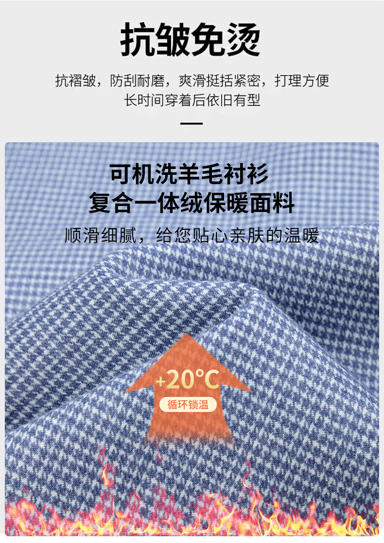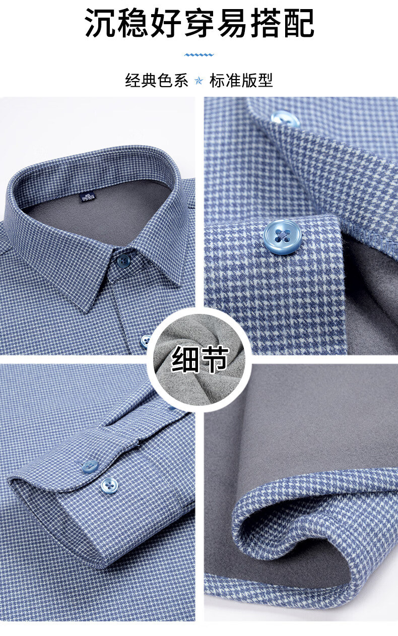 火翎鸟加绒衬衫男士含羊毛一体绒新款长袖格子冬季休闲商务加绒加厚衬衣 豆绿色 45