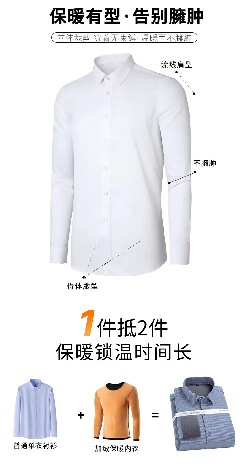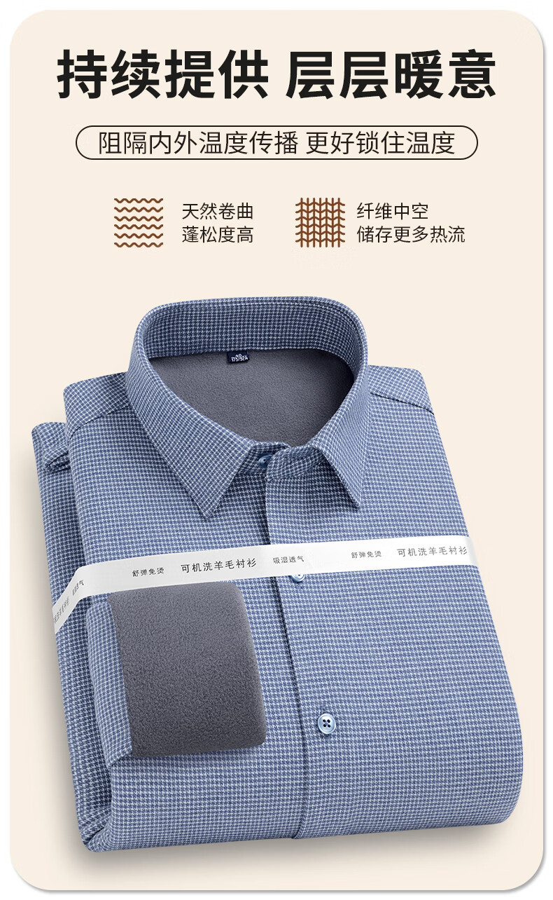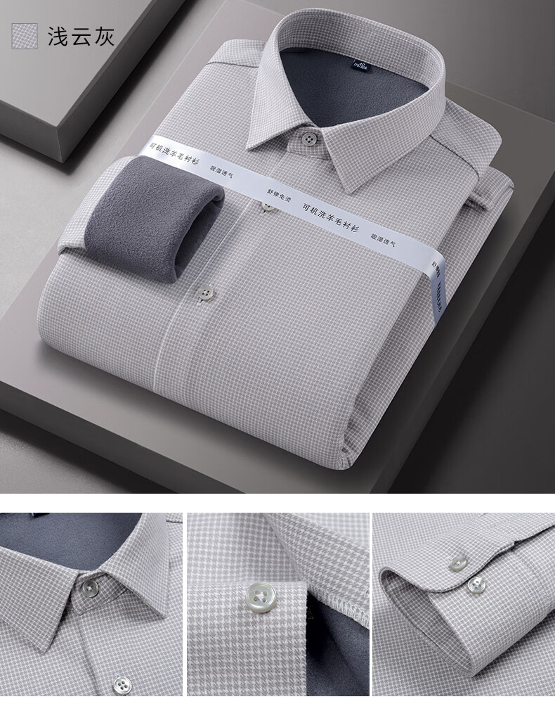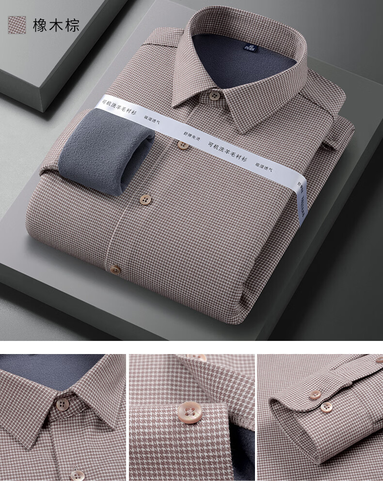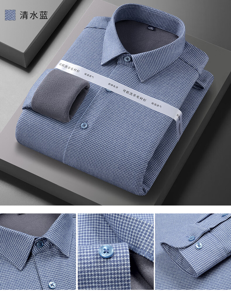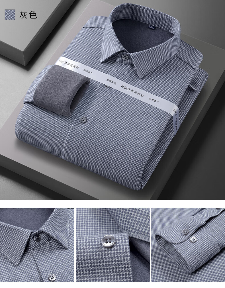 火翎鸟加绒衬衫男士含羊毛一体绒新款长袖格子冬季休闲商务加绒加厚衬衣 豆绿色 45