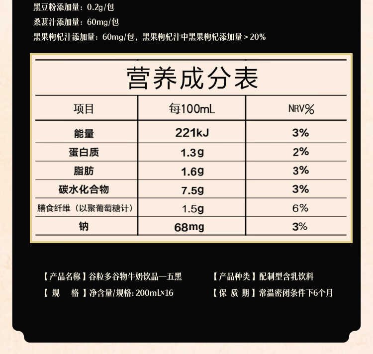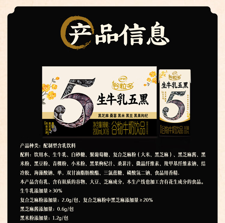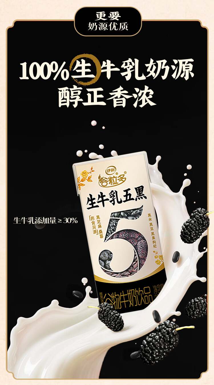 伊利谷粒多生牛乳五黑 200ml*16盒 礼盒装