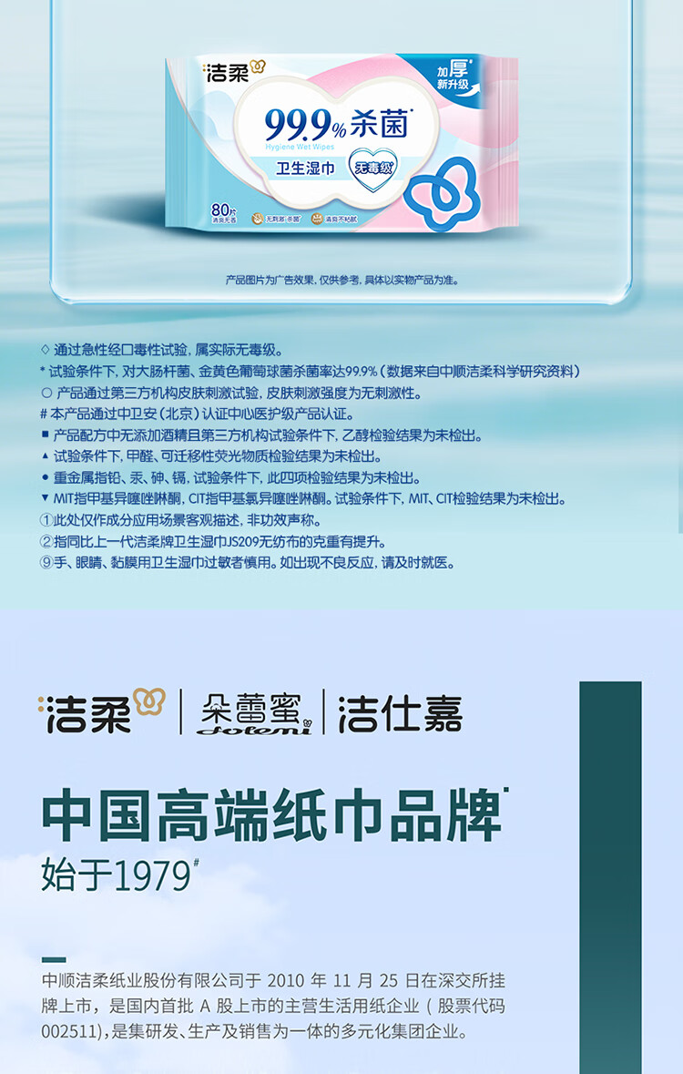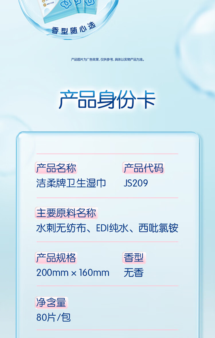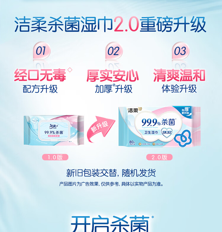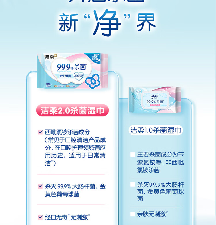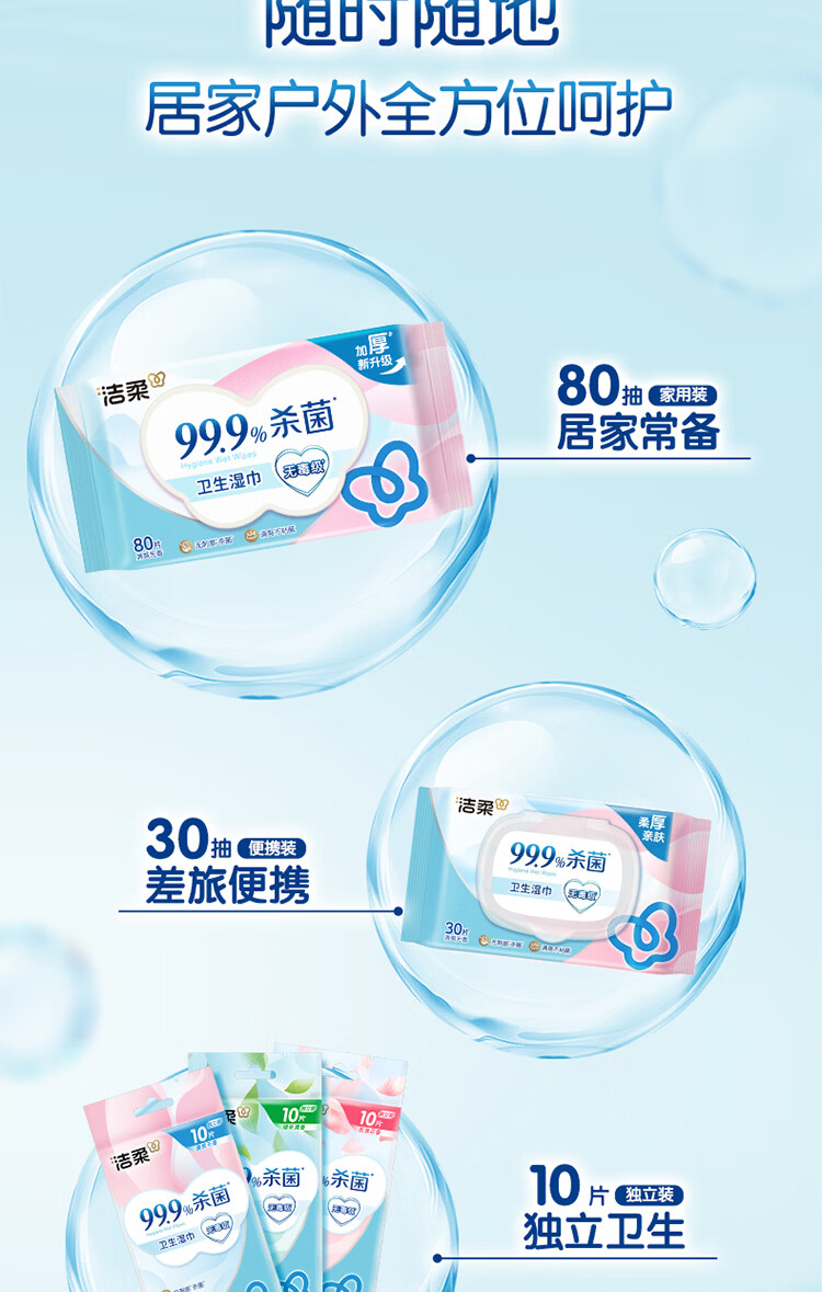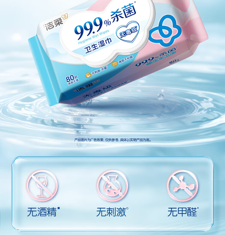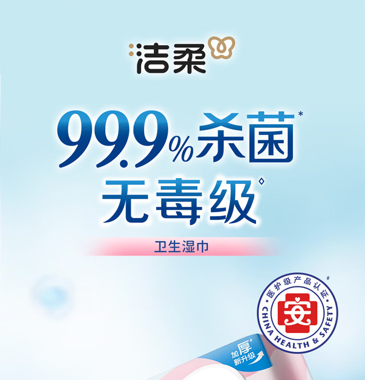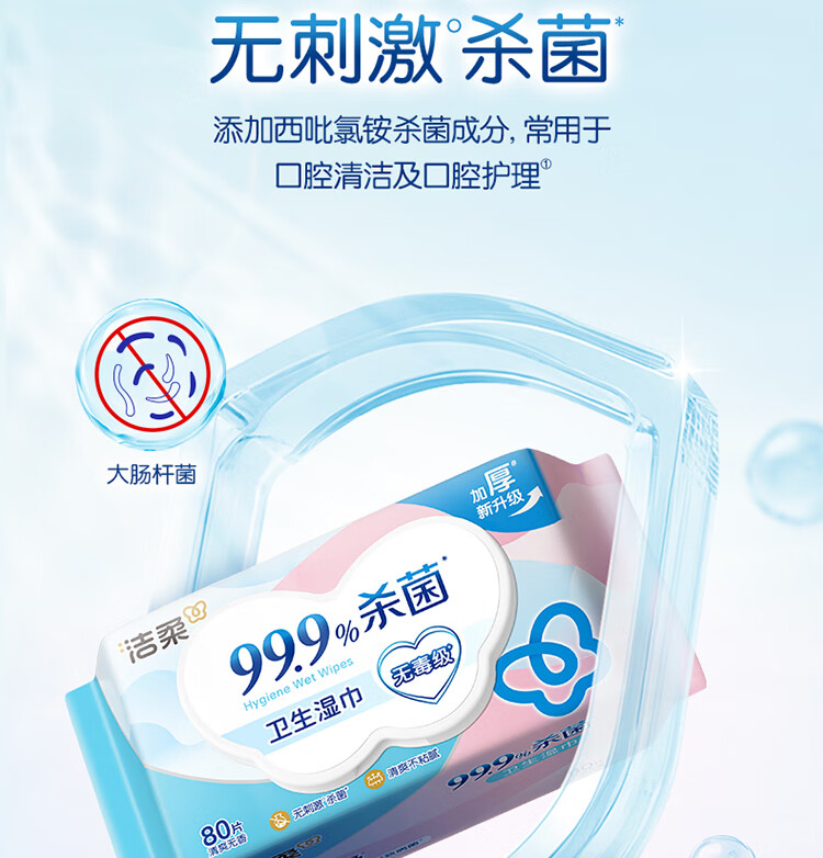 洁柔卫生湿巾80片加厚99.9%杀菌清洁湿纸巾清爽不粘腻线下超市同款