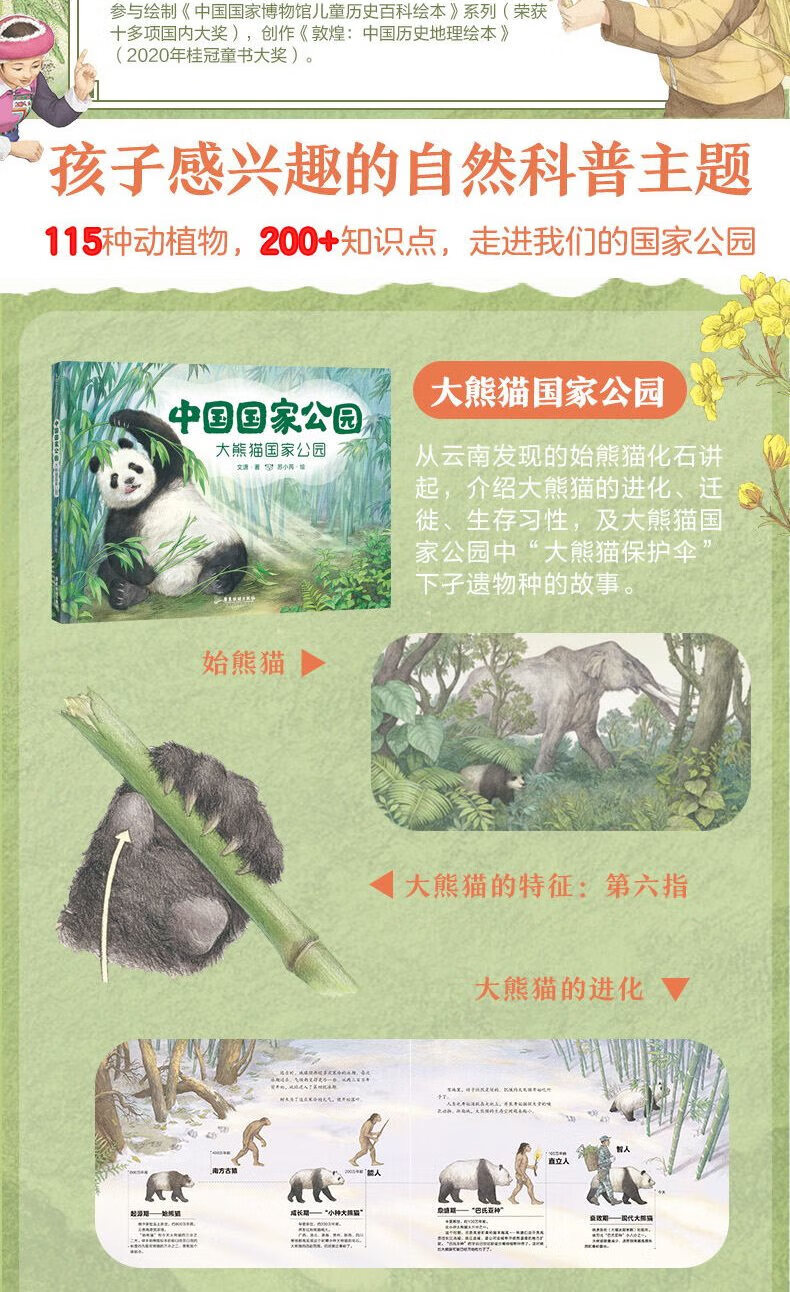 全6册 中国国家公园 小自然:儿童纸上纪录片熊猫 东北虎 国内首套国家公园国家地理主题原创绘本 融合了历史物种演变 地质变迁等科普绘本读物 敦煌历史大画卷 折页版 经典名著鉴赏解读绘本 山海经 自选