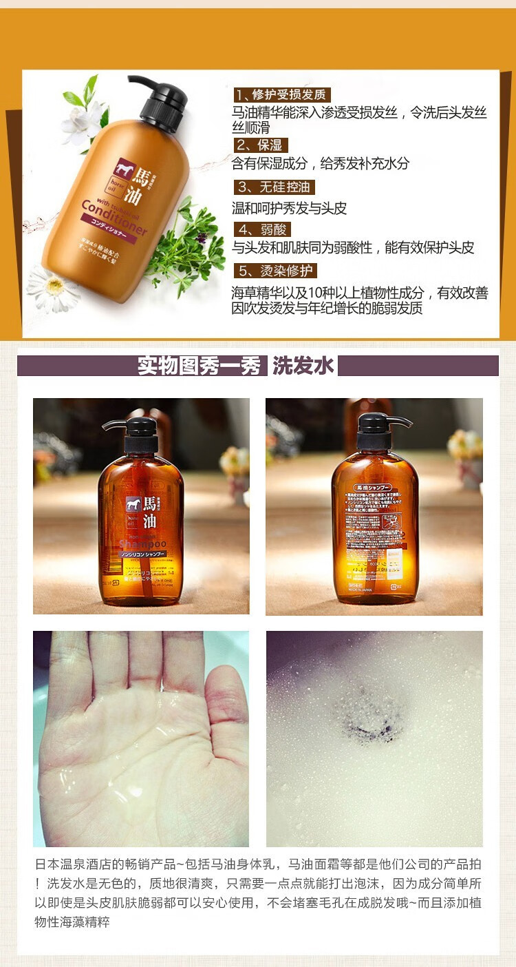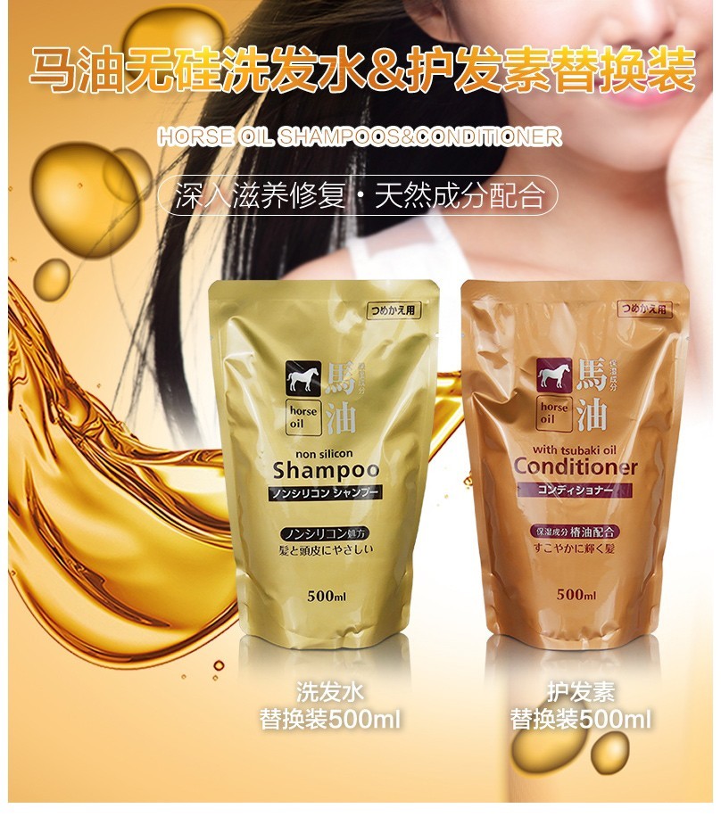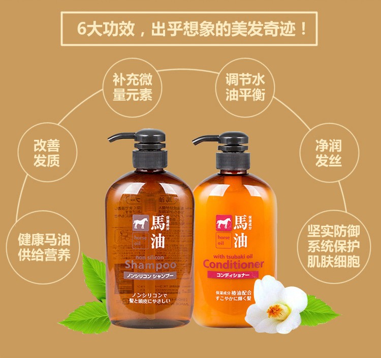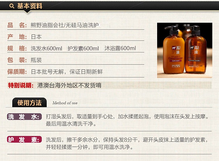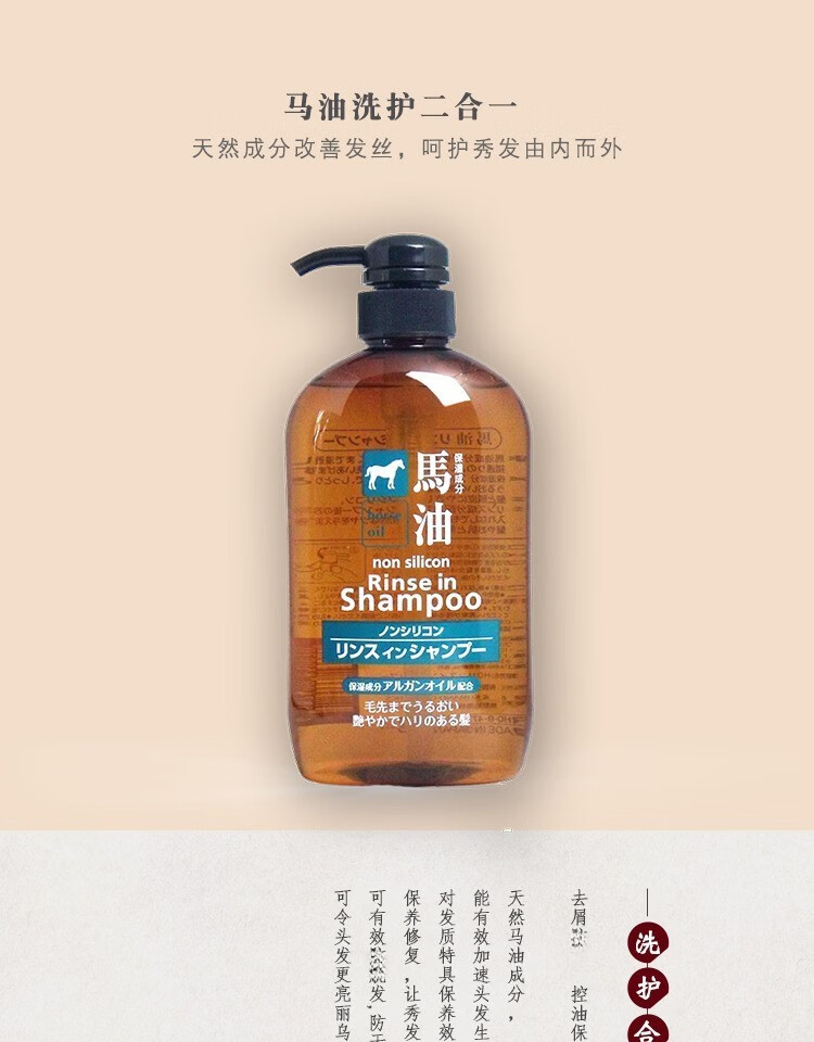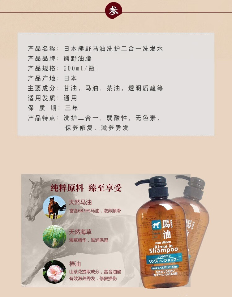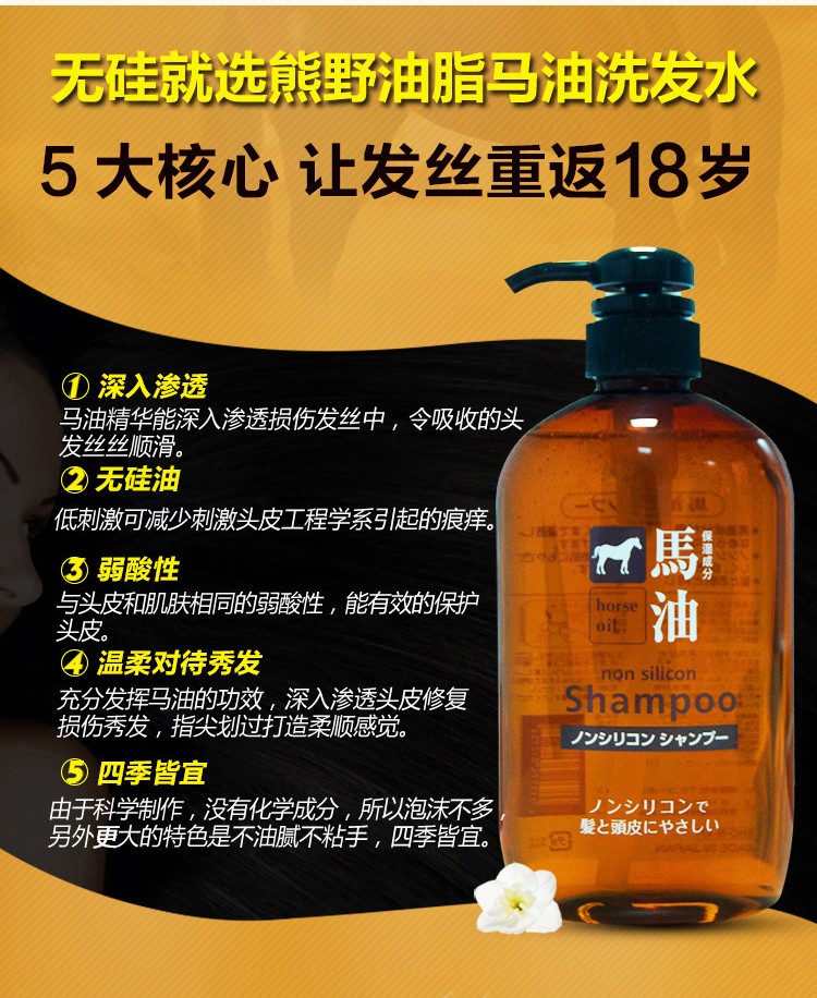 熊野油脂(kumano)日本原装进口 无硅油男女通用滋润天然弱酸马油沐浴护发洗发水 马油沐浴露600ml