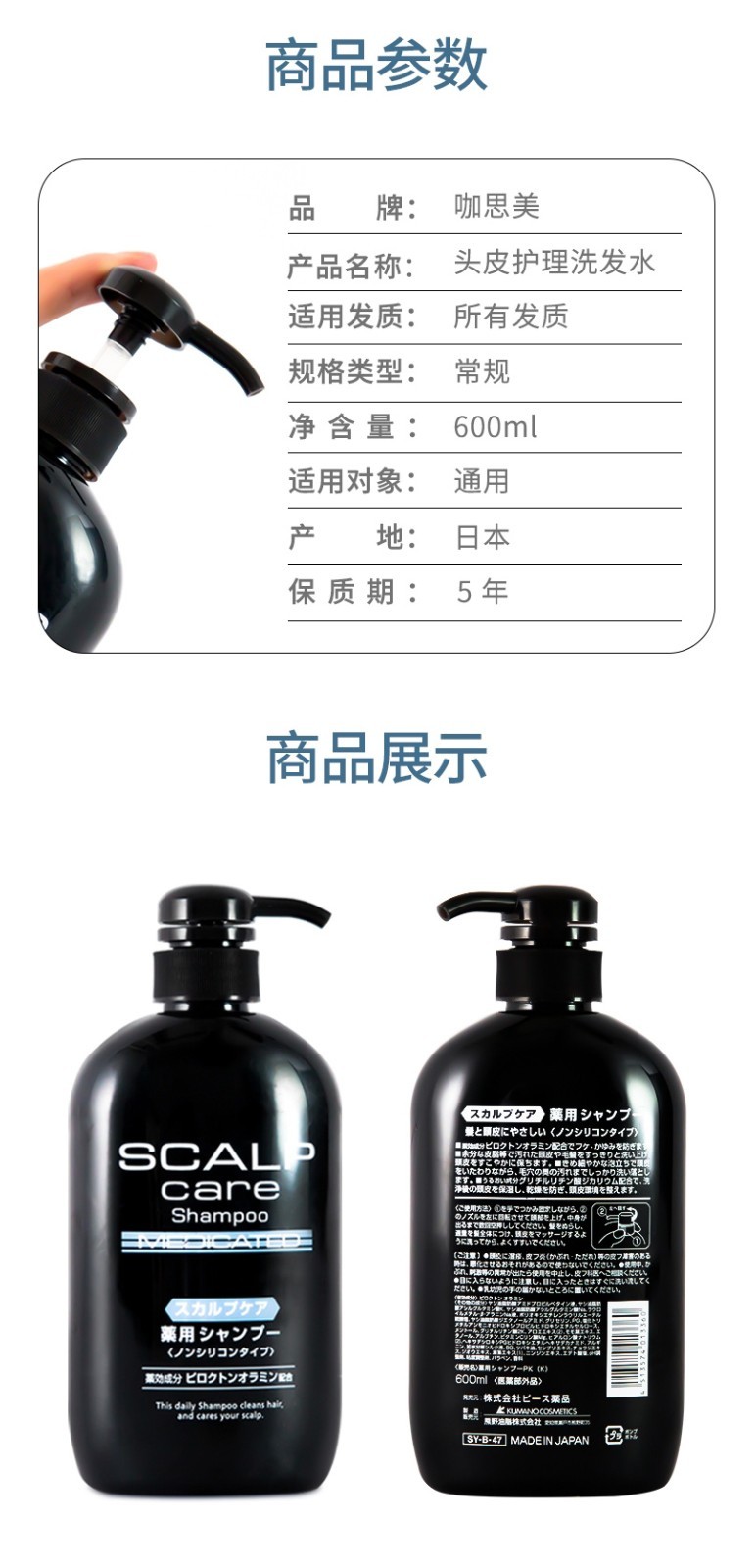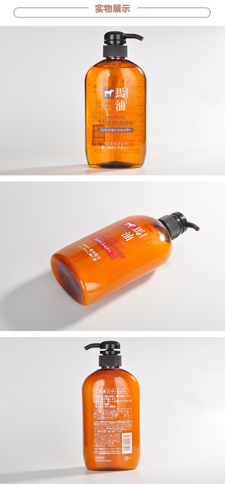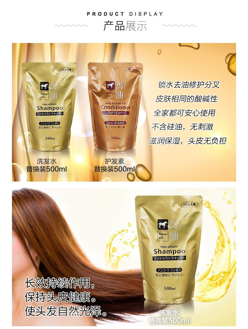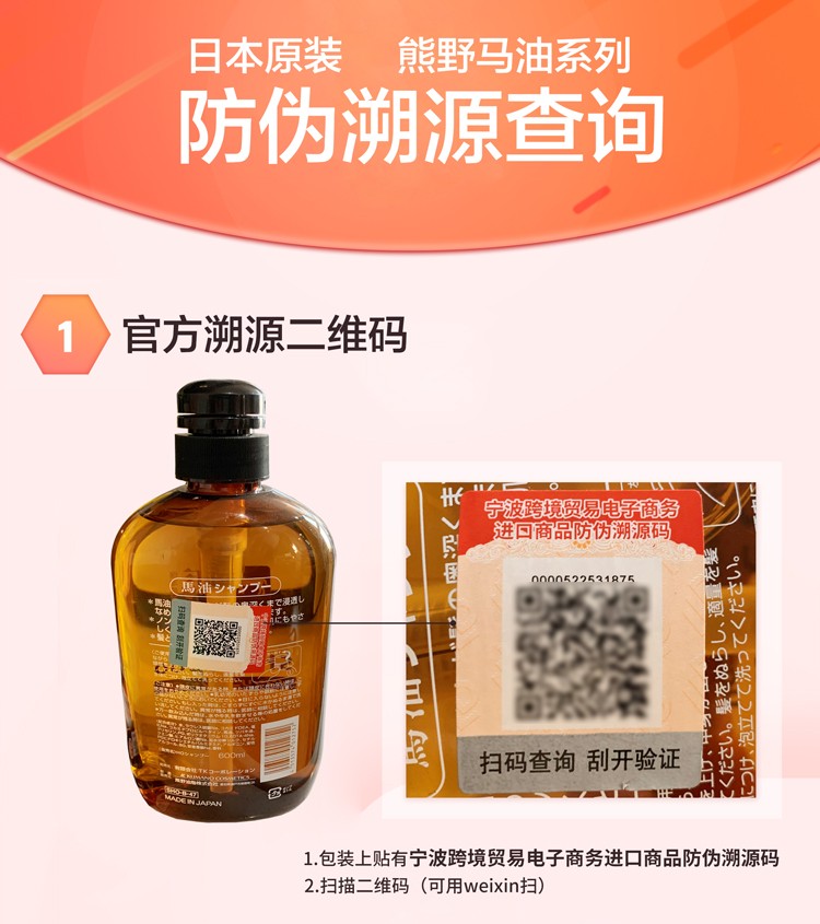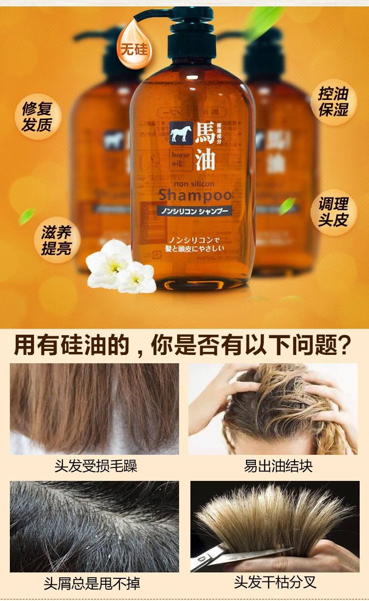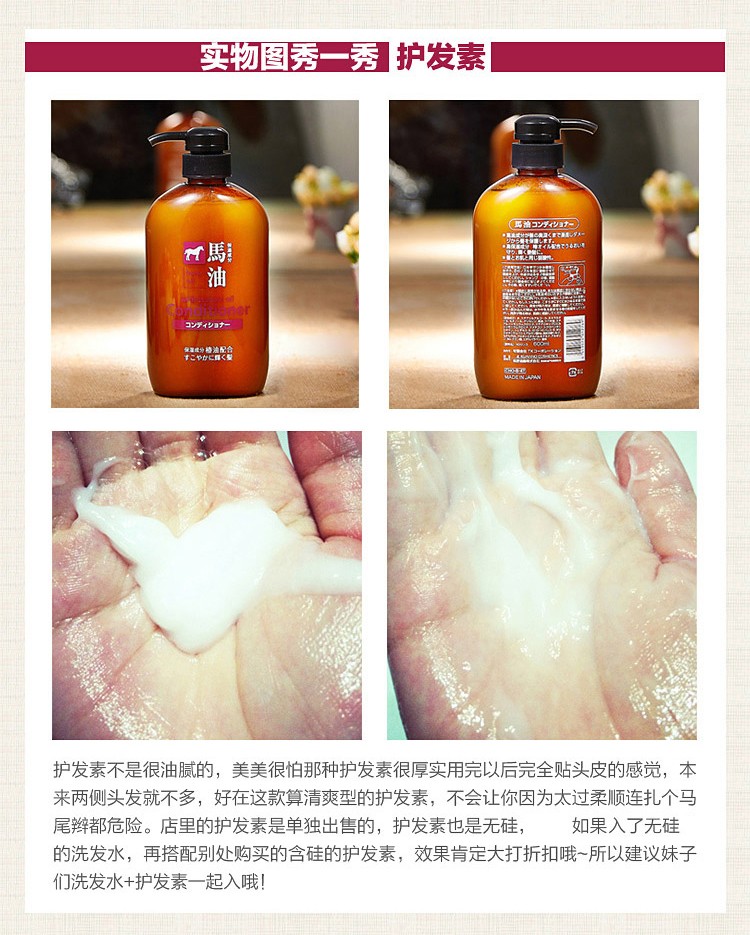 熊野油脂(kumano)日本原装进口 无硅油男女通用滋润天然弱酸马油沐浴护发洗发水 马油沐浴露600ml
