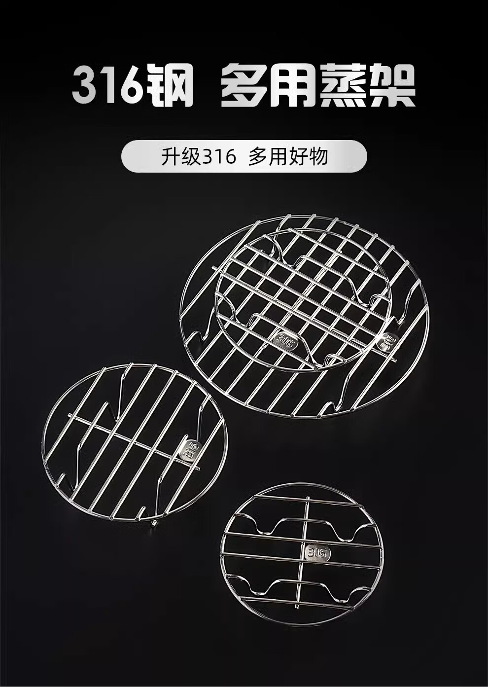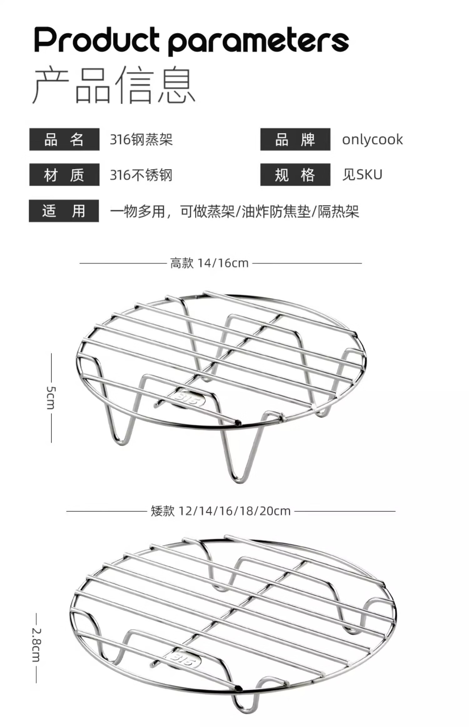 onlycook316不锈钢家用馒头菜蒸格篦子电饭煲隔水蒸片-316蒸架高脚16cm