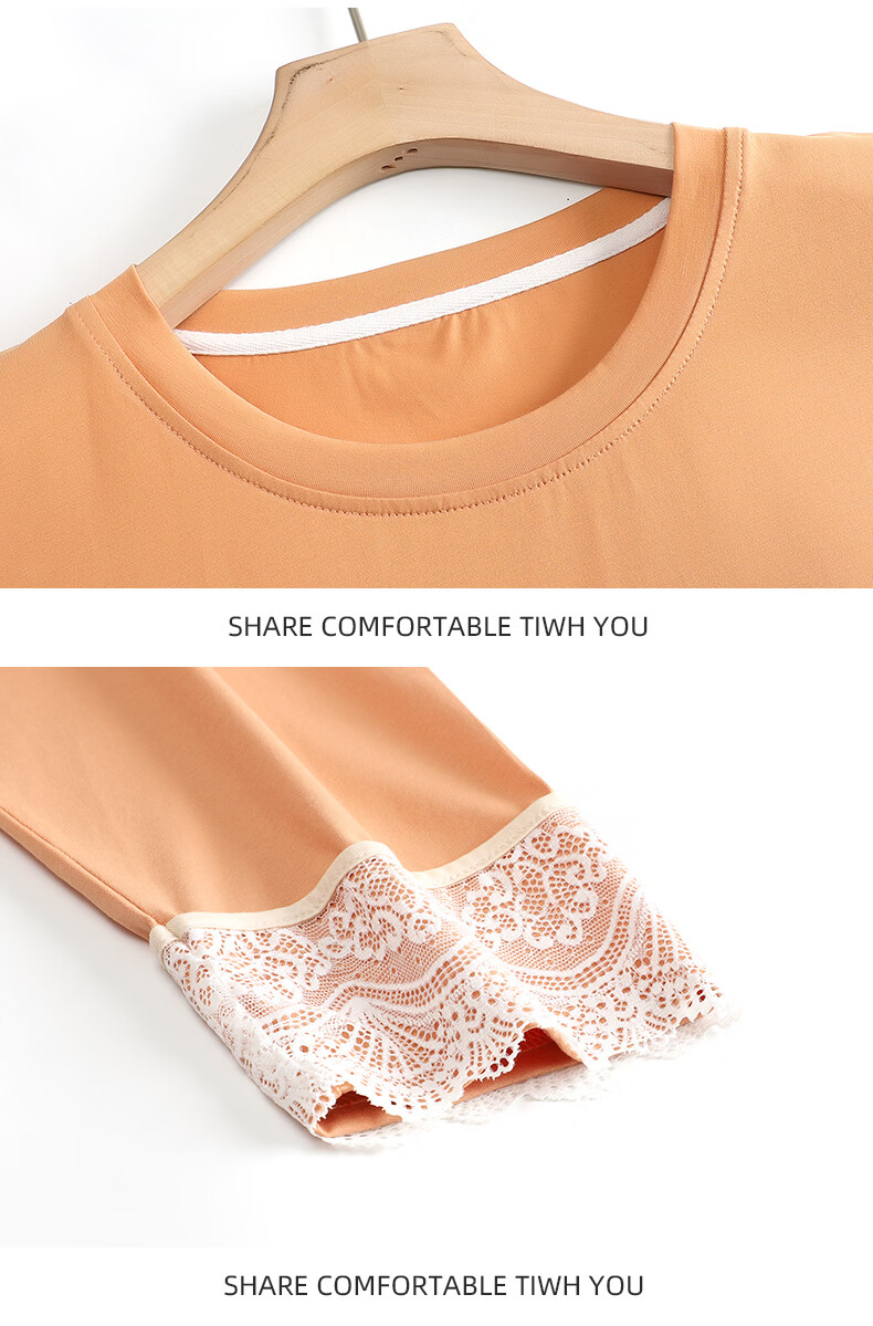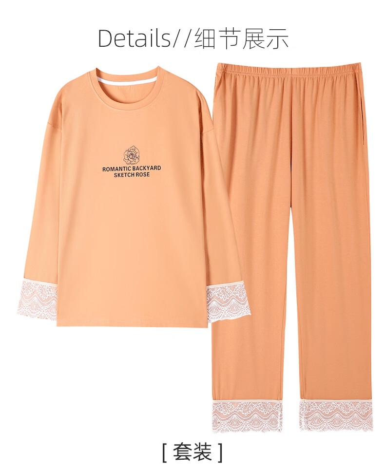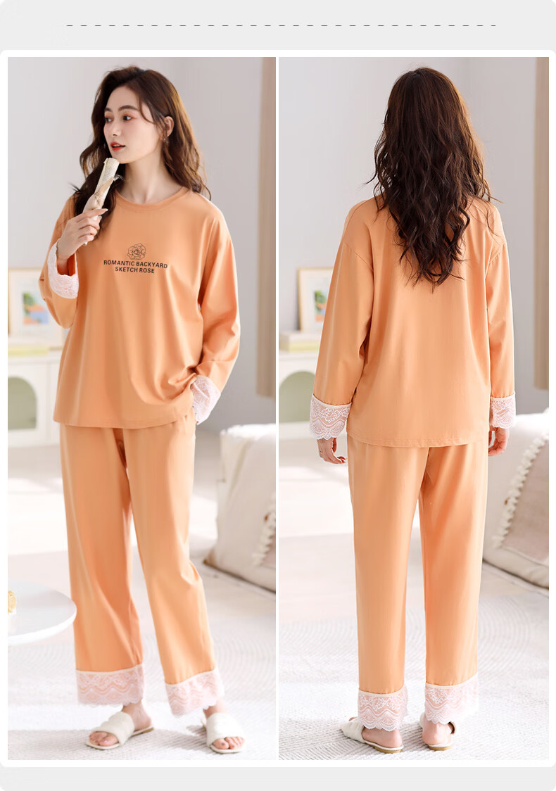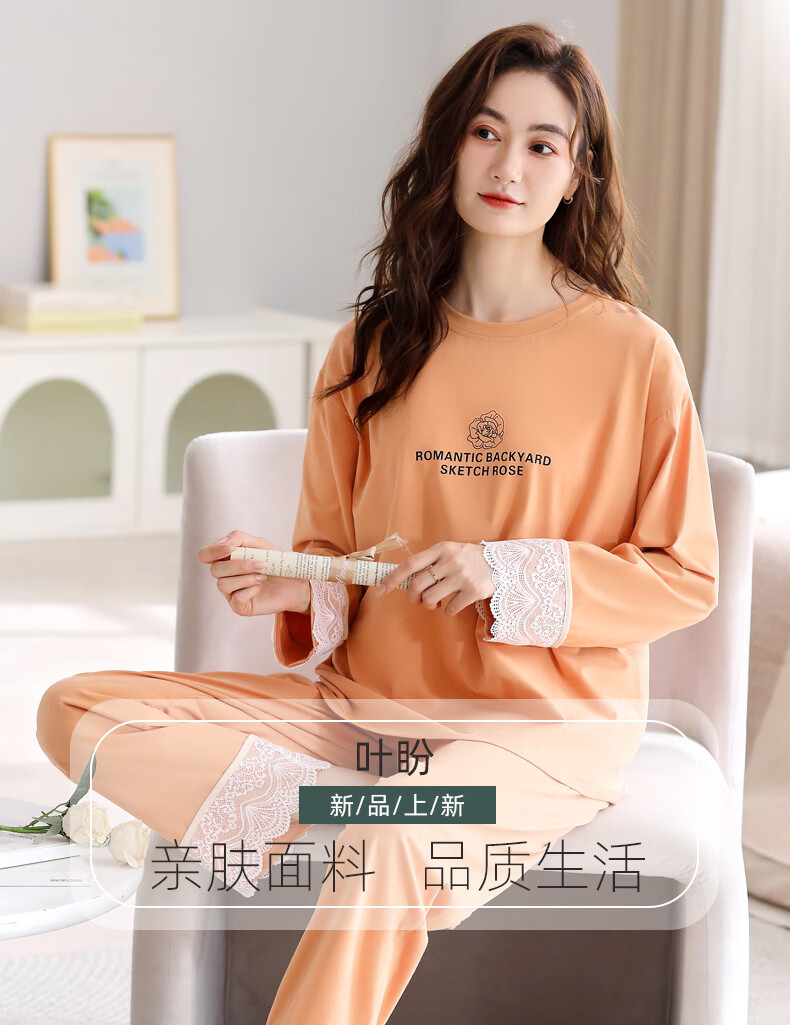 叶盼(yepan)【柔软】睡衣女春秋季莫代尔长袖宽松大码夏季薄款女士家居服套装 4369-麦橘 M (160) :建议90-110斤穿着