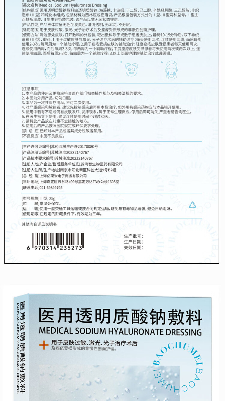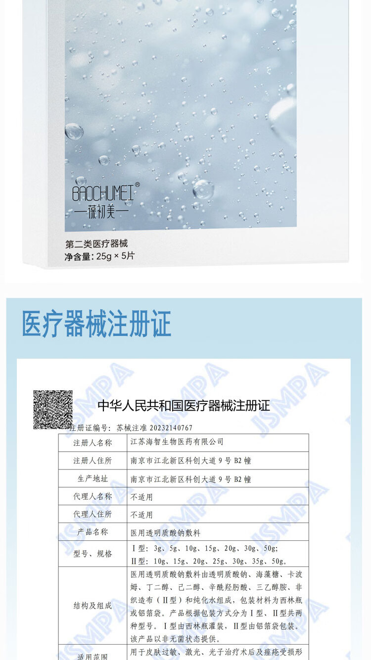 屈臣氏葆初美医用透明质酸钠敷料5片
