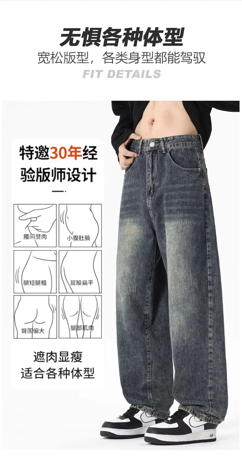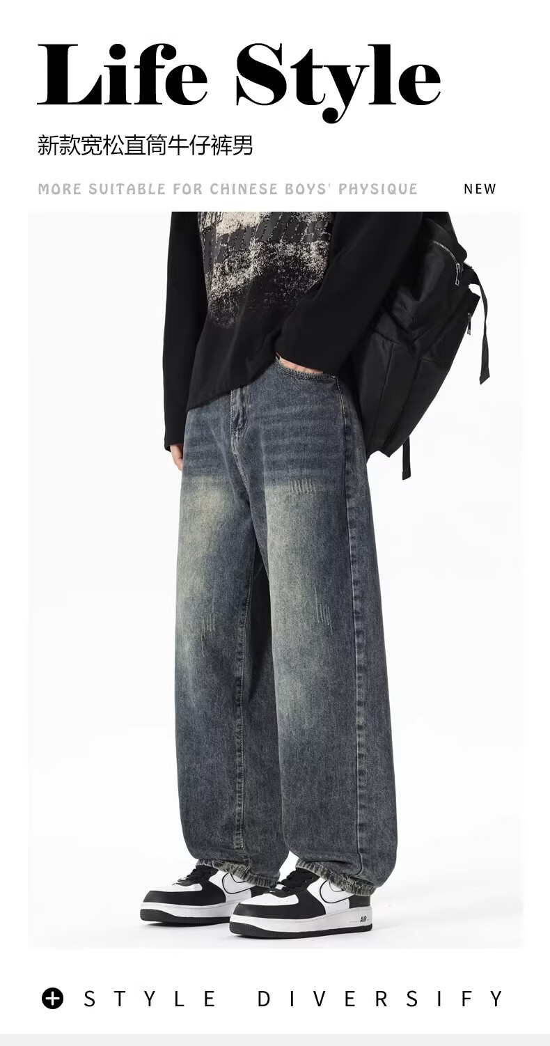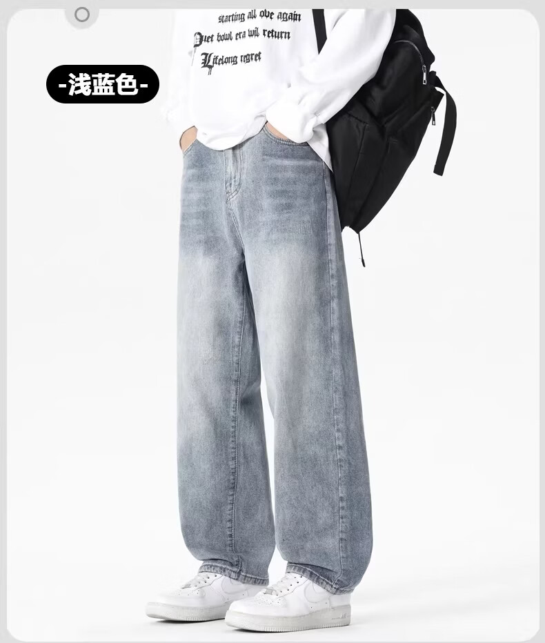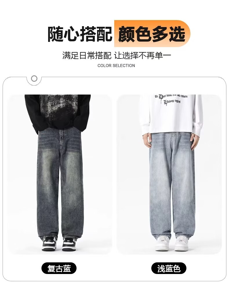 真维斯2026美式复古牛仔裤男宽松直筒阔腿长裤男士显高显瘦潮牌休闲裤子 浅蓝色【官方正品】 28 【建议80-100斤】