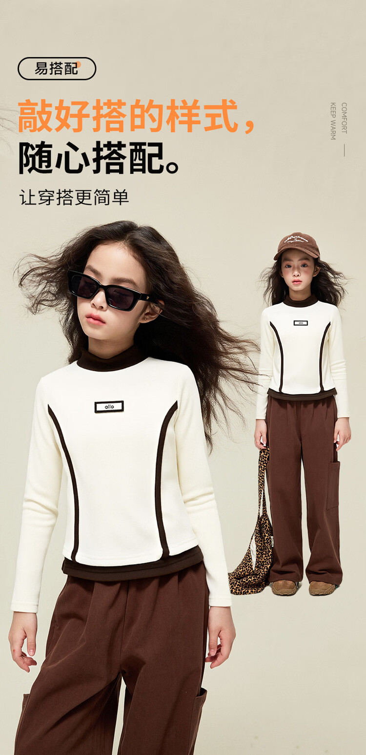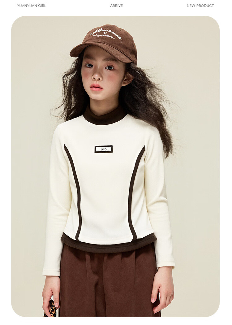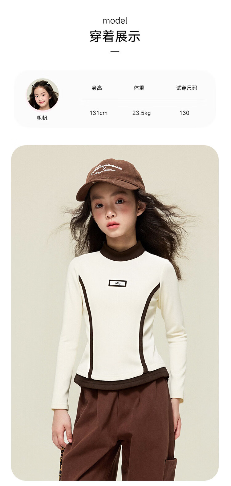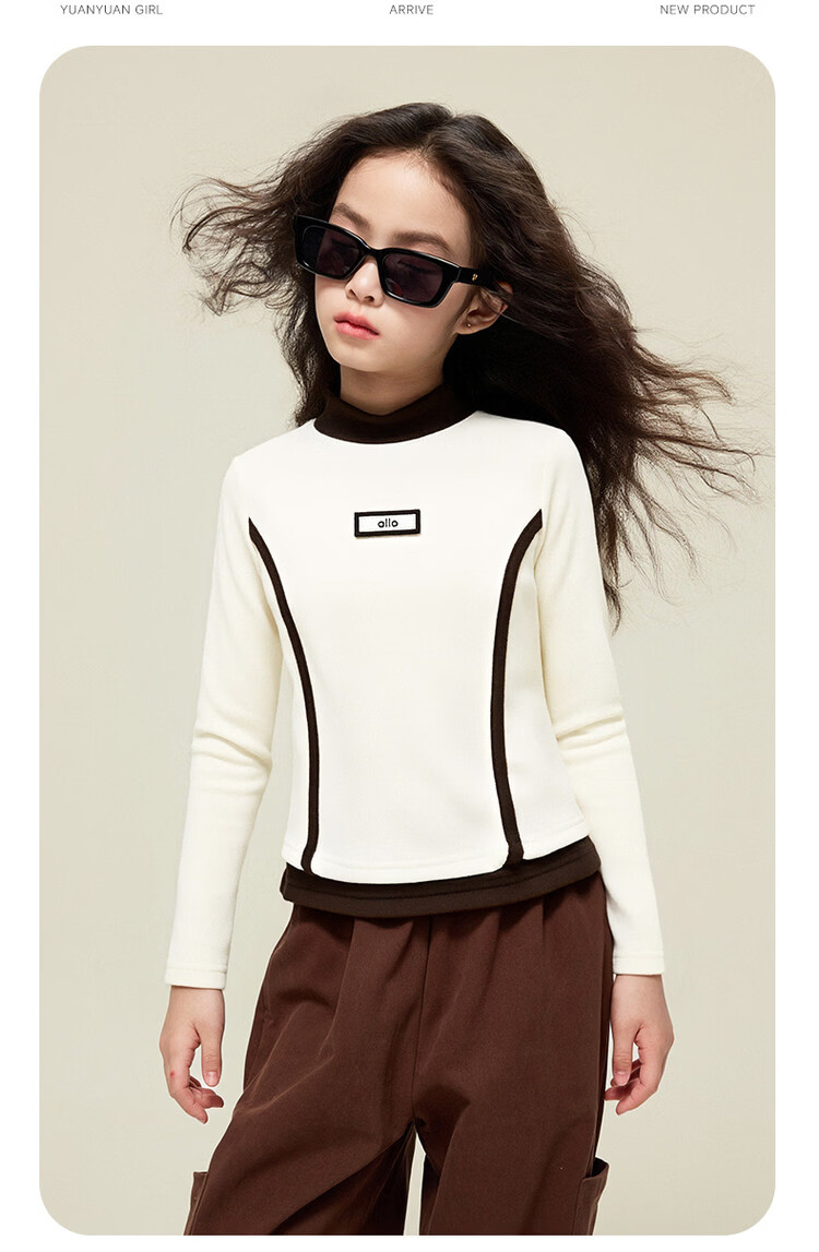 媛媛公主女童T恤长袖25秋冬款洋气儿童半高领保暖上衣中大童百搭打底衫 米色 110