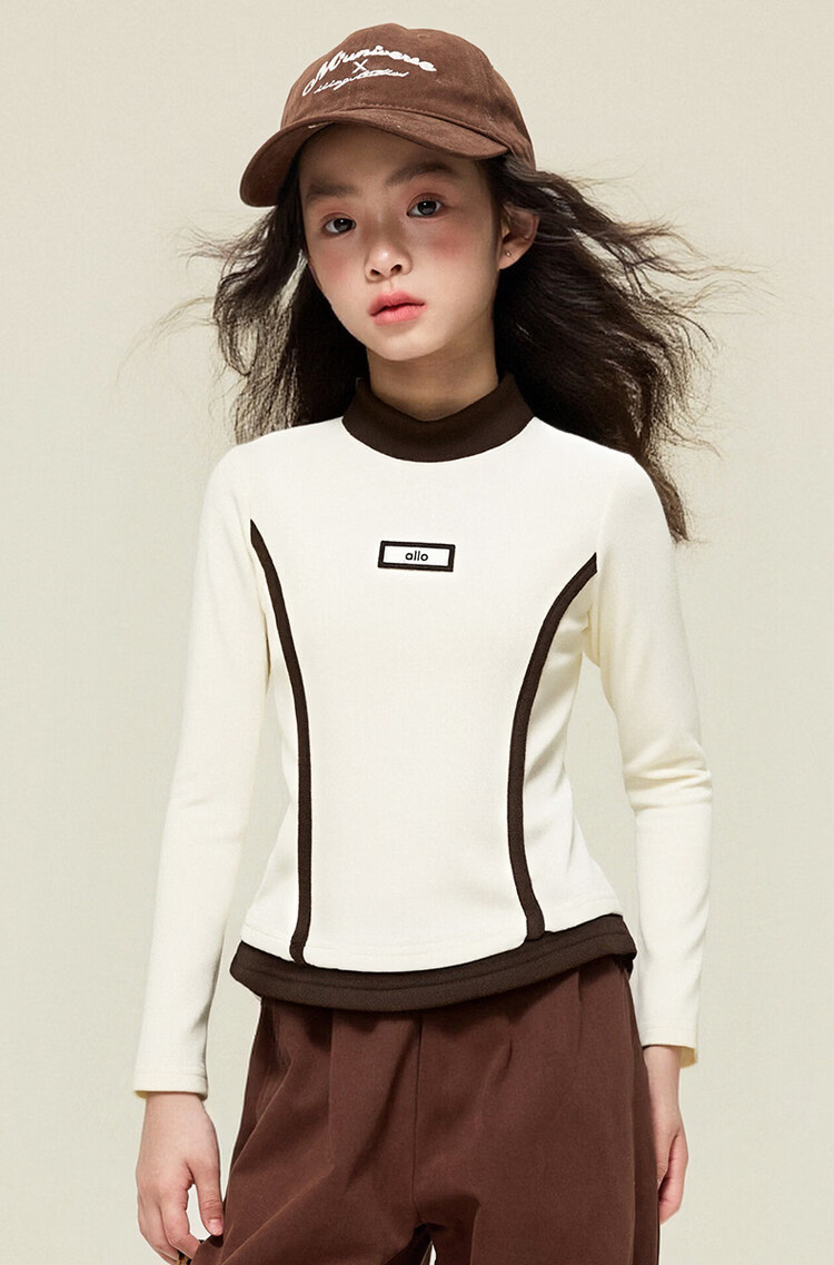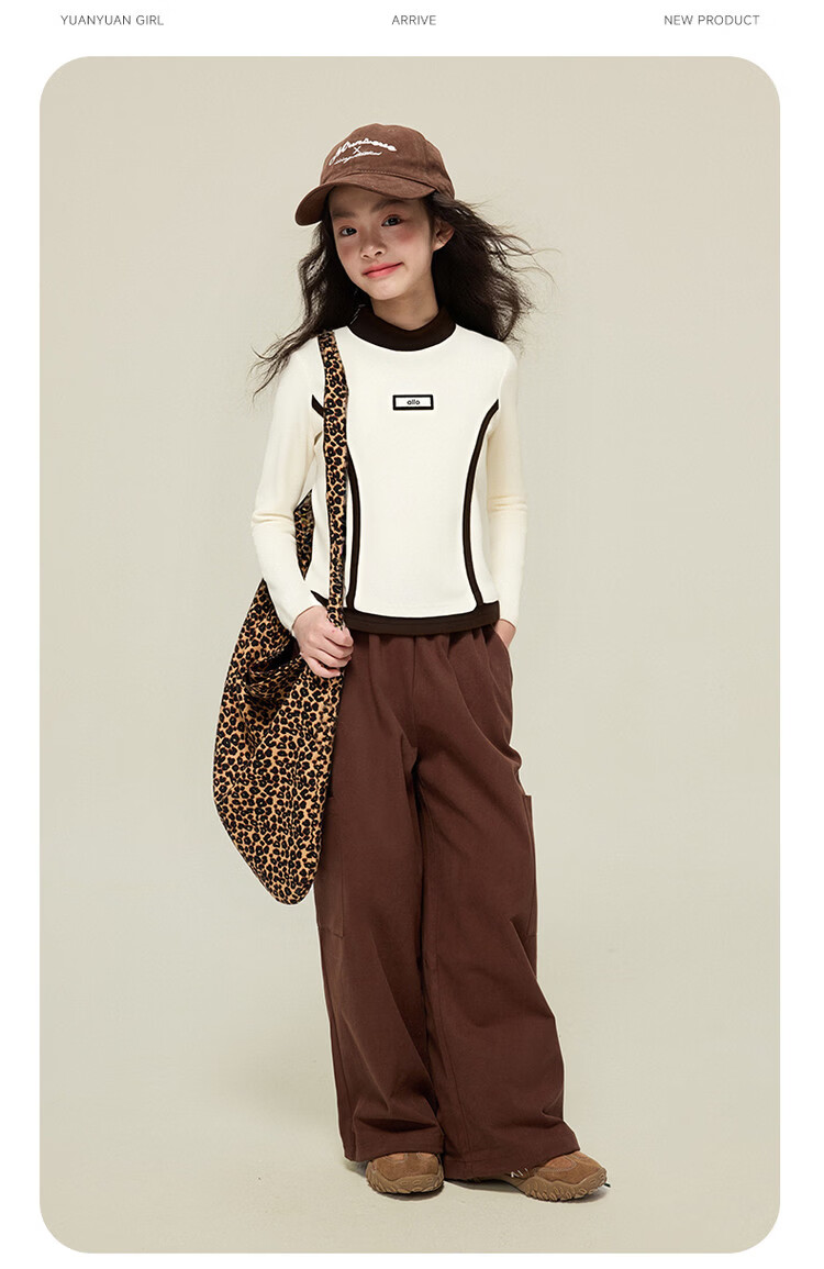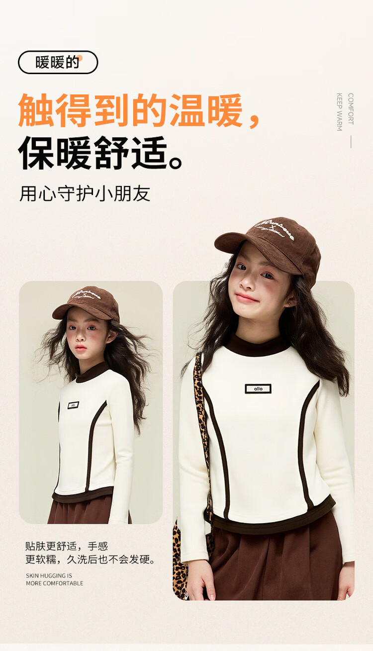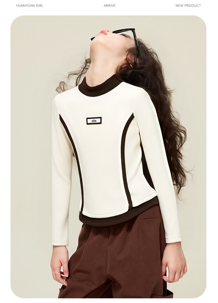 媛媛公主女童T恤长袖25秋冬款洋气儿童半高领保暖上衣中大童百搭打底衫 米色 110