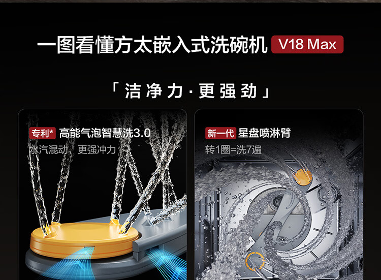 方太(FOTILE)【新品】洗碗机03-V18Max 嵌入式 150L以上家宴容量 三层碗篮可调节 智能投放 四重消杀 嵌入式 150L 03-B-V18Max