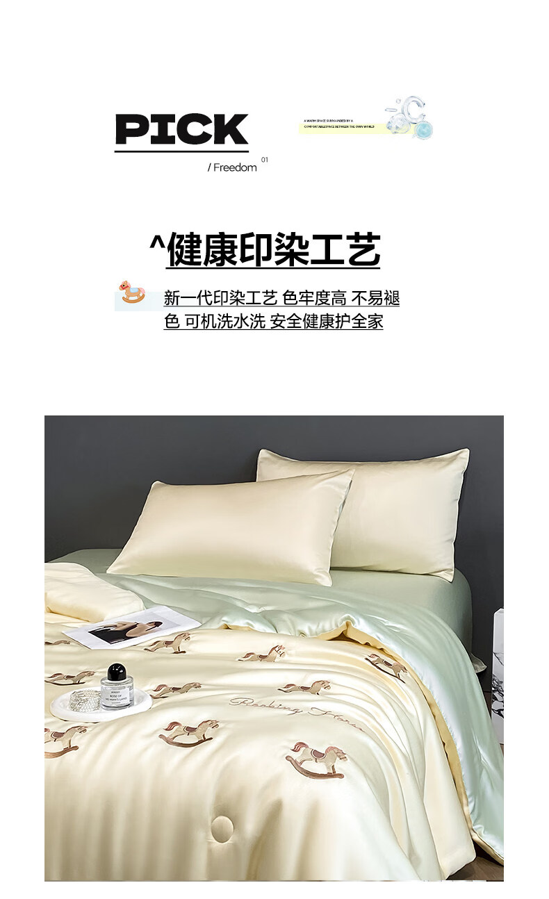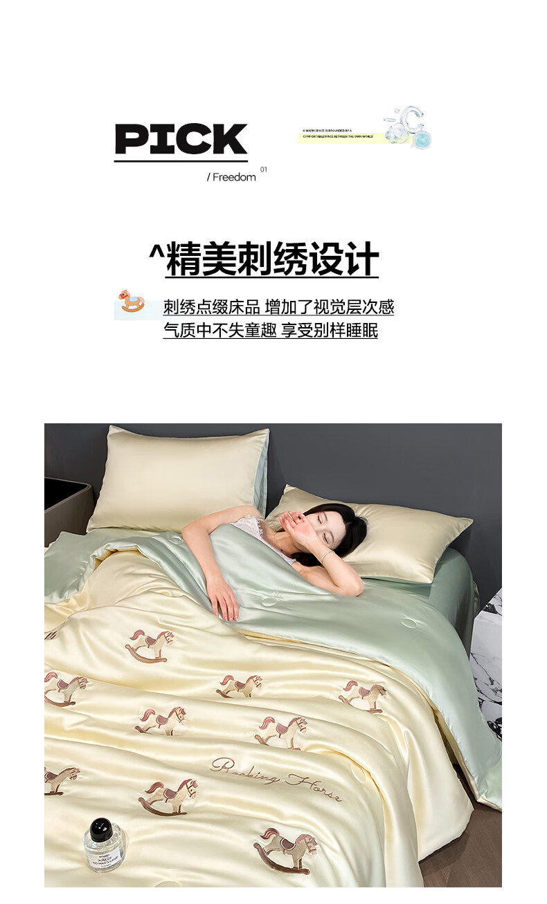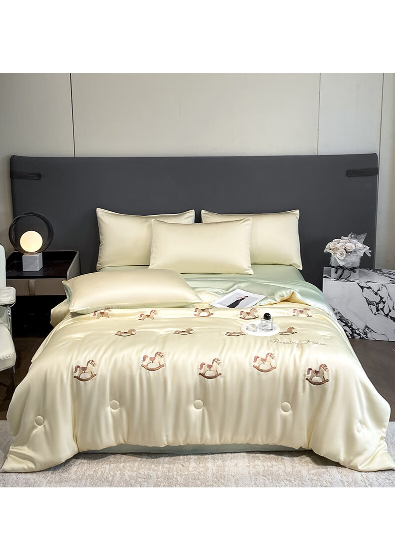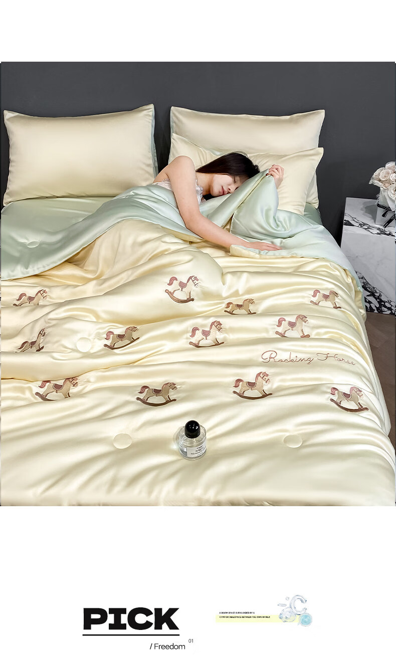 阿尔皮纳袋鼠冰丝凉感夏凉被夏季空调被子被芯可机洗夏被宿舍空调被单双人被褥 小熊-奶黄绿【A类三倍凉感冰丝抗菌抑菌】 150*200cm单夏被【三倍凉感丝滑裸睡】