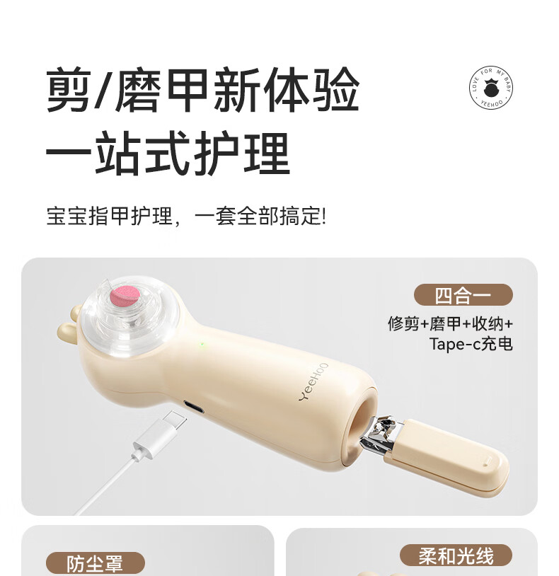 英氏(YEEHOO)婴儿指甲剪新生儿专用电动磨甲器幼儿童指甲刀宝宝指甲钳打磨 电动磨甲器套装+备用指甲剪
