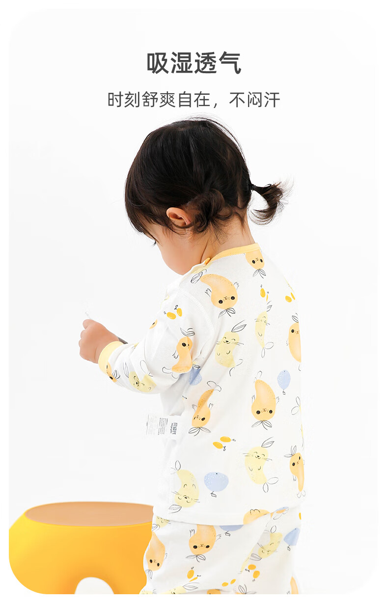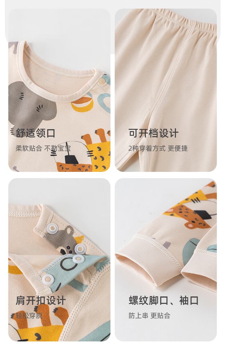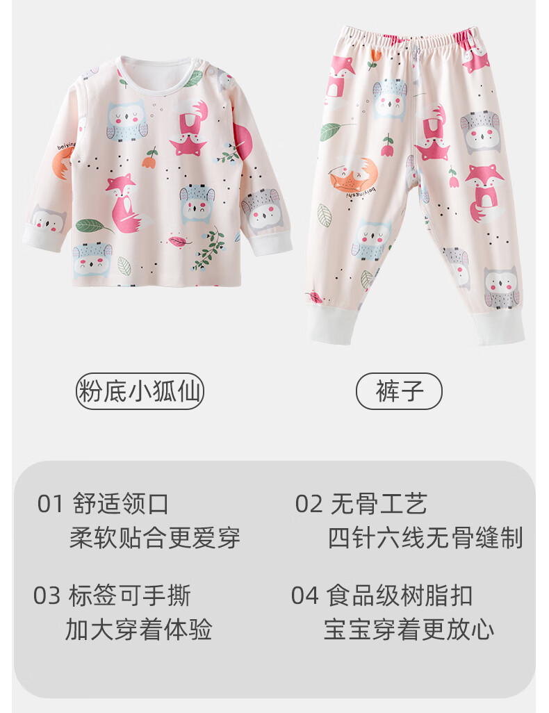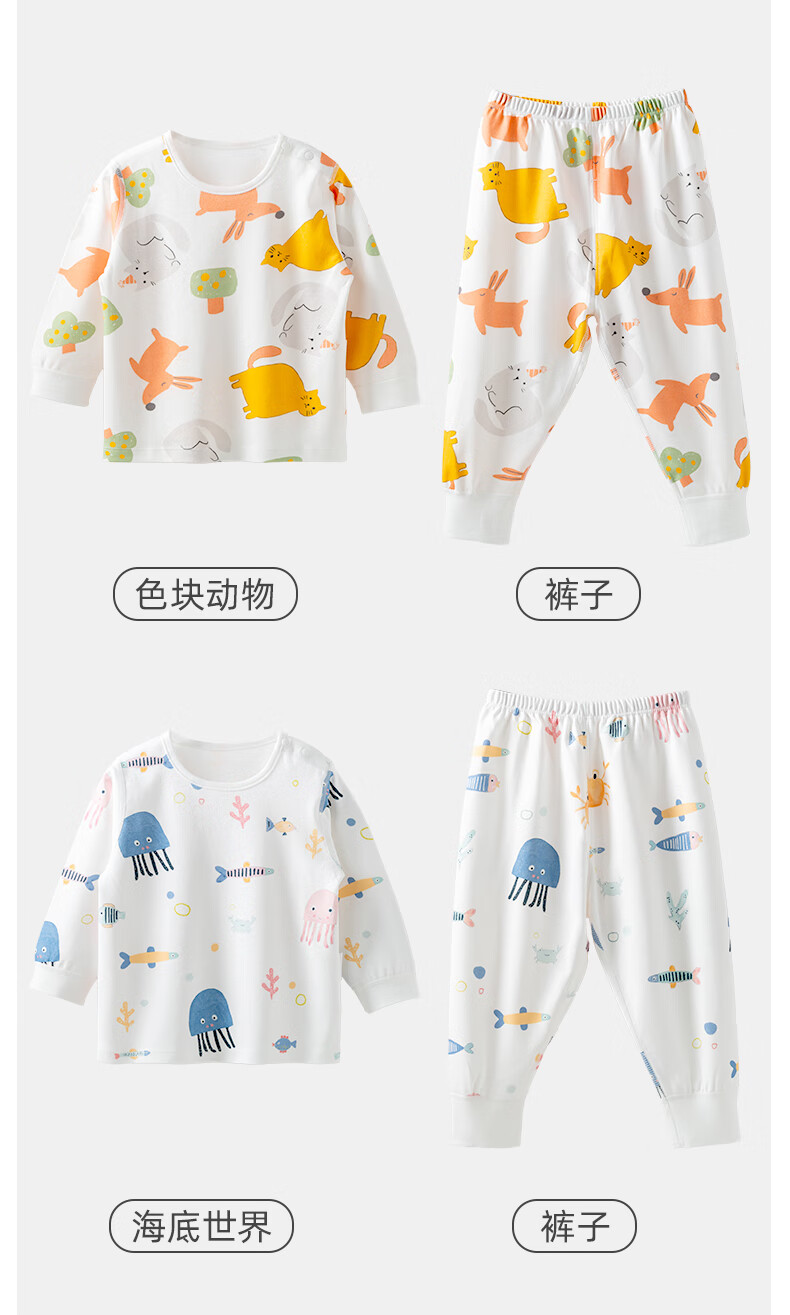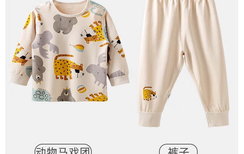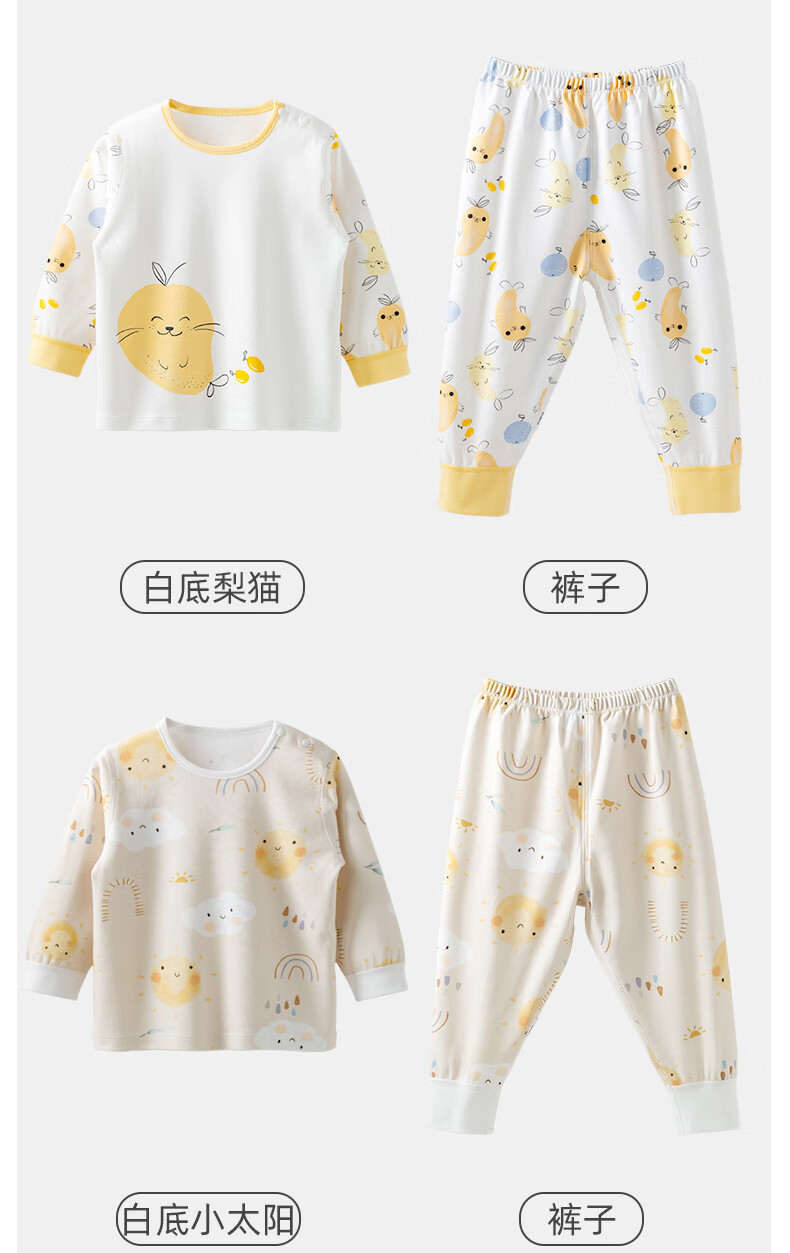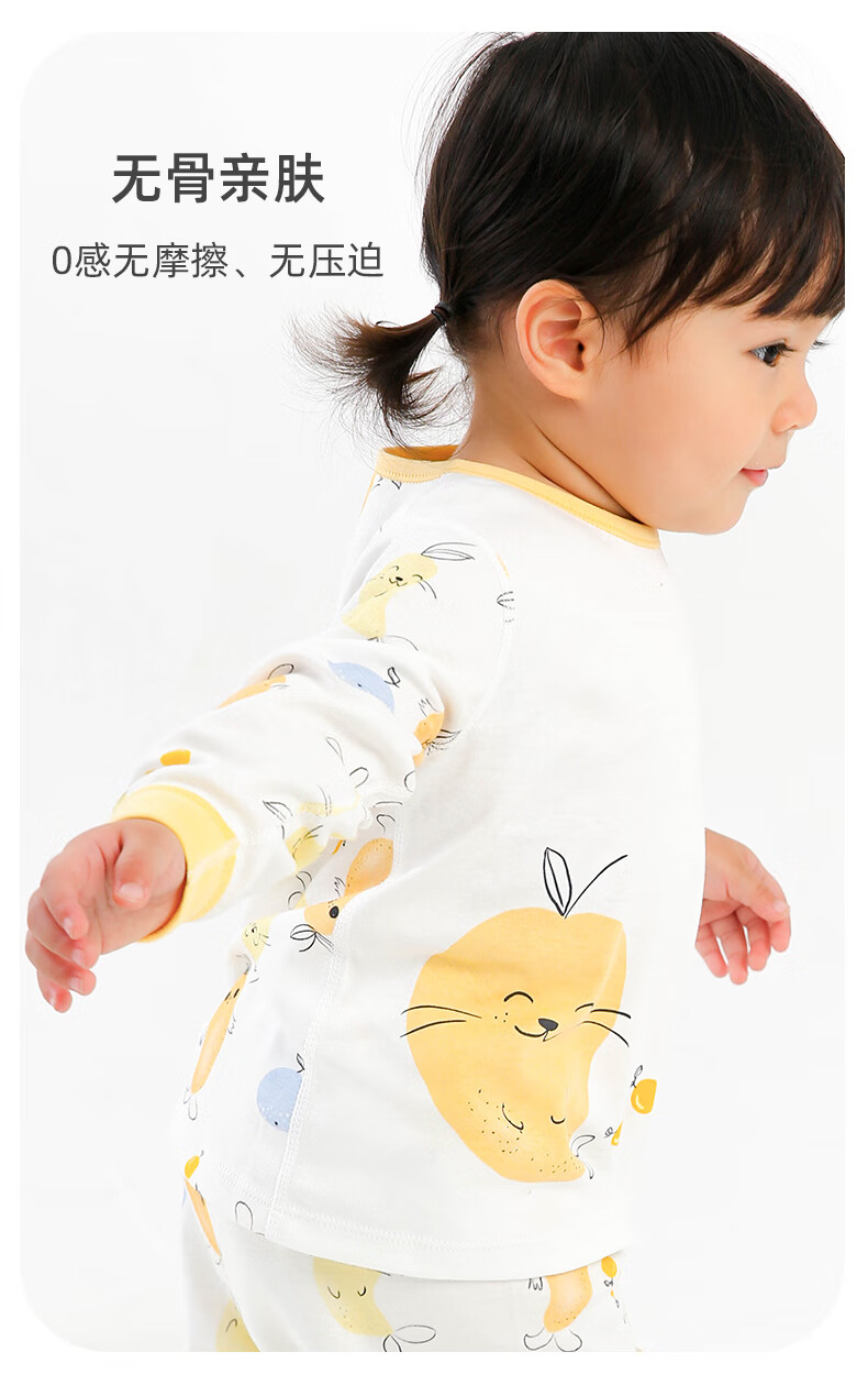 贝婴氏【195g新疆长绒棉】婴儿内衣套装纯棉衣服秋宝宝睡衣儿童秋衣秋裤 水果小猫 90 cm