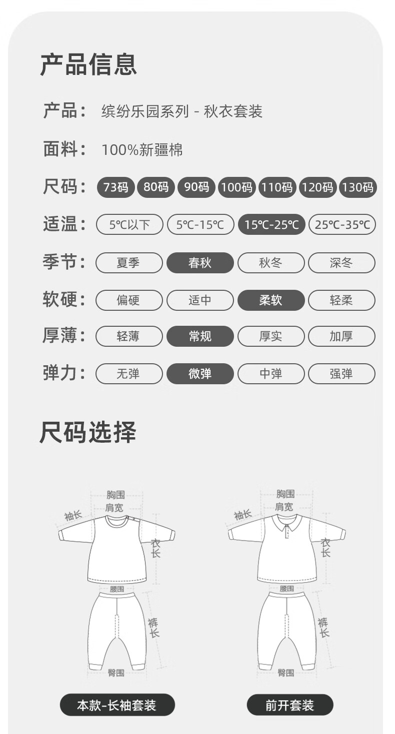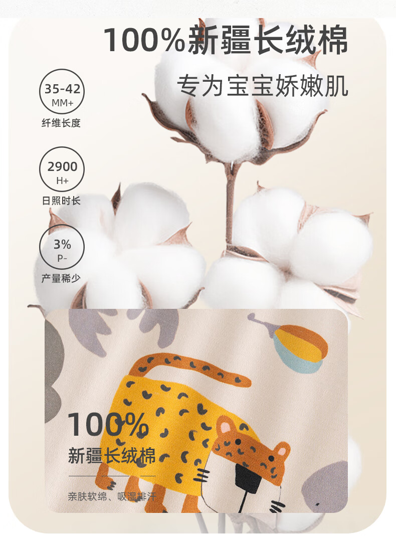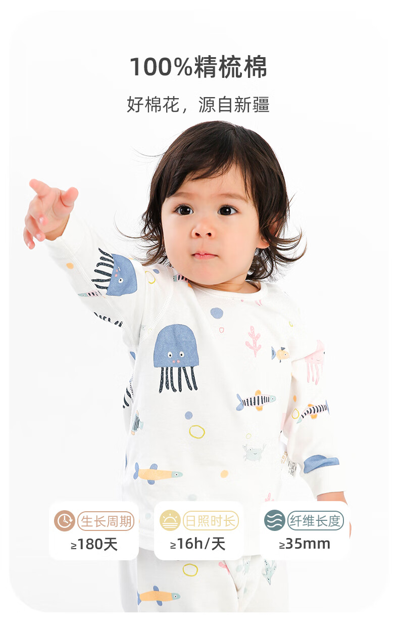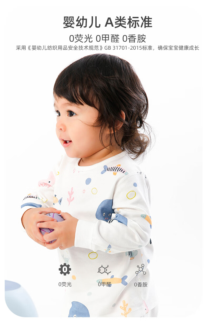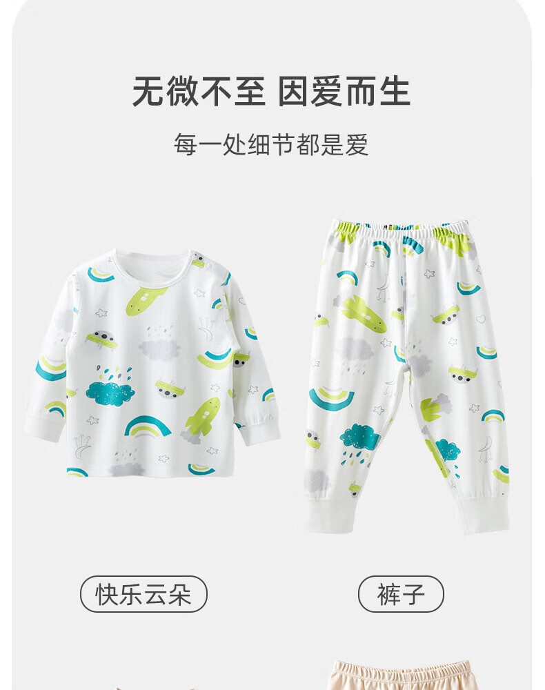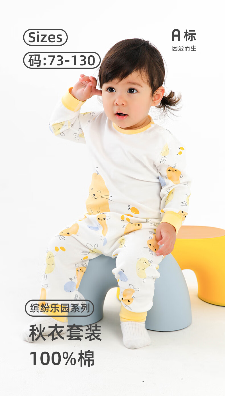 贝婴氏【195g新疆长绒棉】婴儿内衣套装纯棉衣服秋宝宝睡衣儿童秋衣秋裤 水果小猫 90 cm