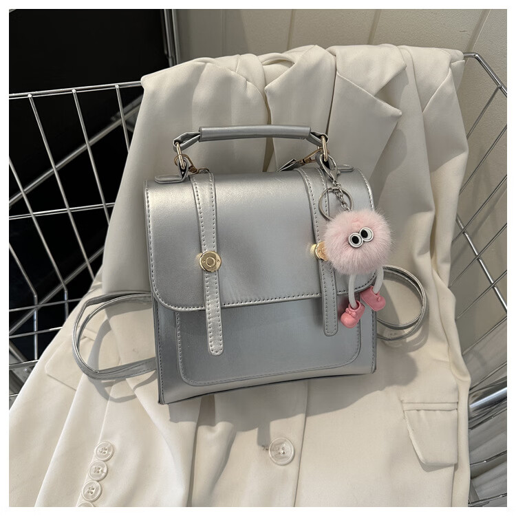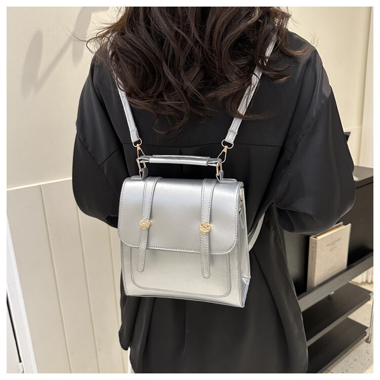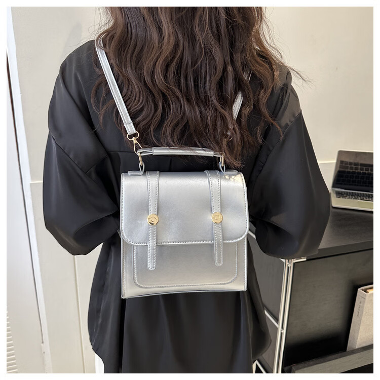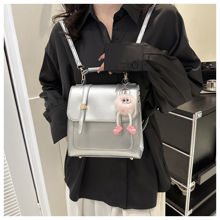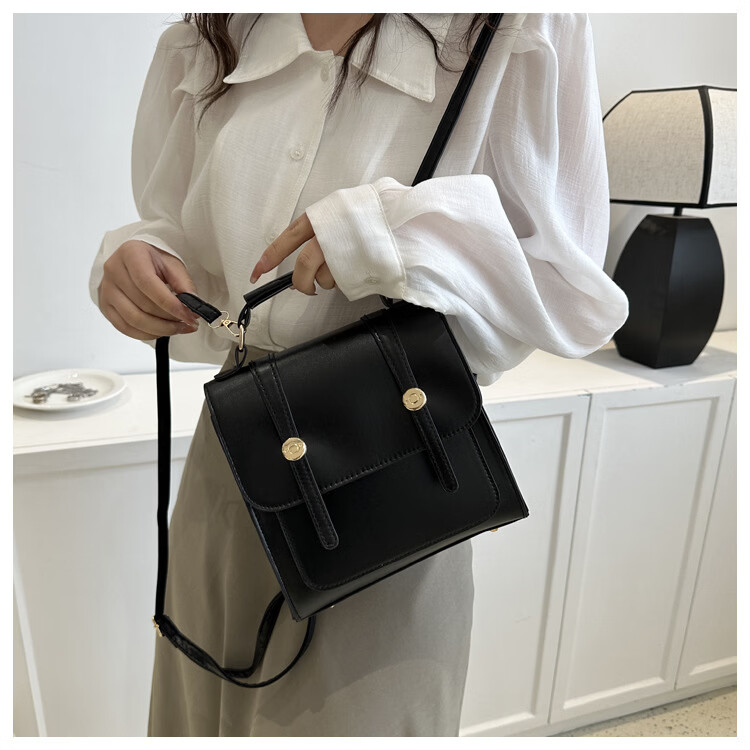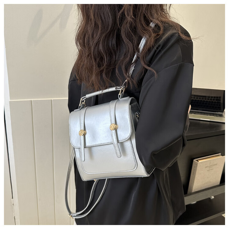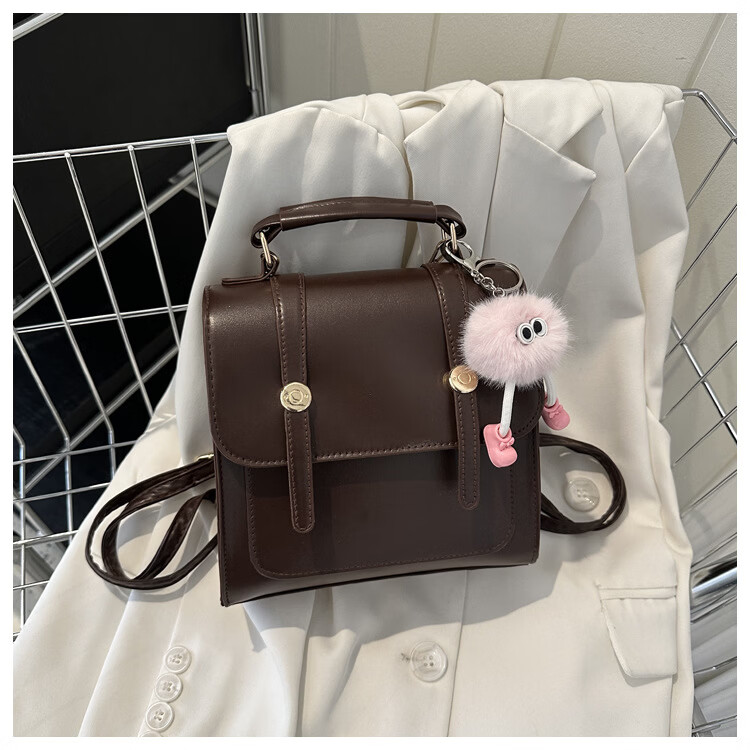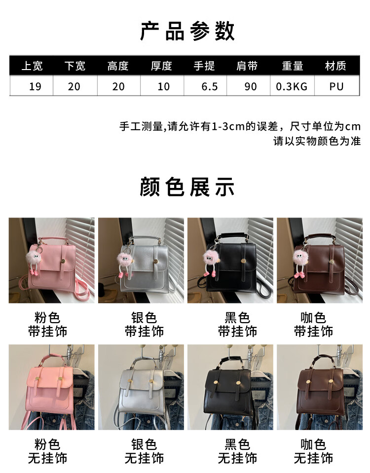 【现货现发】简约双肩背包女学院风包包女包2024新款时尚休闲单肩 黑色无挂件