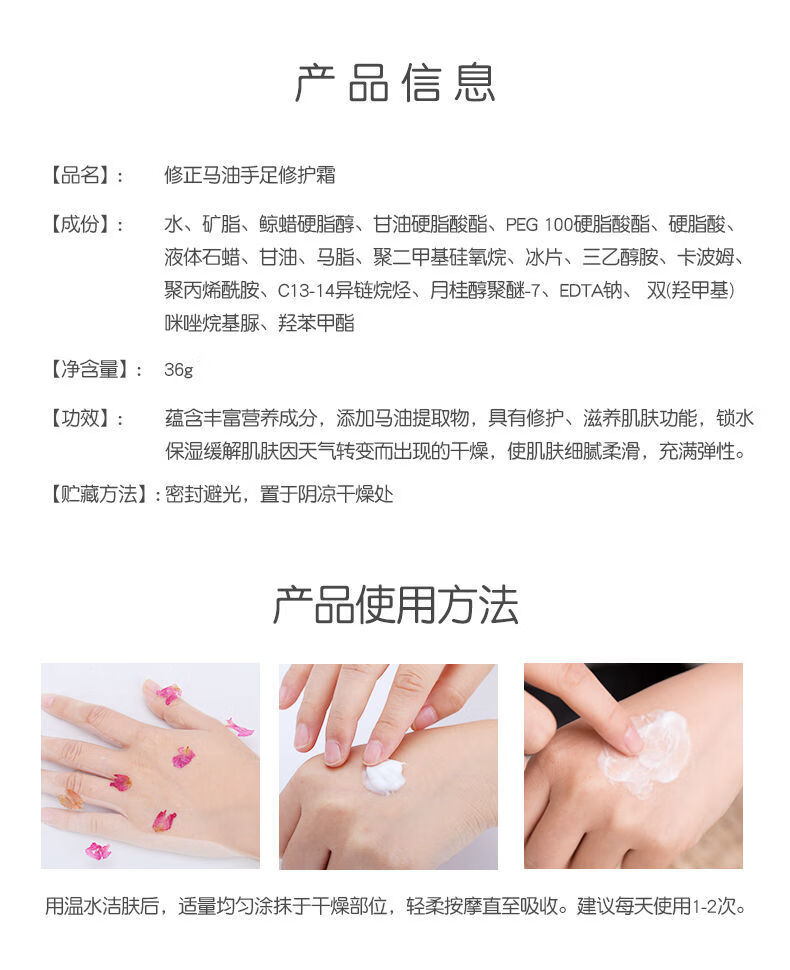修正马油手足修护霜手脚干燥脱皮开裂足跟干裂干纹滋润保湿36克/瓶 3瓶【马油手足修护霜】