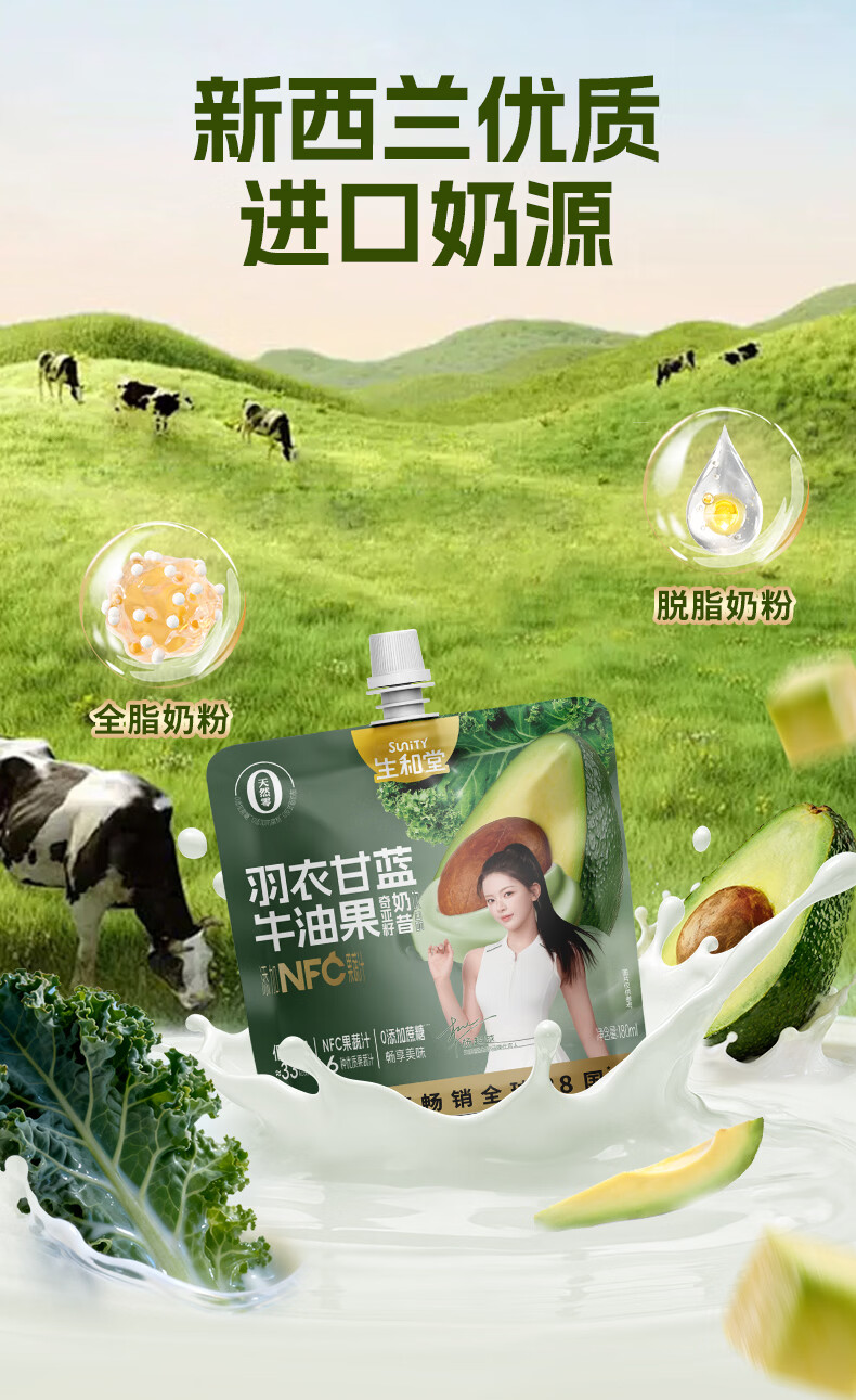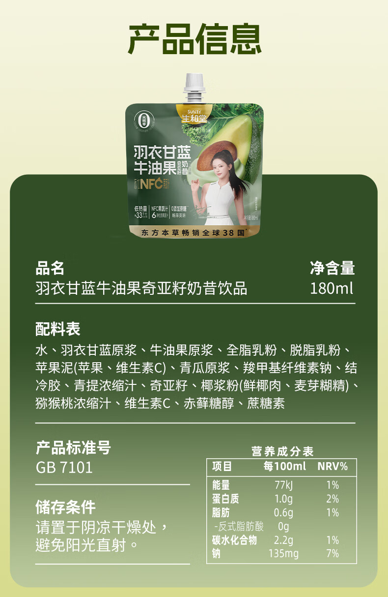 生和堂牛油果羽衣甘蓝奇亚籽饱腹轻食奶昔饮品180ml 【10袋】牛油果羽衣甘蓝奇亚籽180ml