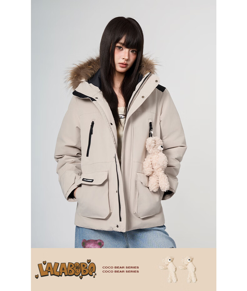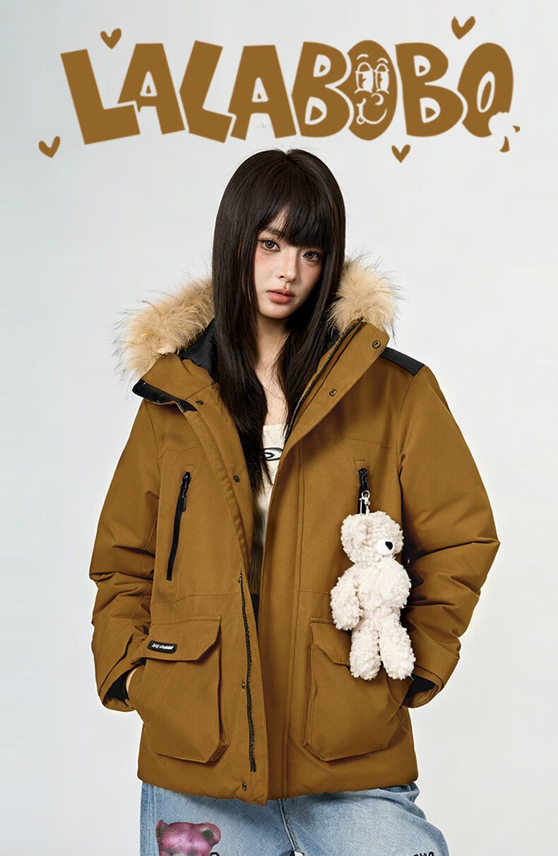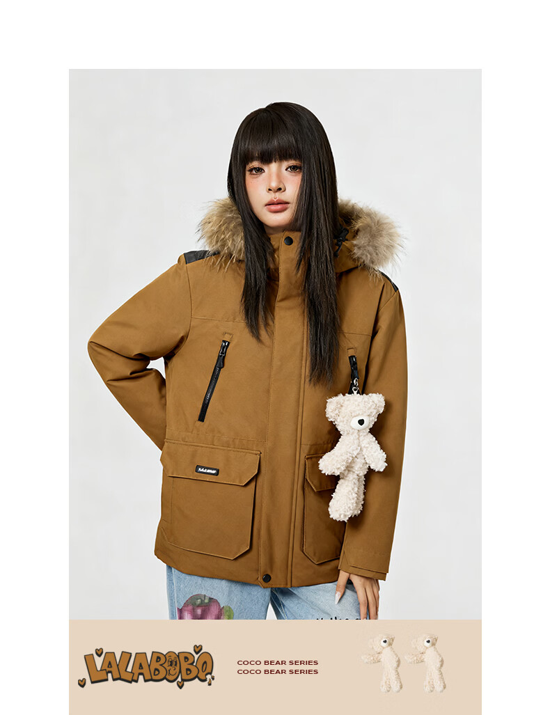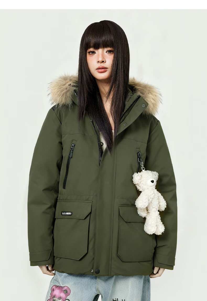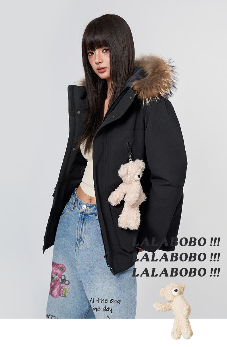 LALABOBO90鸭绒毛领工装羽绒服冬季新款保暖连帽加厚外套LBDD-WSYR17 绿色 L