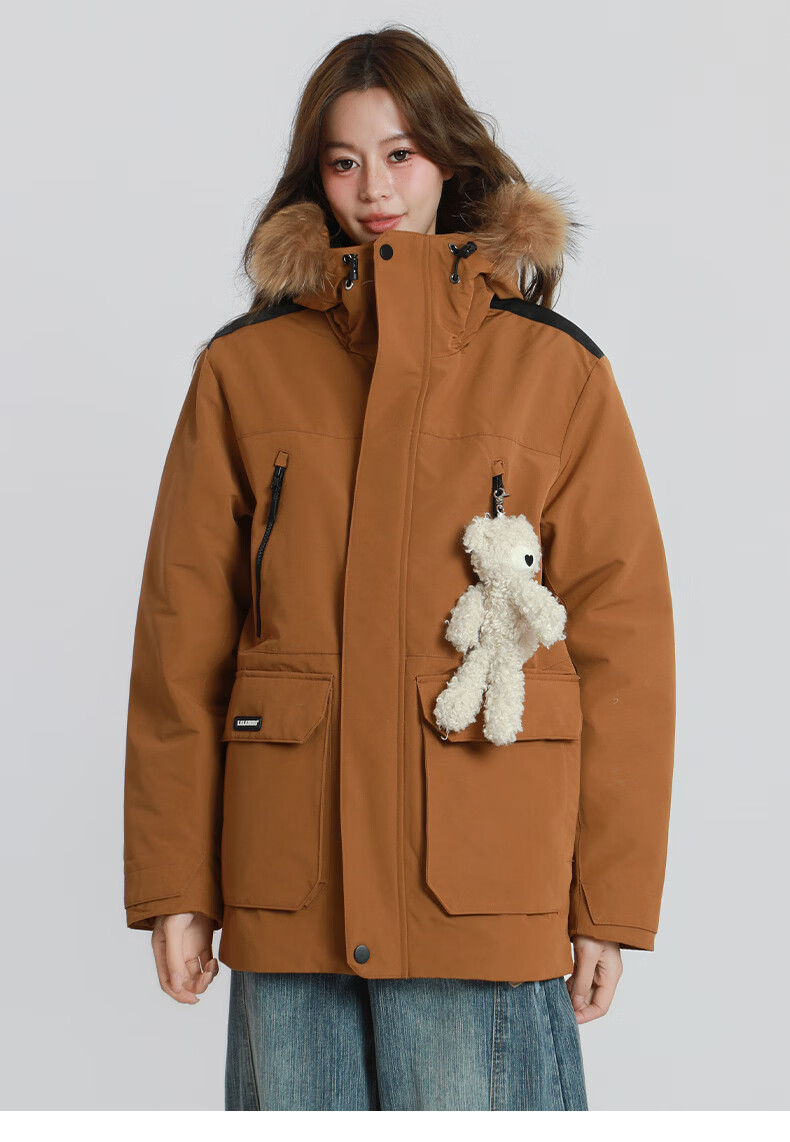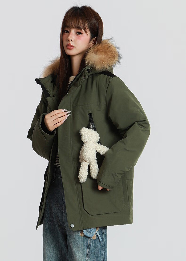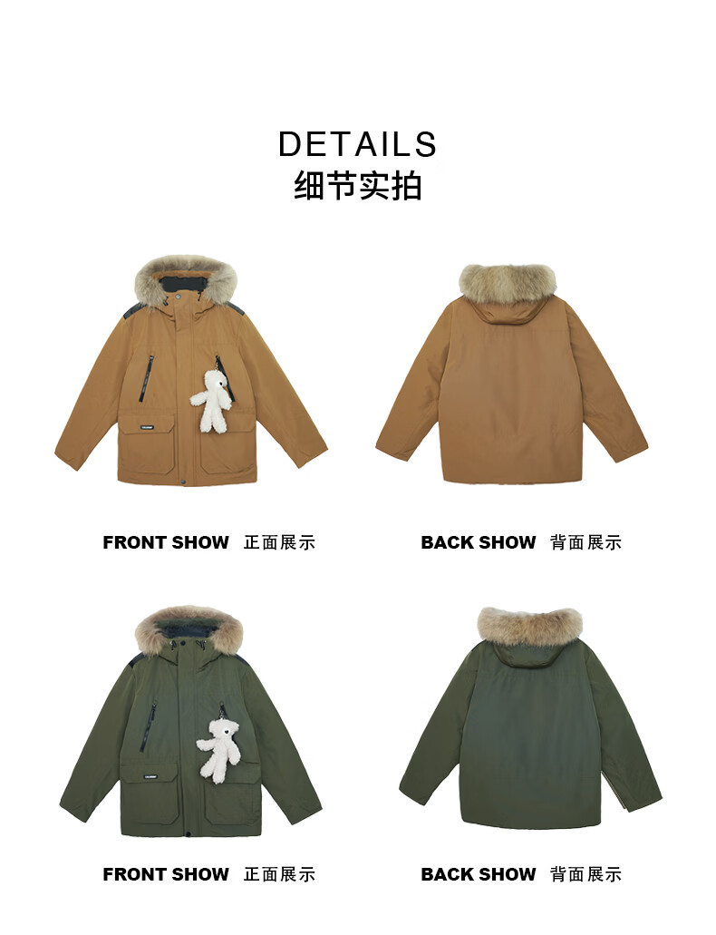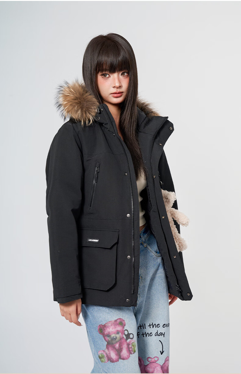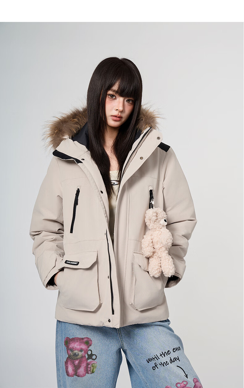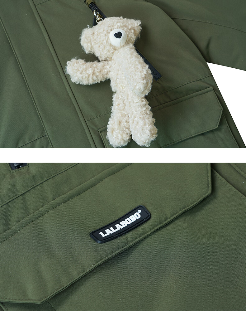 LALABOBO90鸭绒毛领工装羽绒服冬季新款保暖连帽加厚外套LBDD-WSYR17 绿色 L