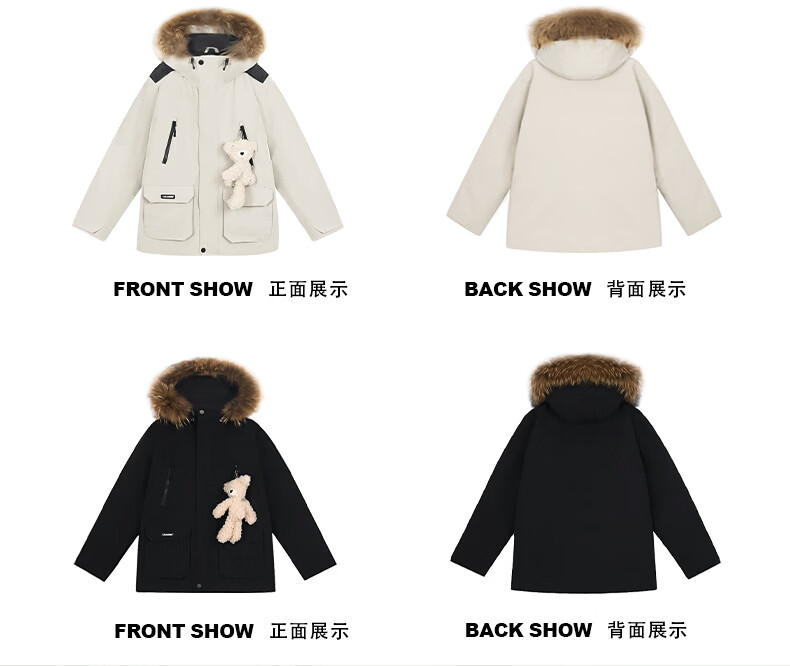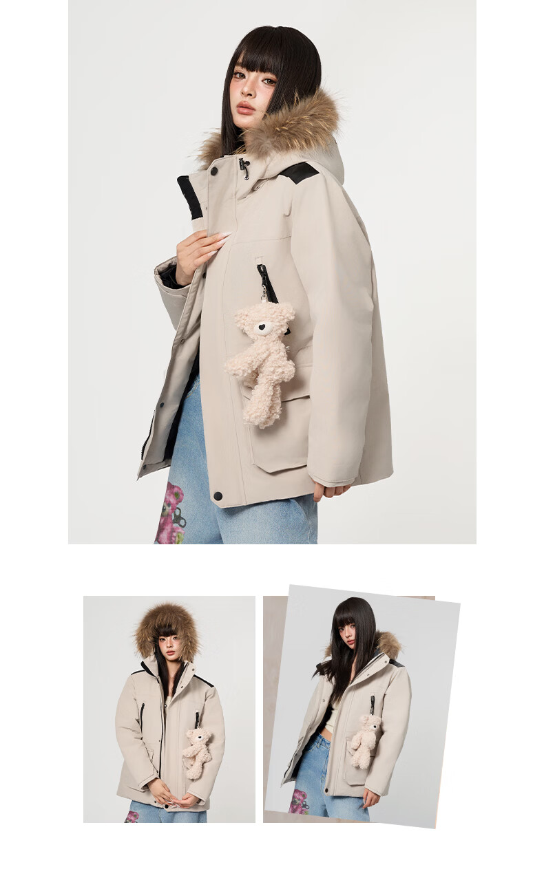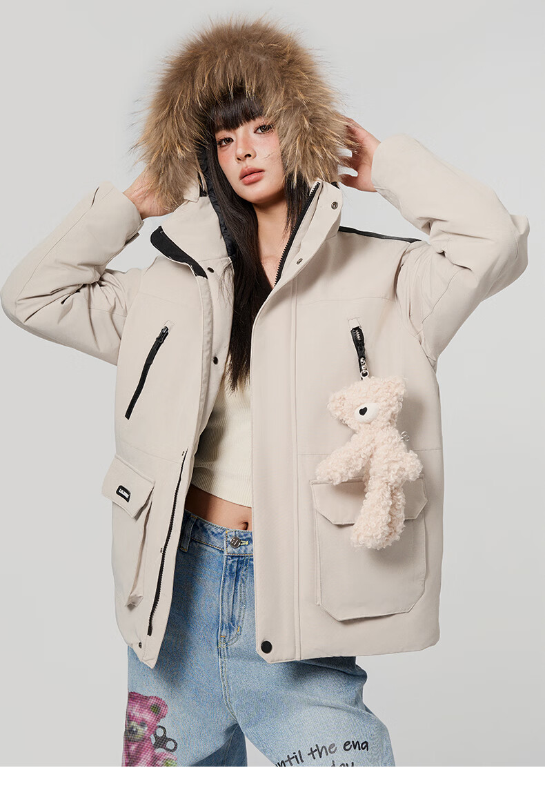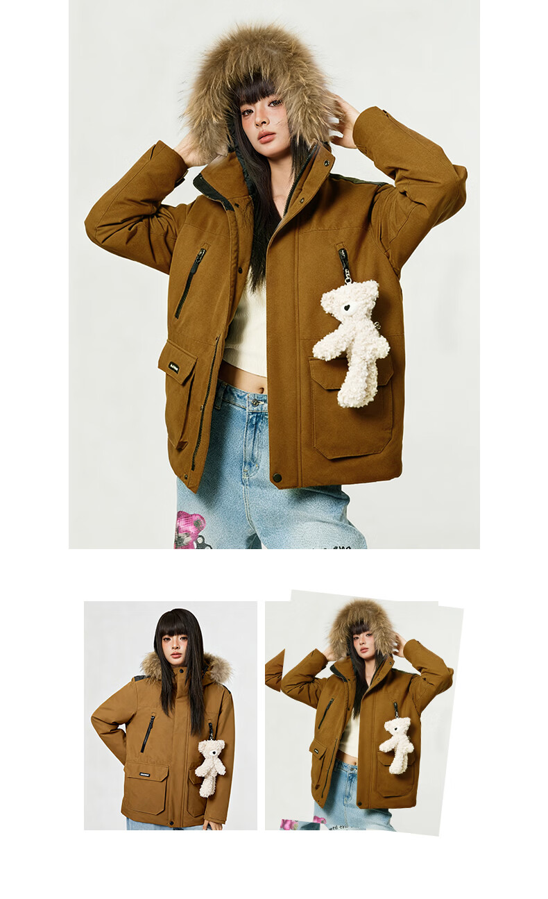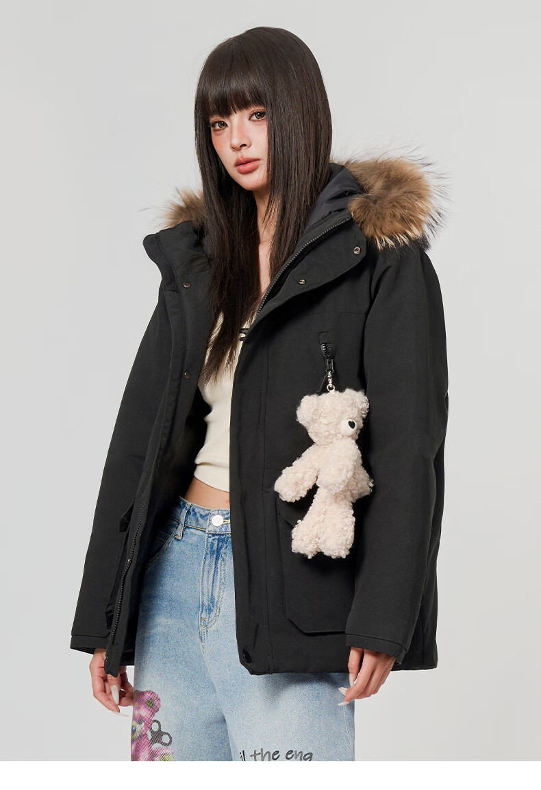LALABOBO90鸭绒毛领工装羽绒服冬季新款保暖连帽加厚外套LBDD-WSYR17 绿色 L