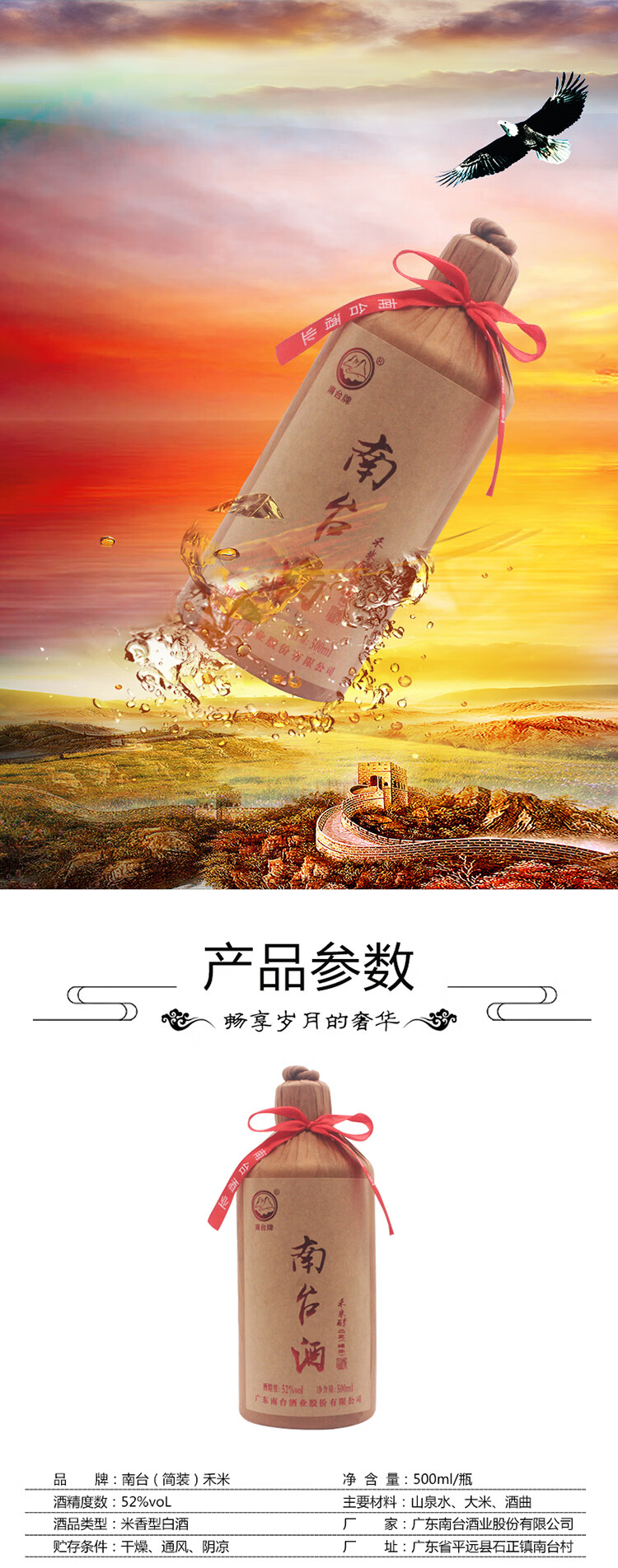 南台牌广东南台酒传统工艺纯粮酿造老窖精品优选美酒 50%vol 500mL 1瓶 禾米酒
