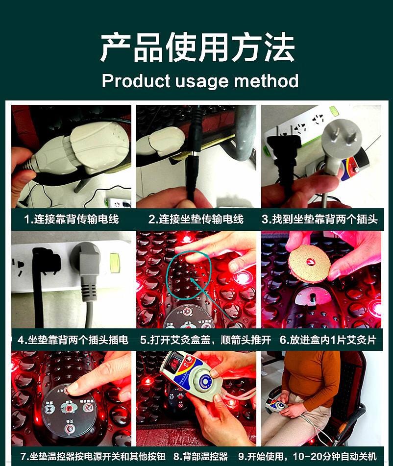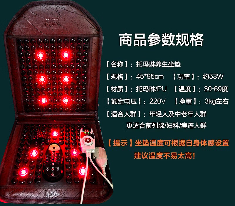 元亨亿康托玛琳艾灸理疗光子坐垫65度热腰背光子灯震动按摩前列腺妇科痔疮保养 奢华款 65度热敷+靠背大艾绒包