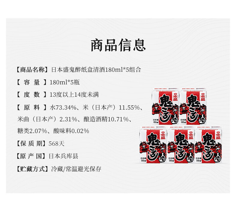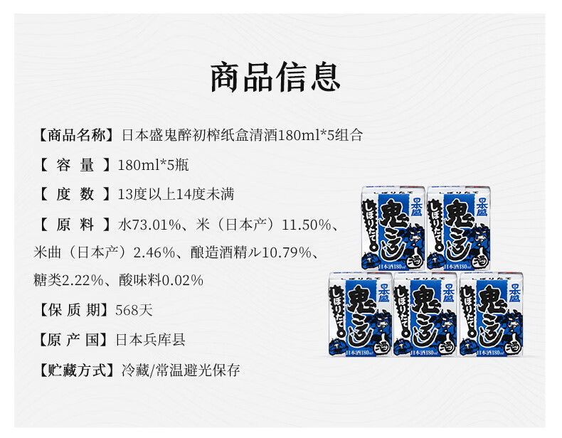 日本盛全日空 日本原装进口日本盛鬼醉鬼杀砖型纸盒清酒生酒180ml*5组合 红色*2组赠1组(广井菊里同款)