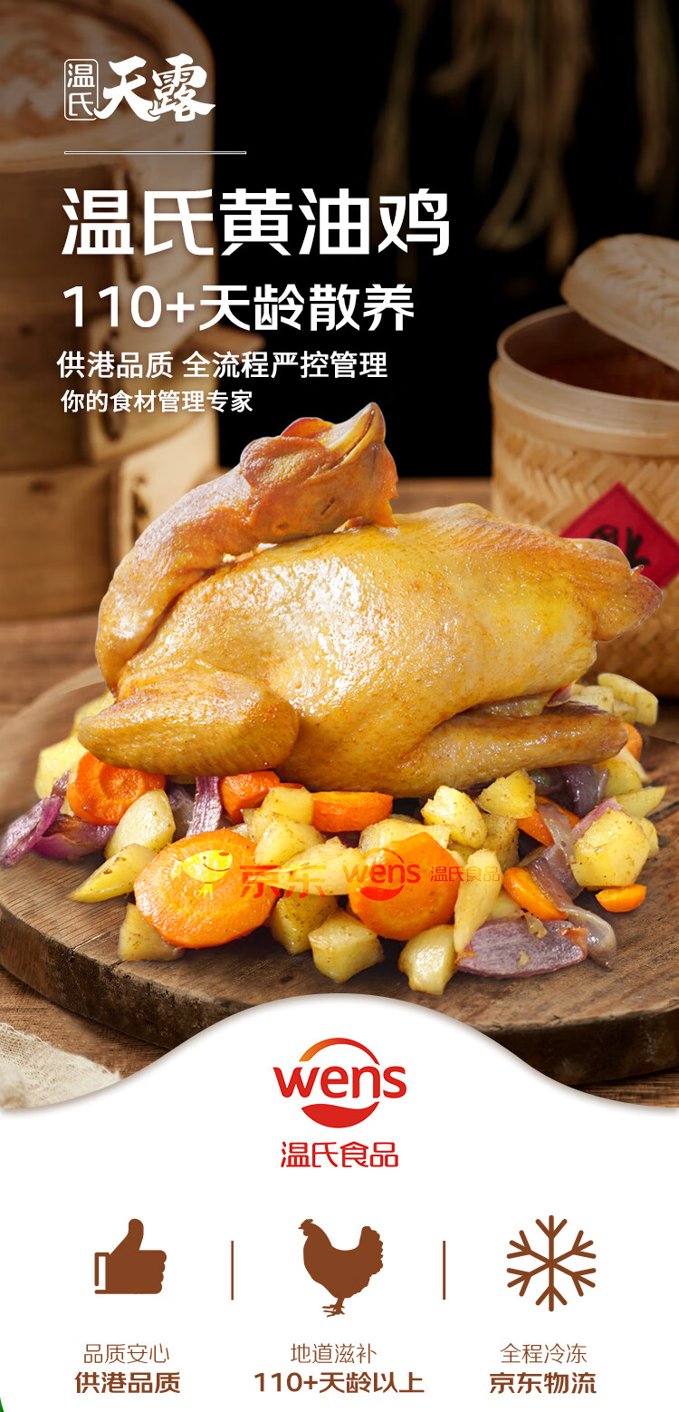 温氏供港黄油鸡净重2斤 110天 冷冻黄油母鸡农家土鸡整鸡 炸鸡鸡肉