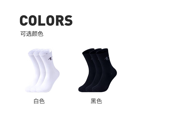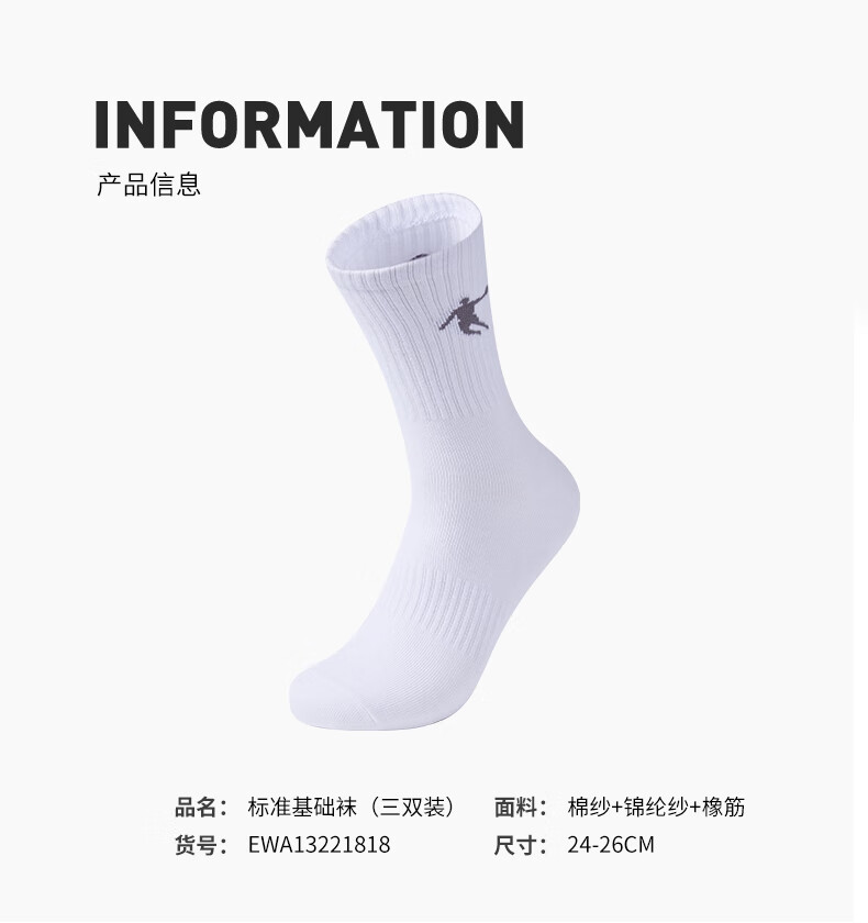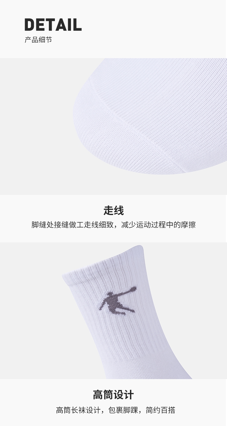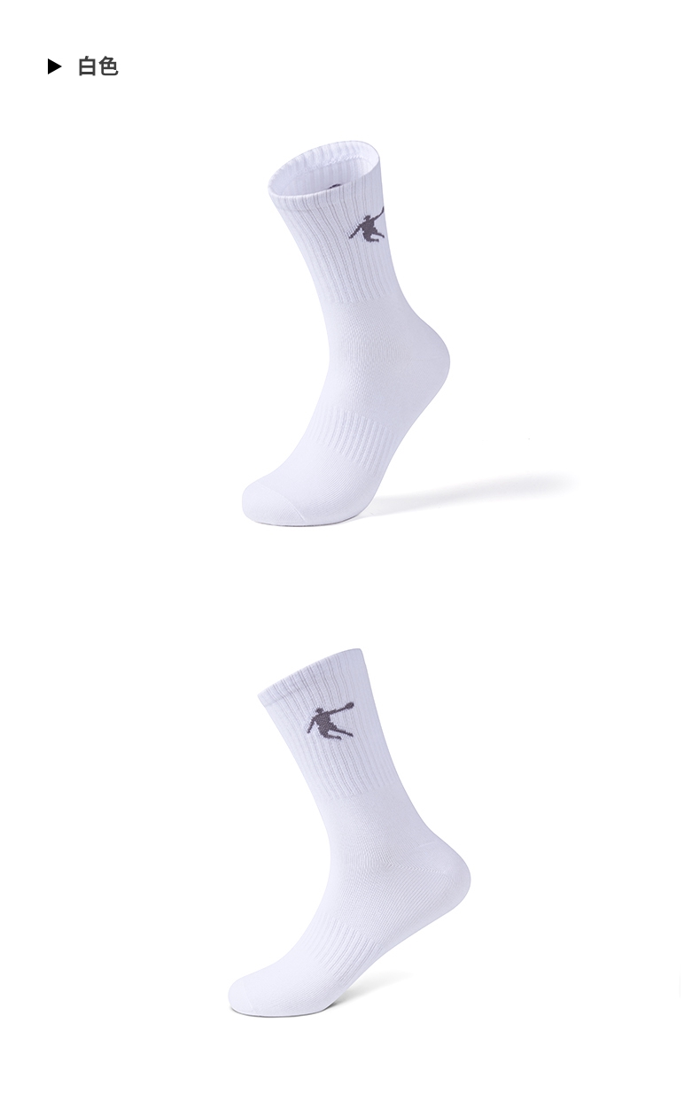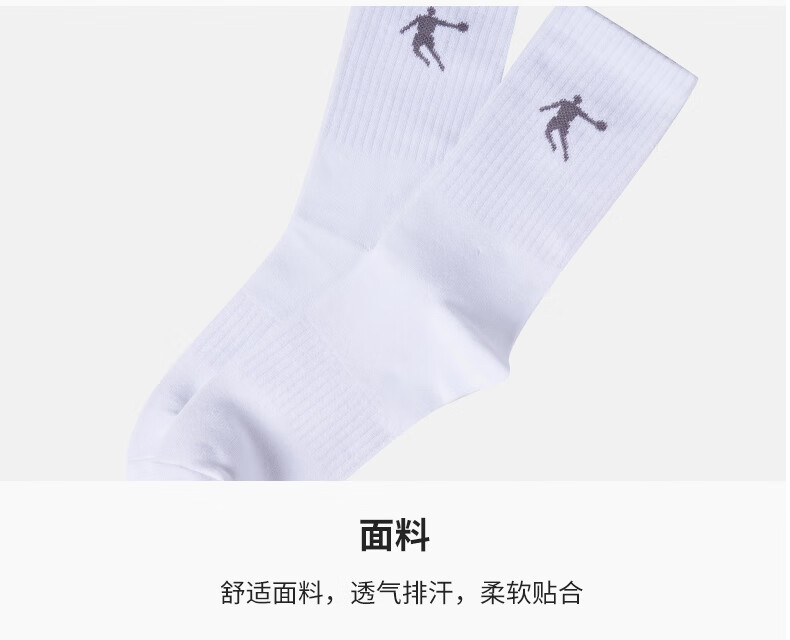 乔丹三双装袜子男袜中筒长袜跑步运动休闲袜 白色 均码