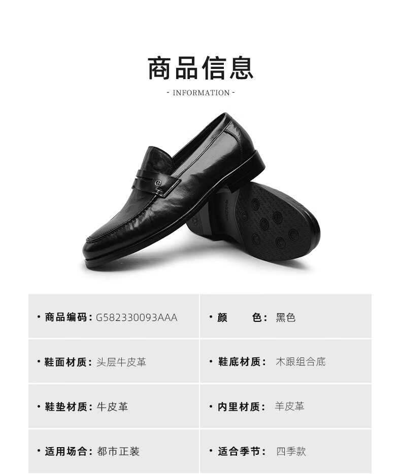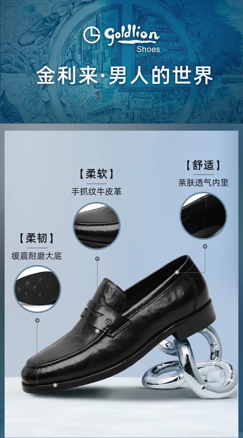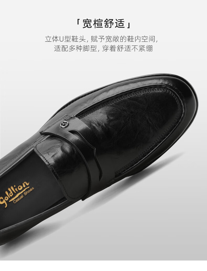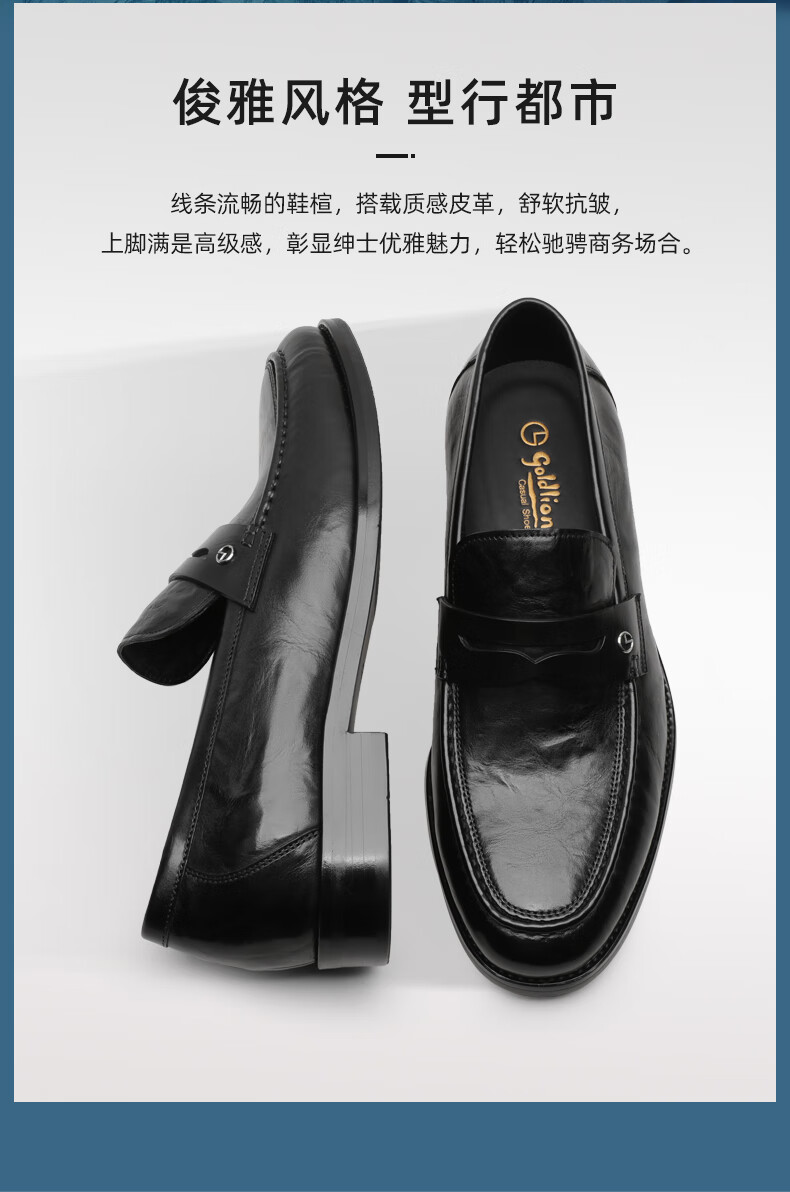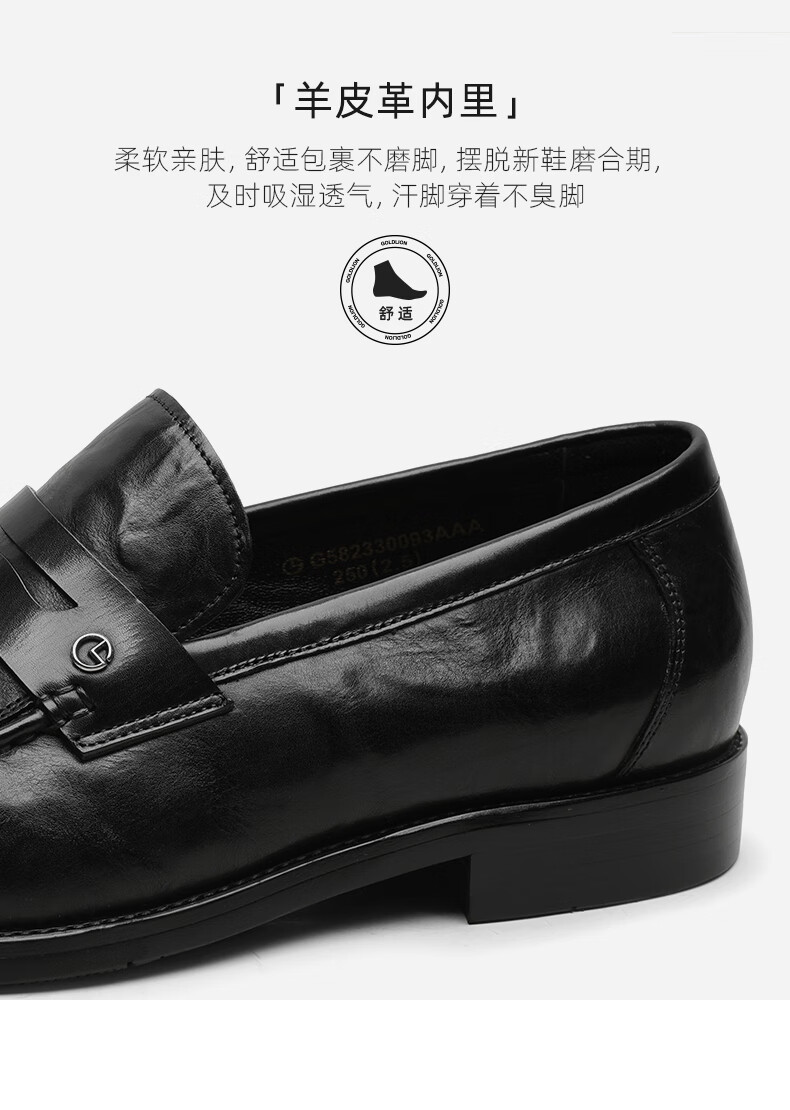金利来(Goldlion)男鞋秋冬商务正装婚鞋皮鞋舒适乐福鞋G582330093AAA黑色39