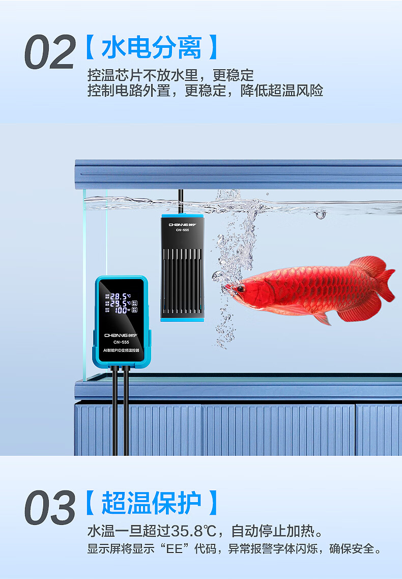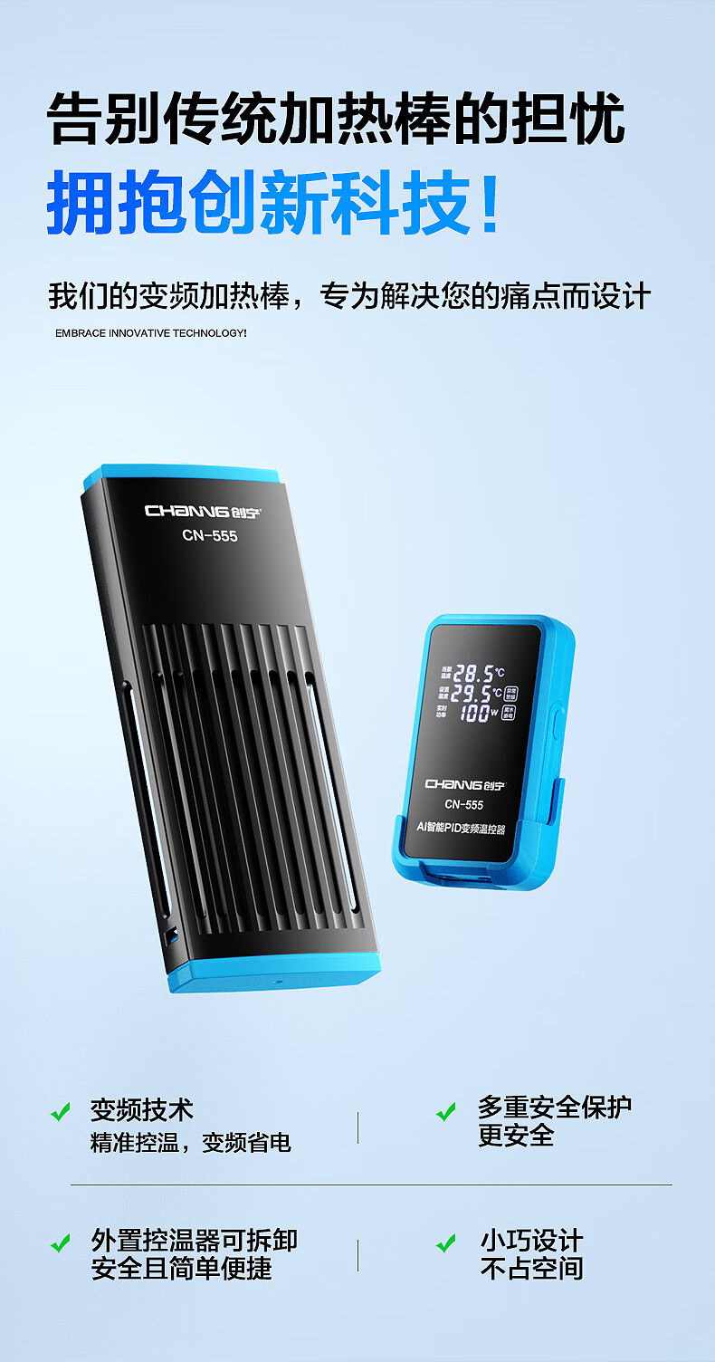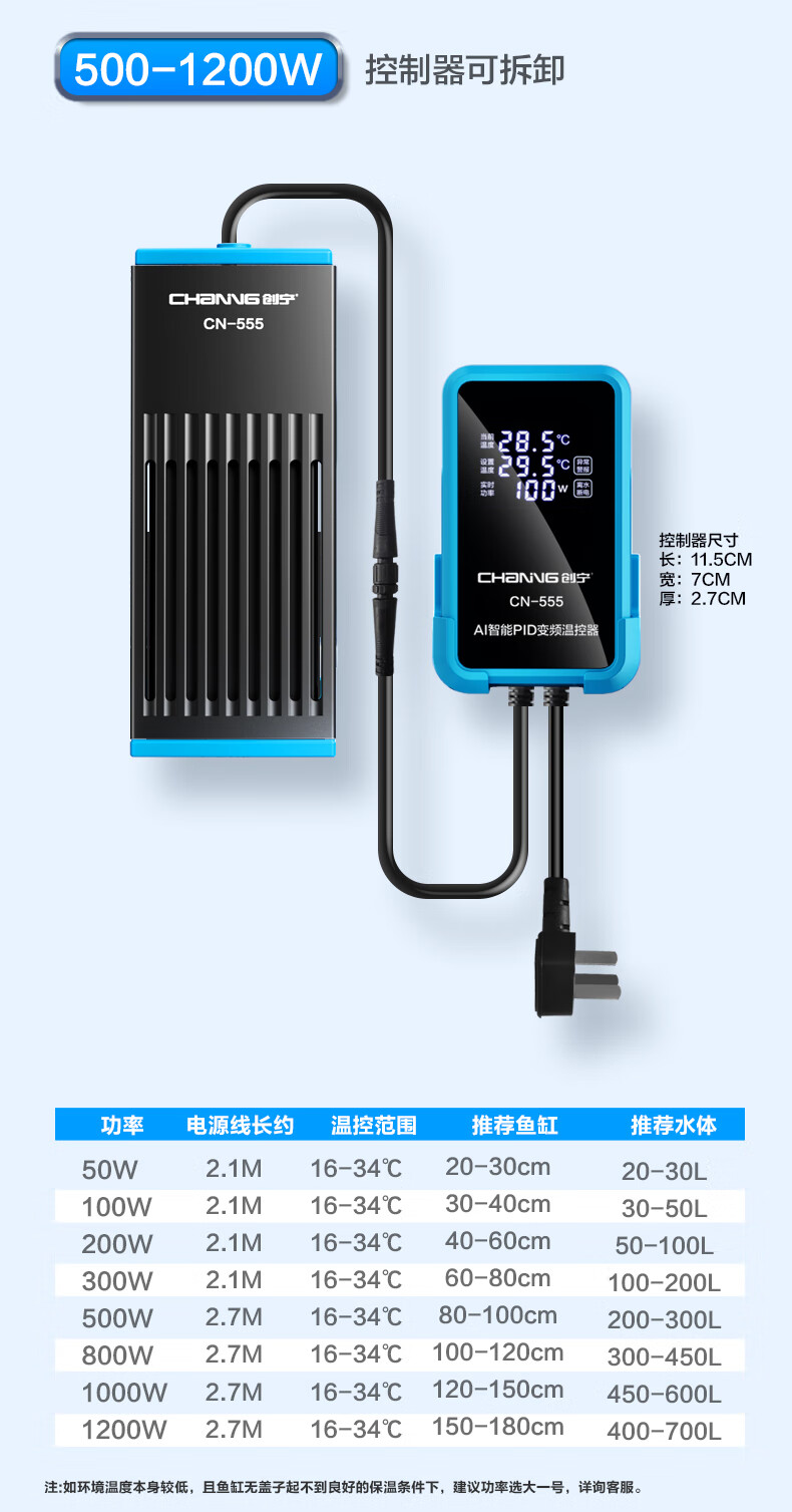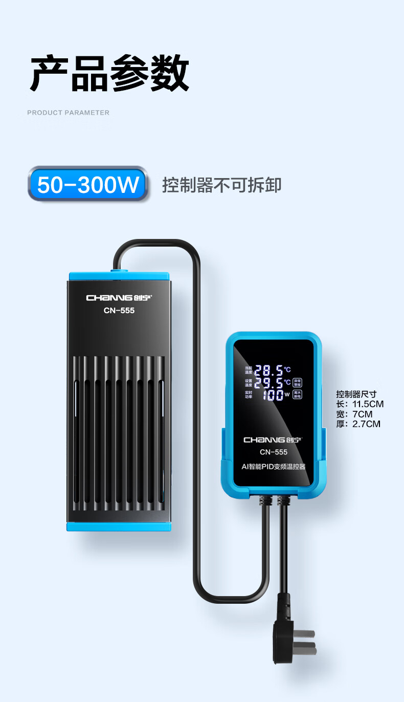 创宁鱼缸变频加热棒 CN-555-300W 自动恒温 乌龟小型迷你加温器