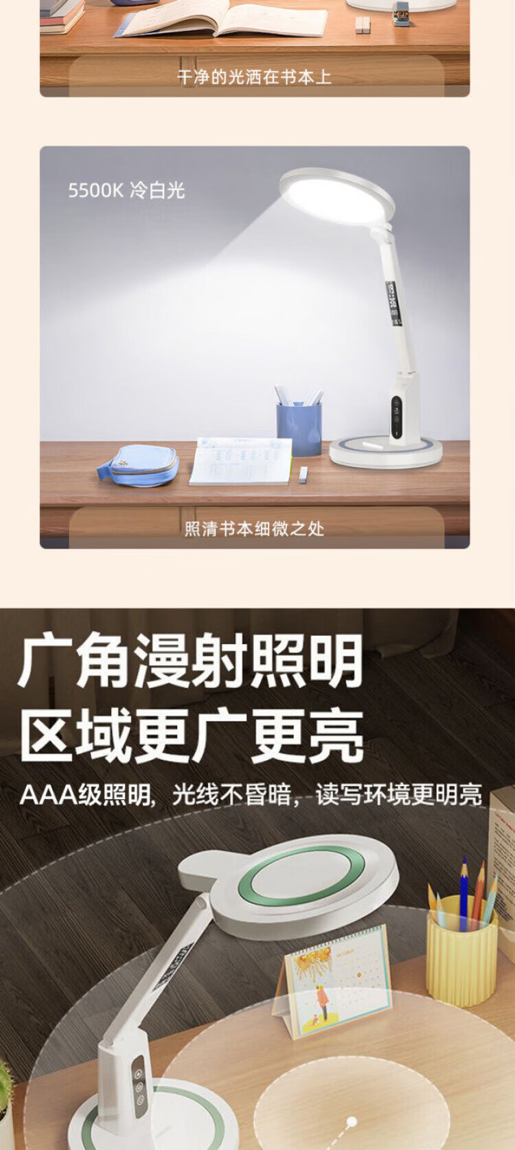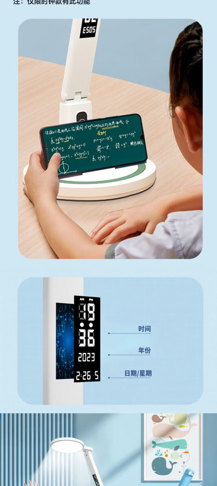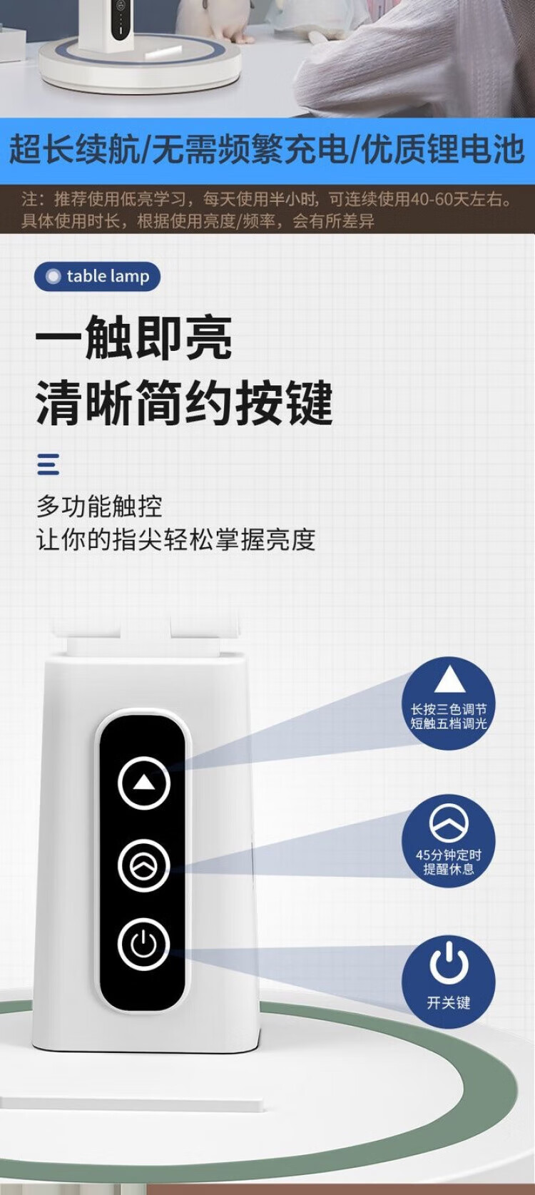 AILUKI日本护眼台灯学生专用充电护眼充插两用台灯led阅读宿舍灯 5件套(加厚加硬)