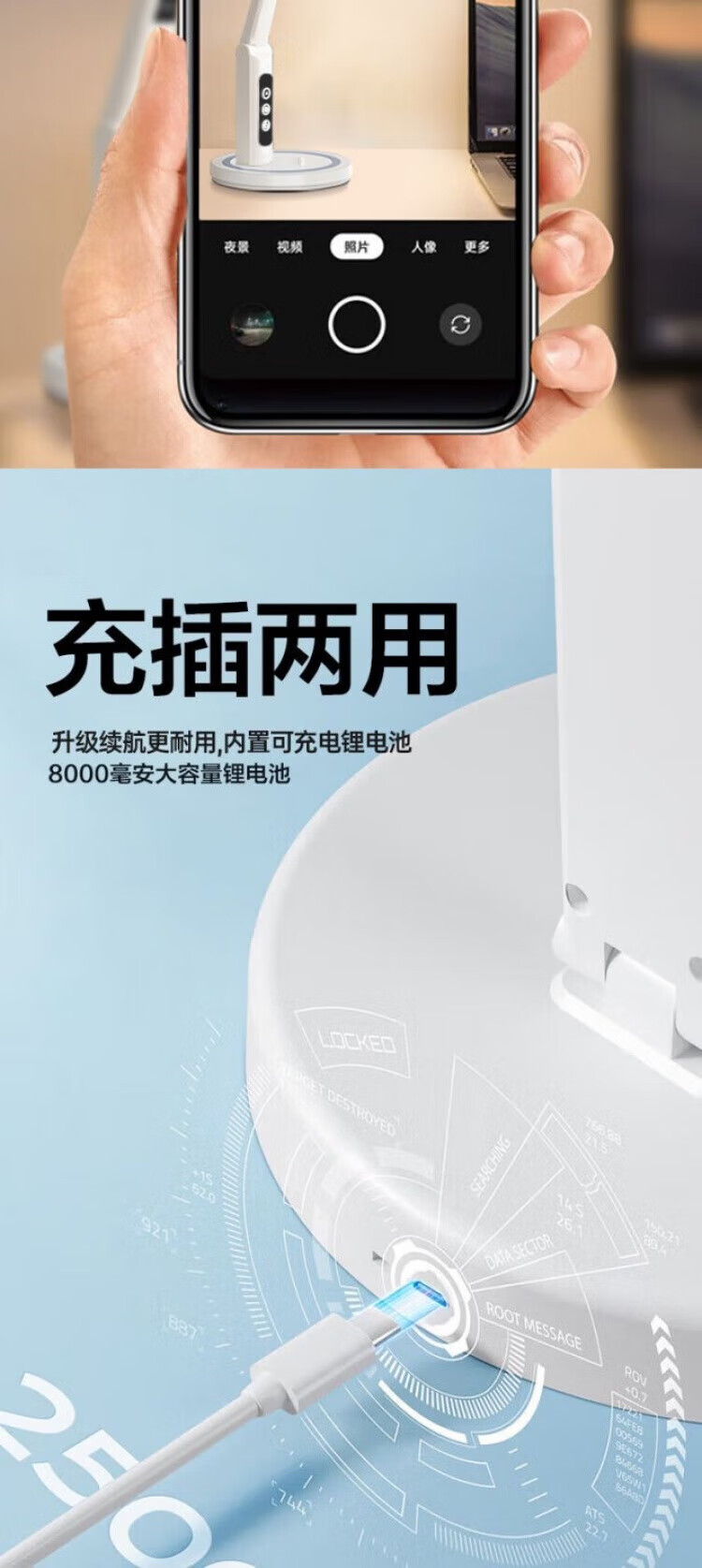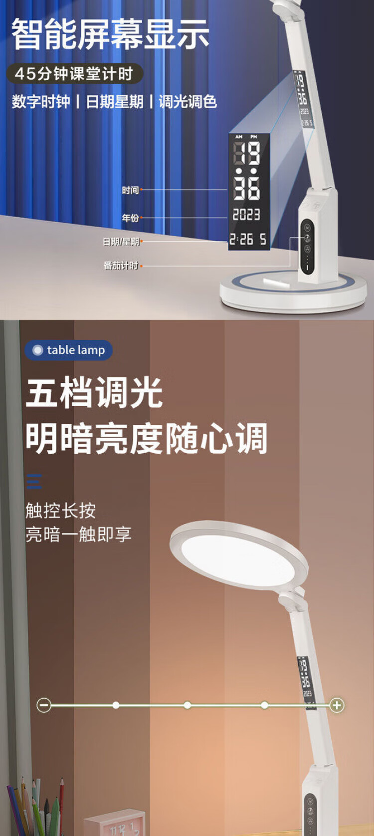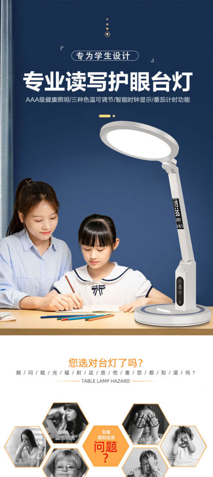 AILUKI日本护眼台灯学生专用充电护眼充插两用台灯led阅读宿舍灯 5件套(加厚加硬)