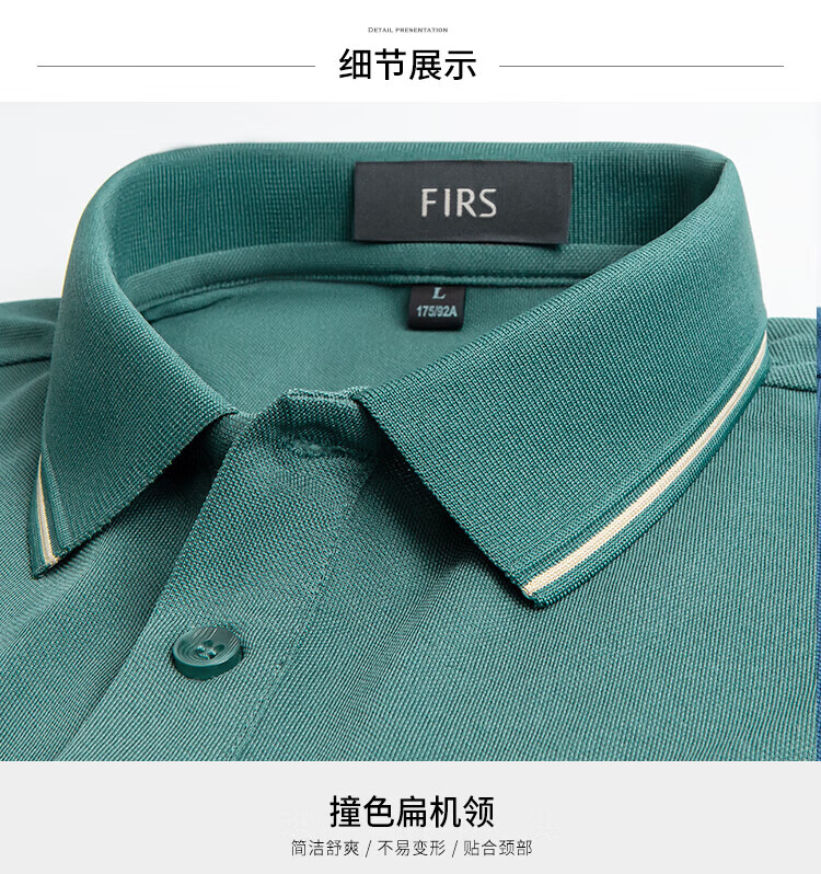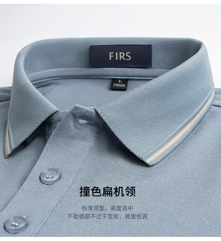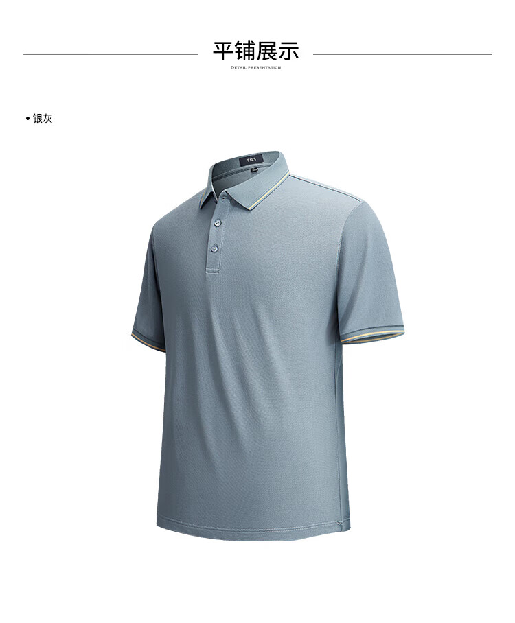 杉杉(FIRS)【凉感抗菌】短袖T恤男POLO领亲肤柔软商务休闲弹力垂顺撞色上衣 银灰 M (170/88A)