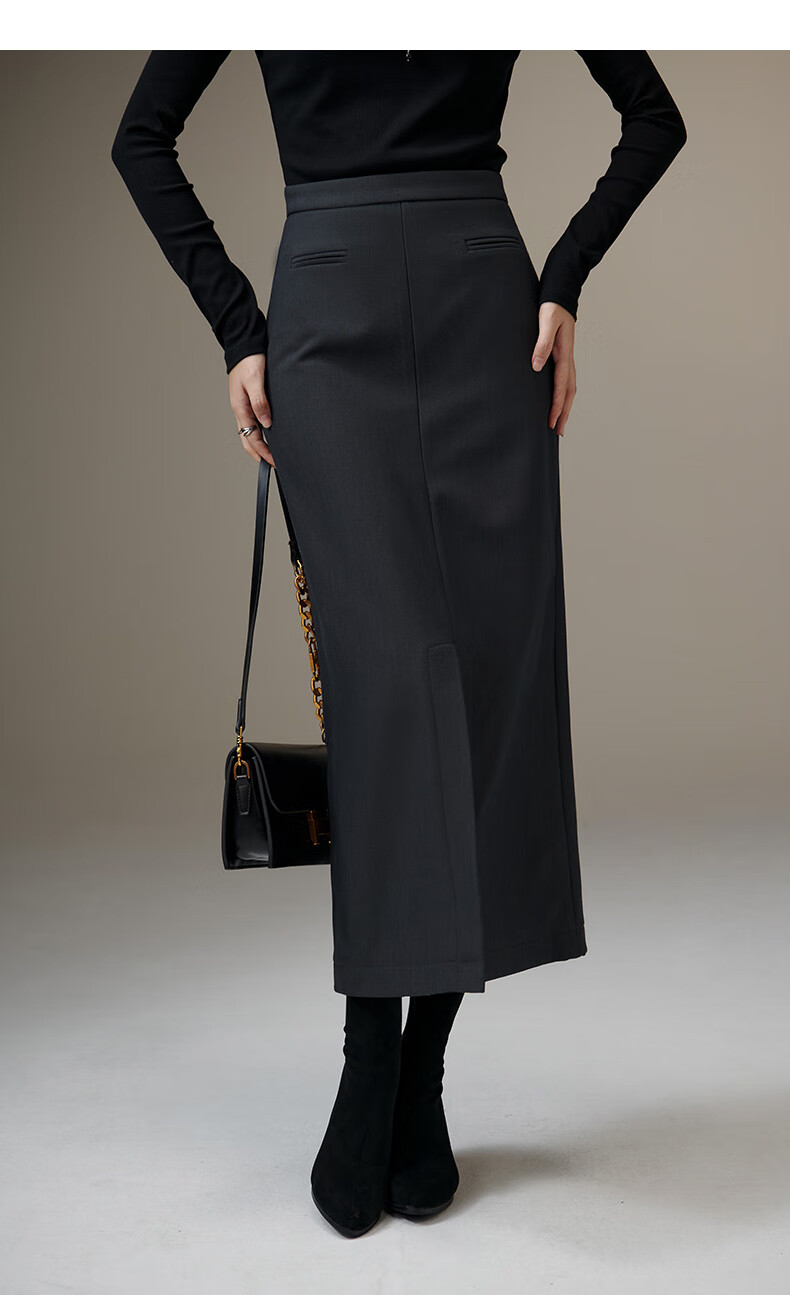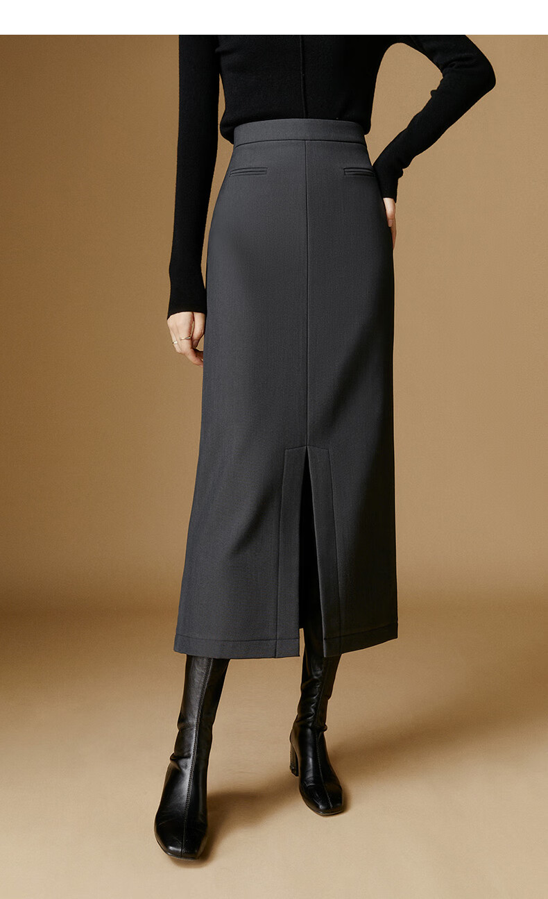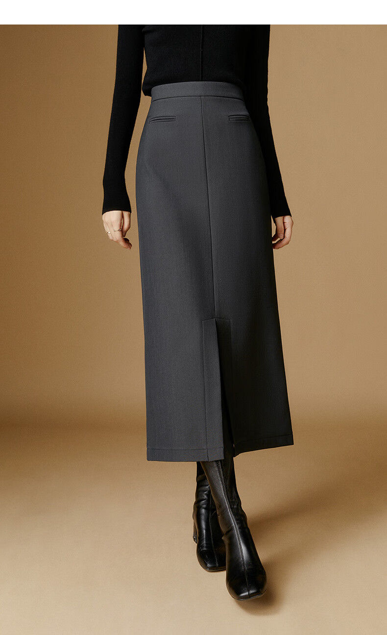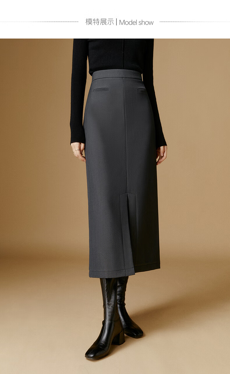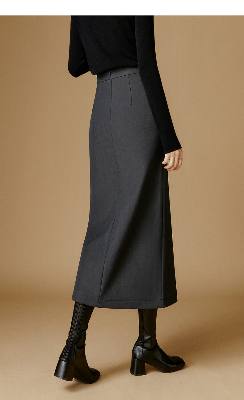 晚白【新品】冬款款时尚简约气质半裙休闲百搭纯色加绒保暖半身裙 灰色 S