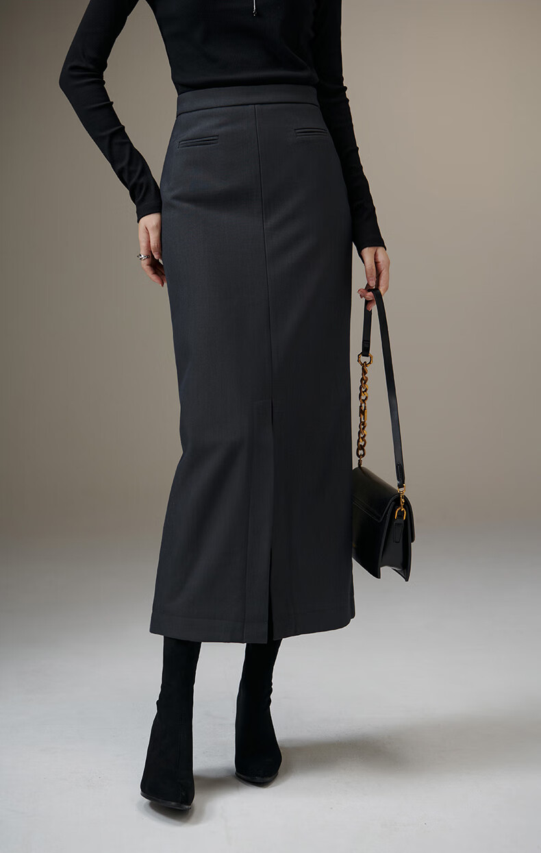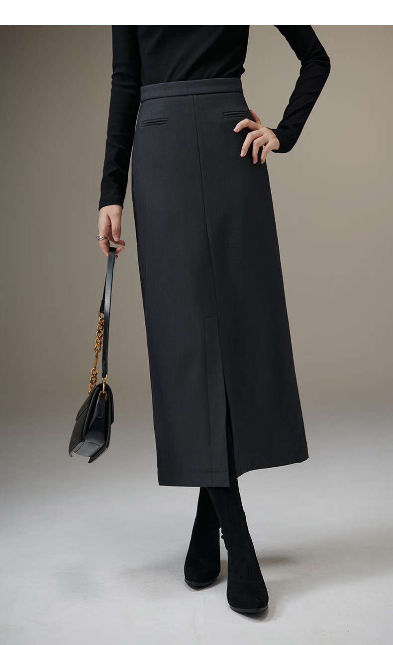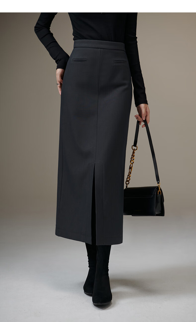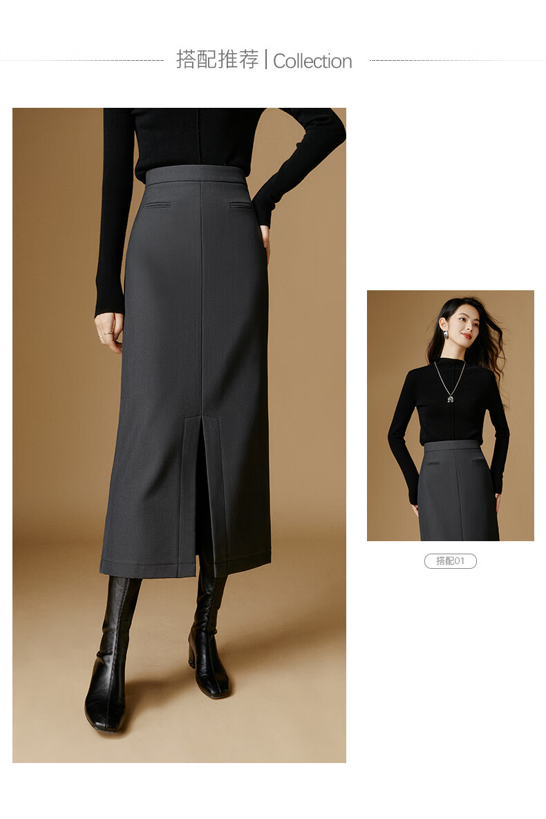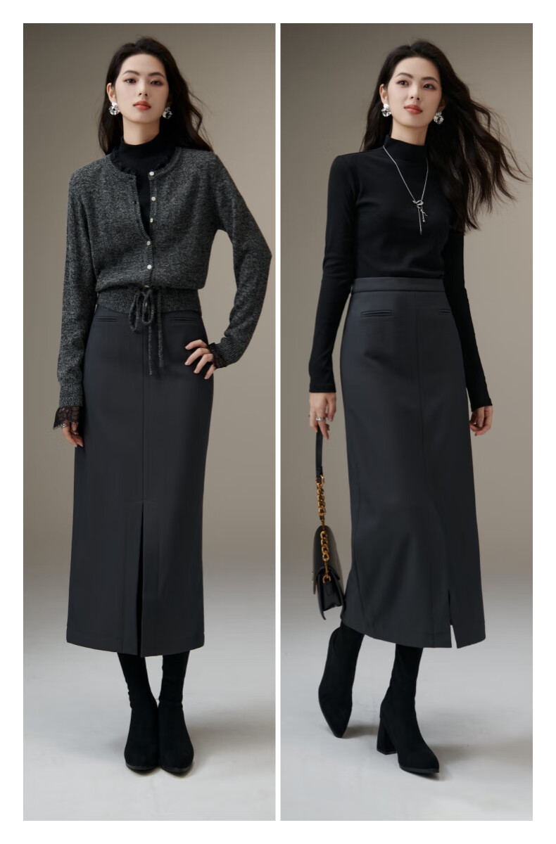 晚白【新品】冬款款时尚简约气质半裙休闲百搭纯色加绒保暖半身裙 灰色 S